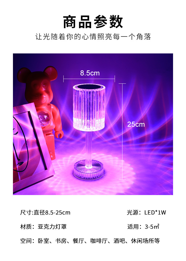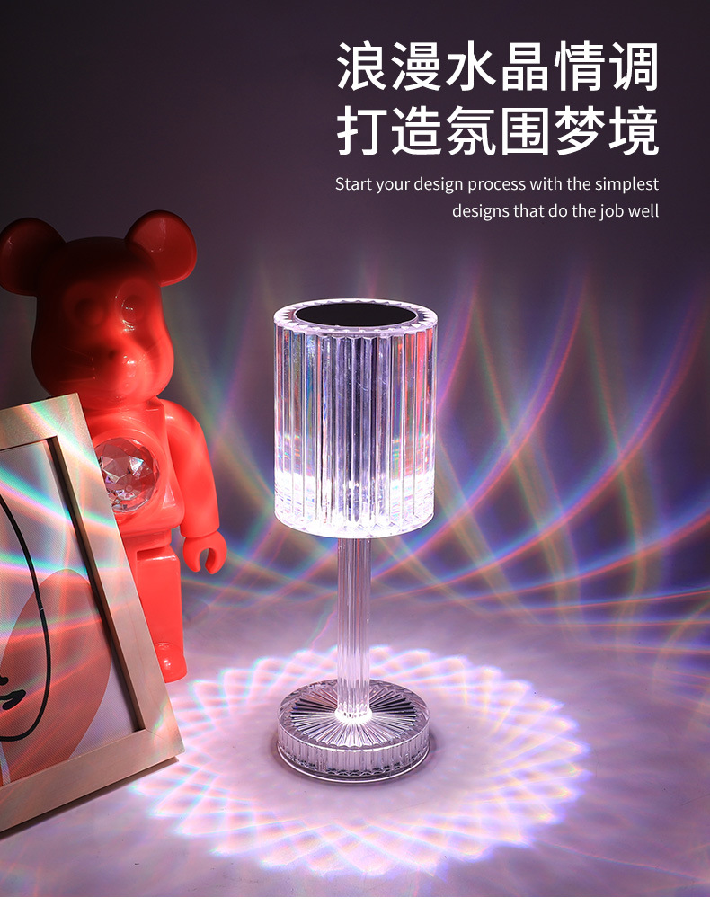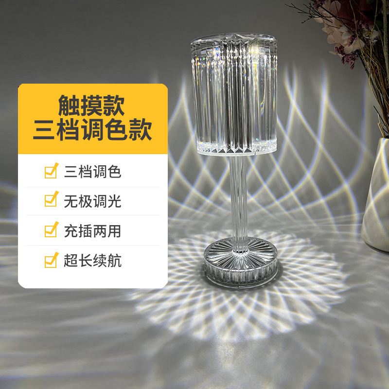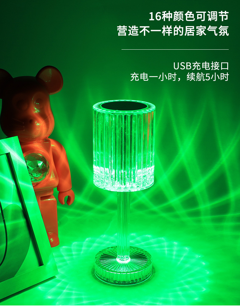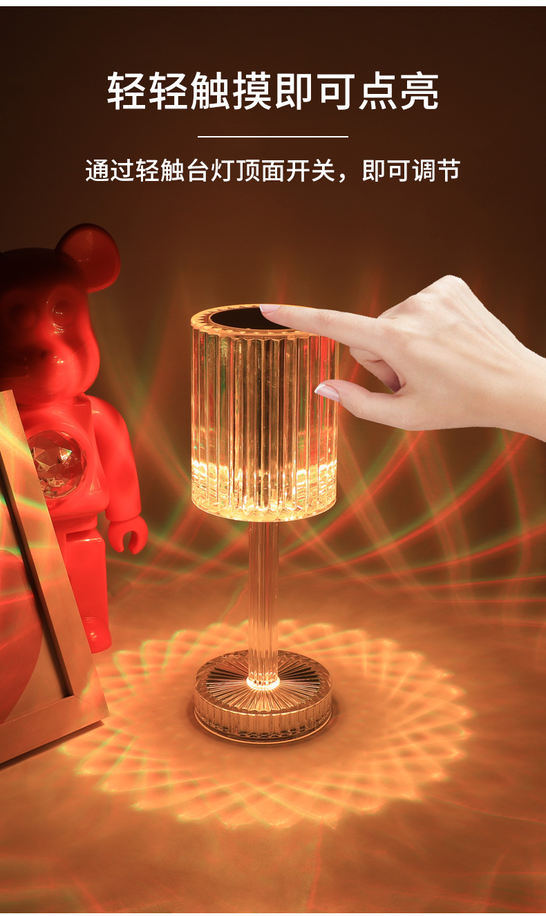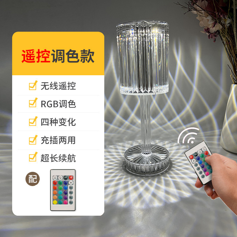크리스탈 테이블 램프 마스터 침실 수면 머리맡 램프 장미 로맨틱 칵테일 분위기 인터넷 연예인 다이아몬드 충전식 야간 조명