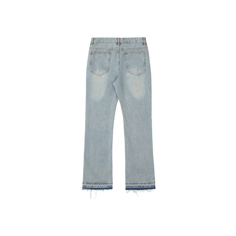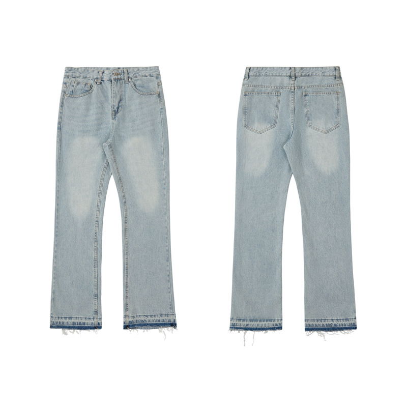 아메리칸 스타일 블루 풋 입 술 청바지 남성용 하이 스트리트 워시 빈티지 마이크로 혼 클린 핏 트렌디 한 바지스토어 가기