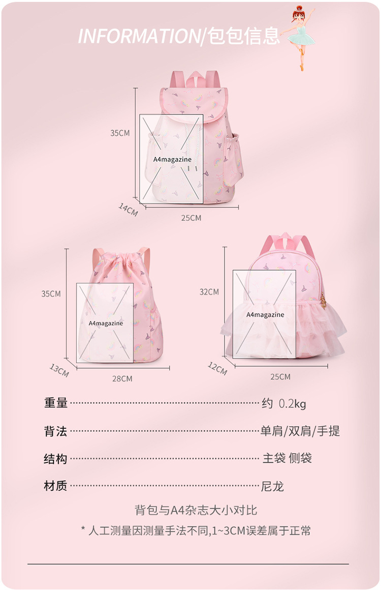국경 간 새로운 스타일 댄스 가방 어린이 및 소녀 발레 가방 패션 연습 배낭 댄스 가방 댄스 배낭