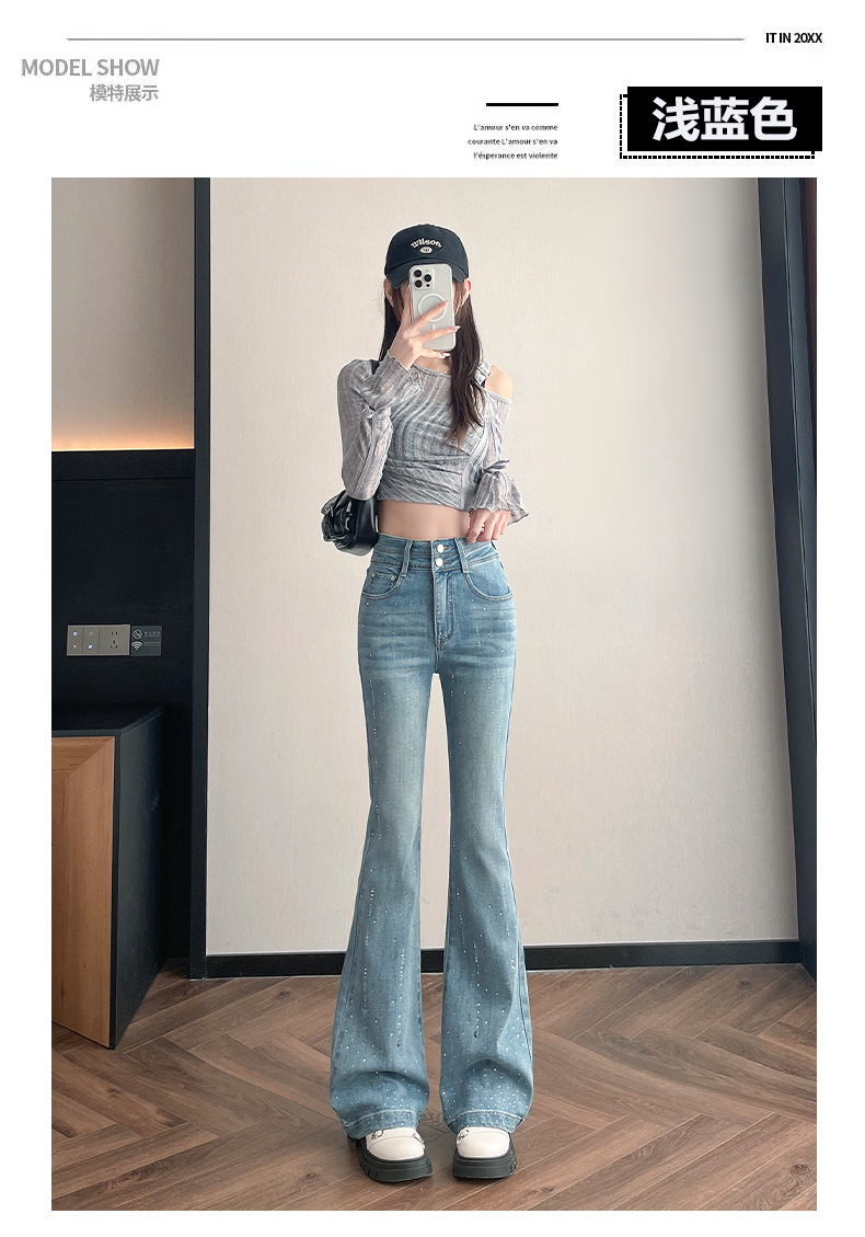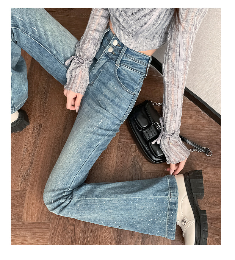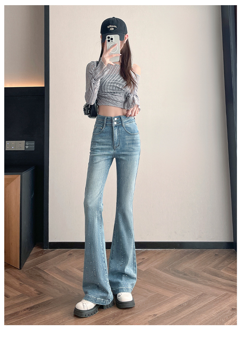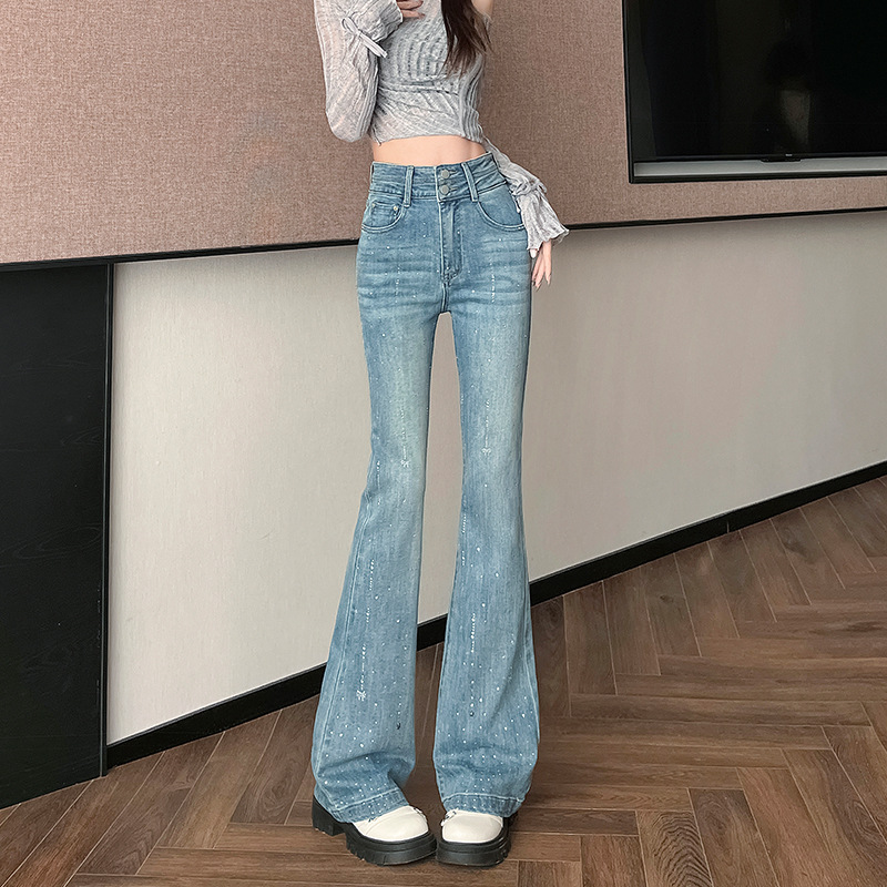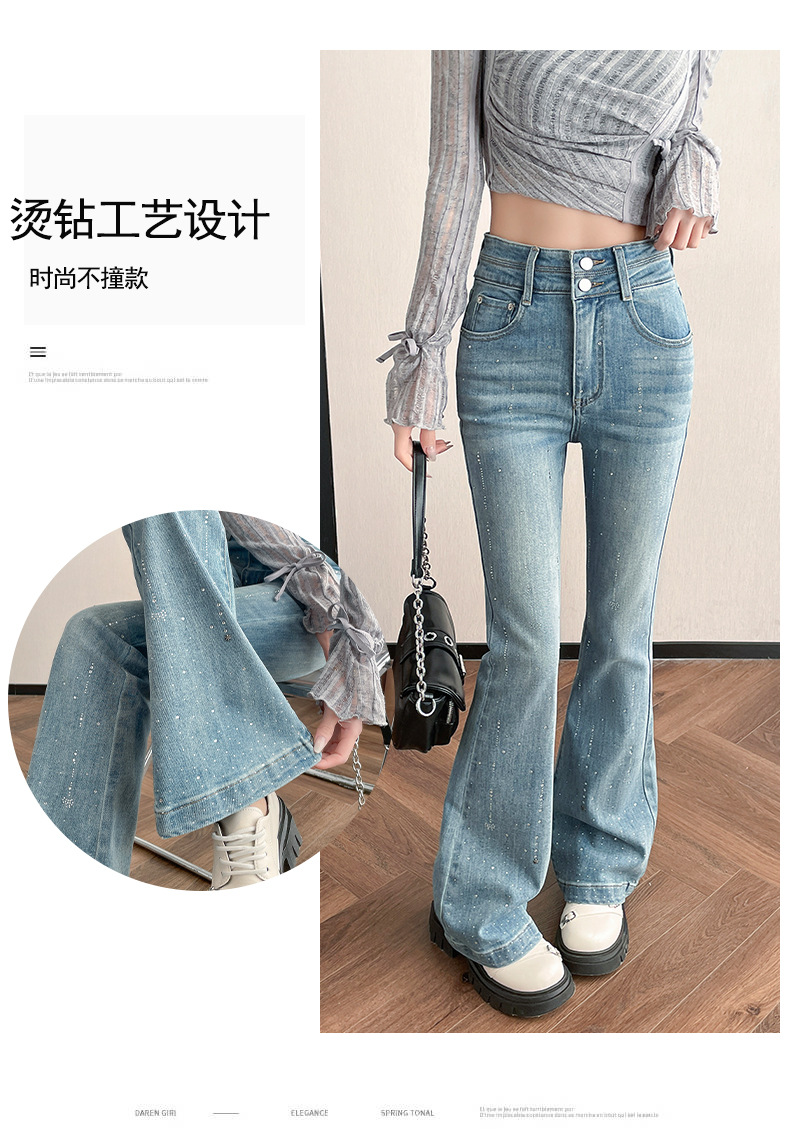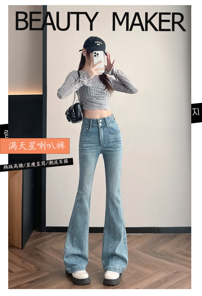 다이아몬드 여성용 바지 봄과 가을의 새로운 슬림형 슬리밍 핫 드릴링 바지가 달린 Gipsophila 플레어 청바지스토어 가기