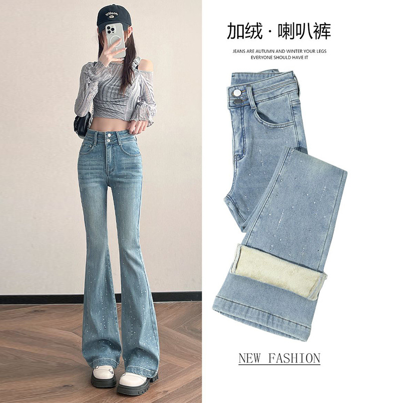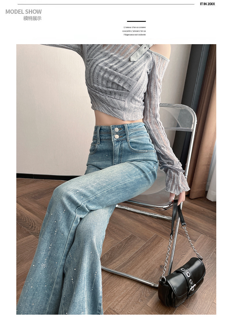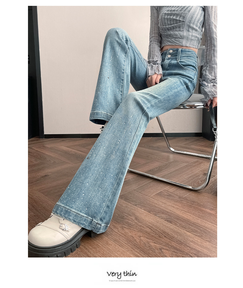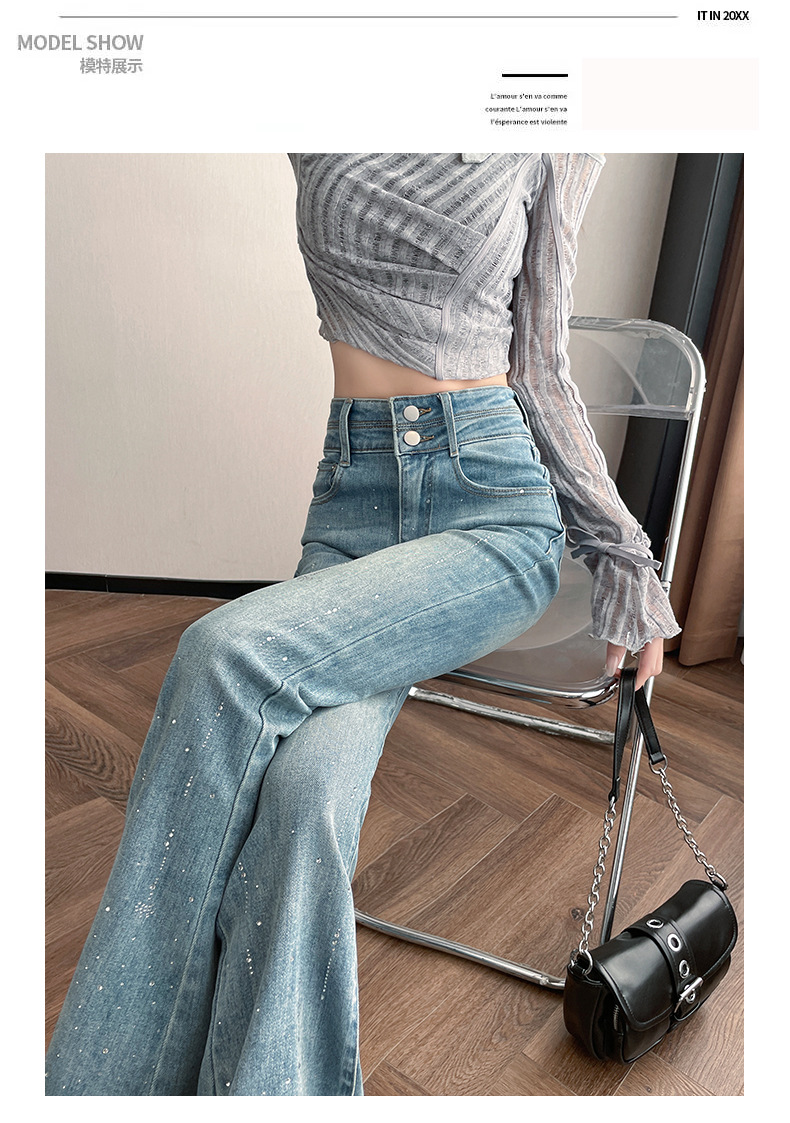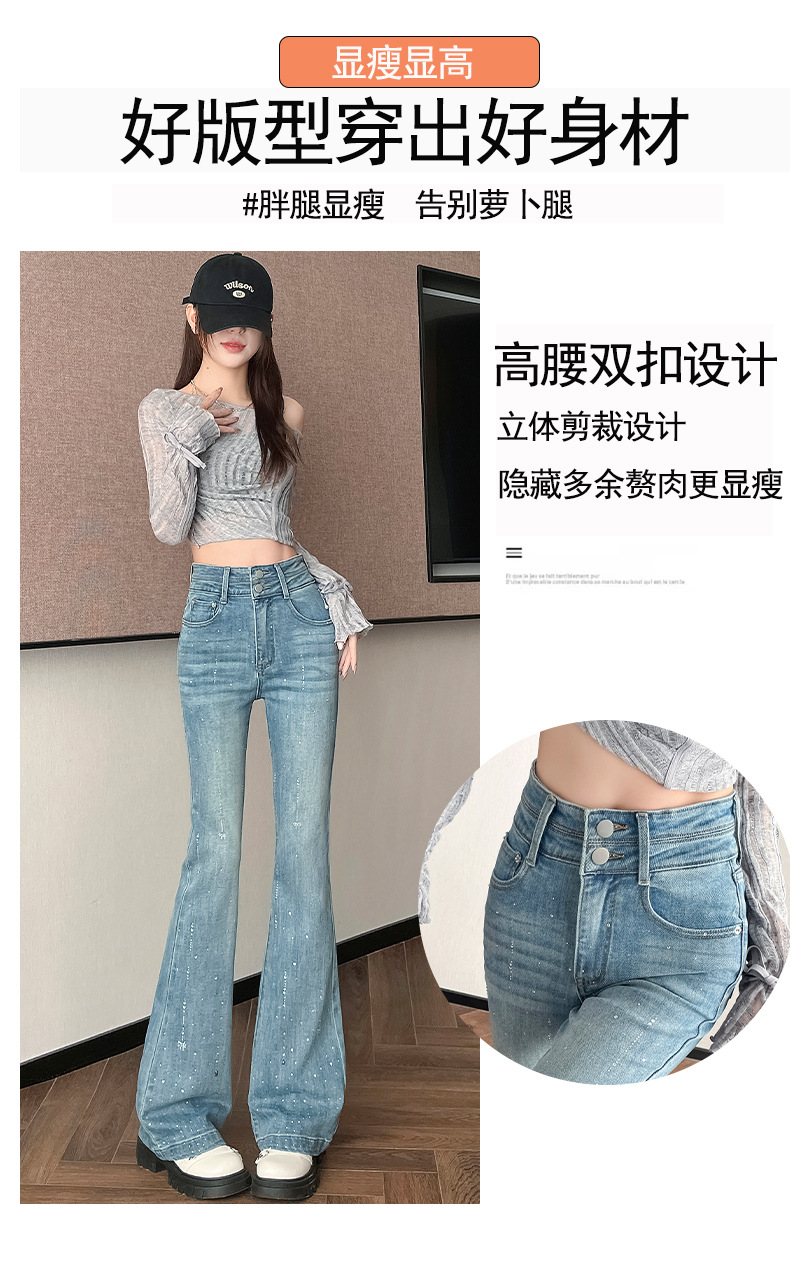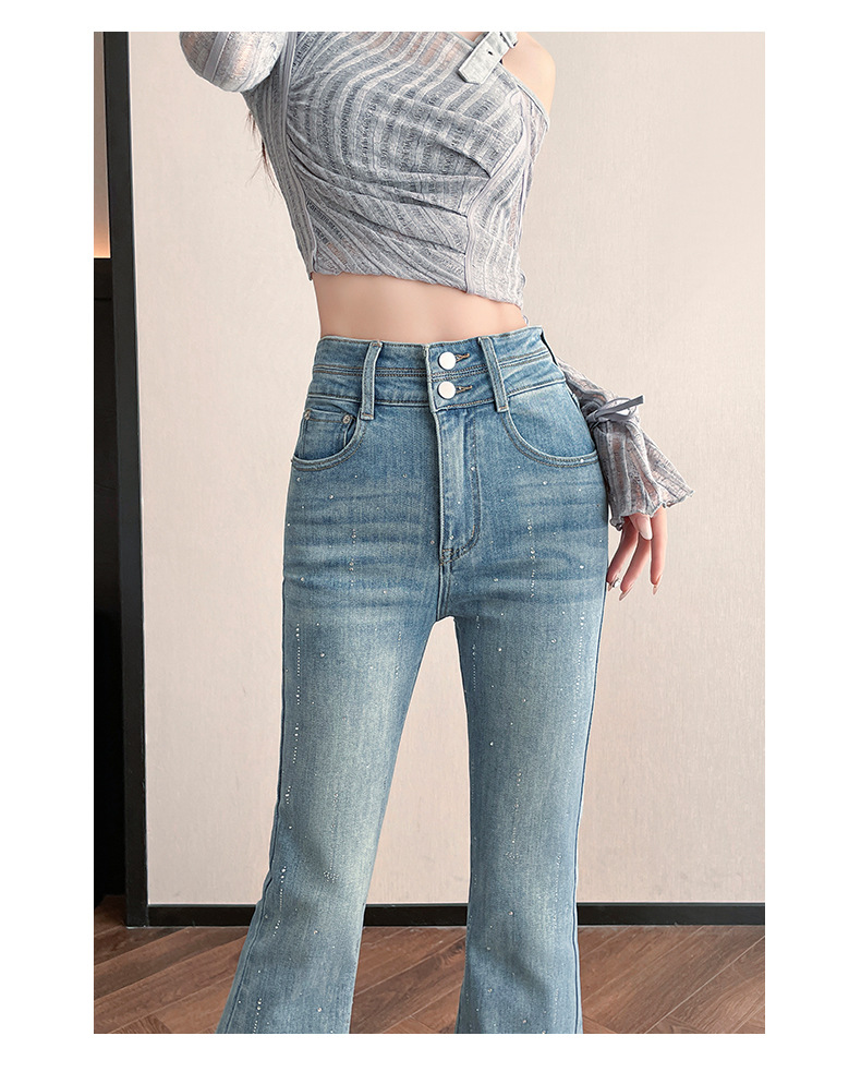다이아몬드 여성용 바지 봄과 가을의 새로운 슬림형 슬리밍 핫 드릴링 바지가 달린 Gipsophila 플레어 청바지스토어 가기