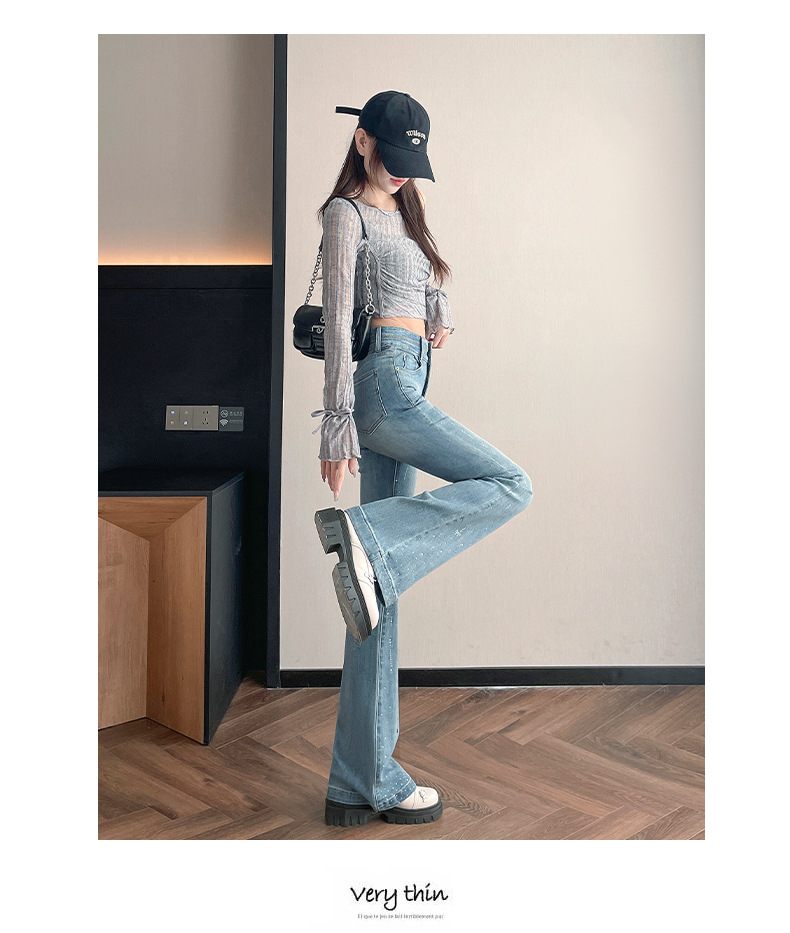 다이아몬드 여성용 바지 봄과 가을의 새로운 슬림형 슬리밍 핫 드릴링 바지가 달린 Gipsophila 플레어 청바지