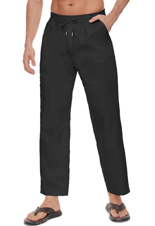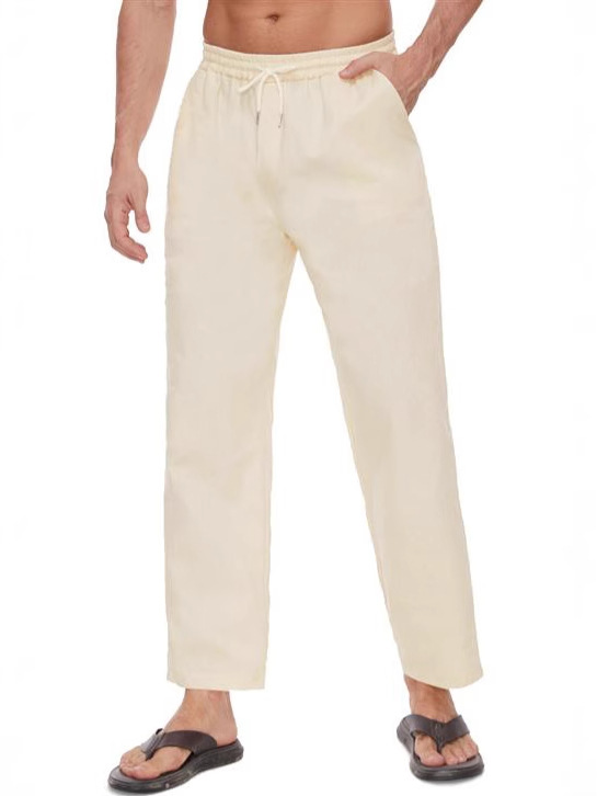 2025 국경 간 여름 남자 힙합 통기성 리넨 느슨한 캐주얼 스포츠 솔리드 컬러 Elelastic Tether 스트레이트 바지스토어 가기