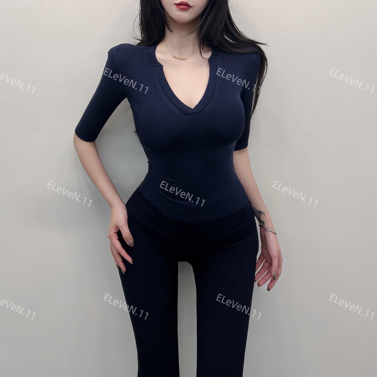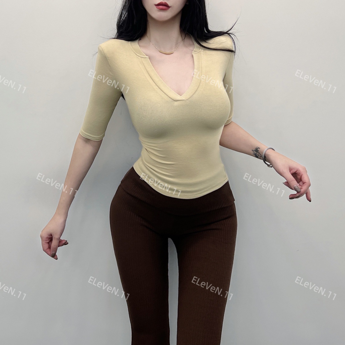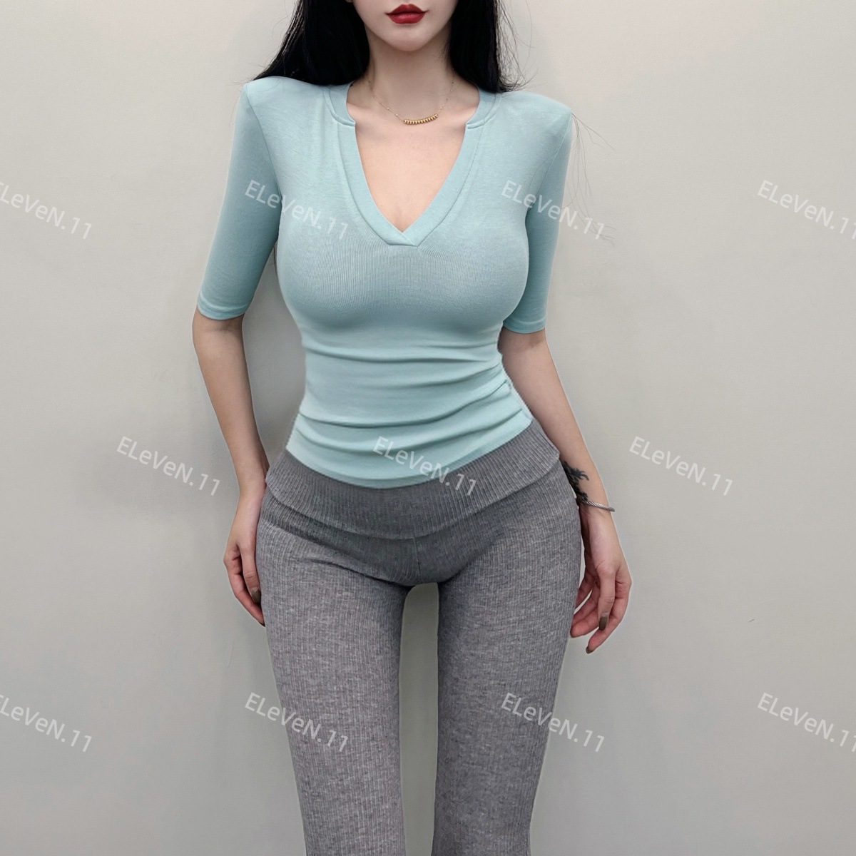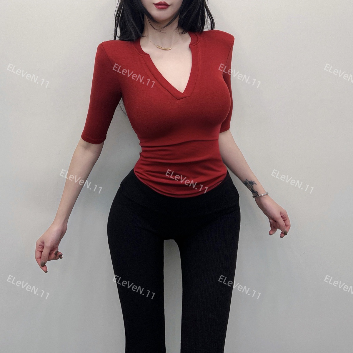 봄과 여름에 허리 꼬집는 작은 섹시 하프 오픈 칼라 반팔 탑 여성용 타이트한 티셔츠 바지 셔츠 입을 좋아하는 사람