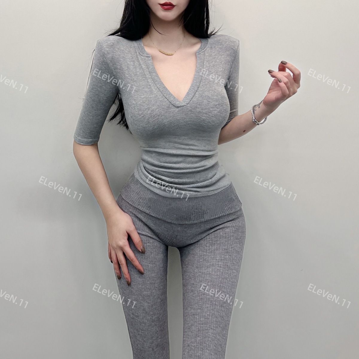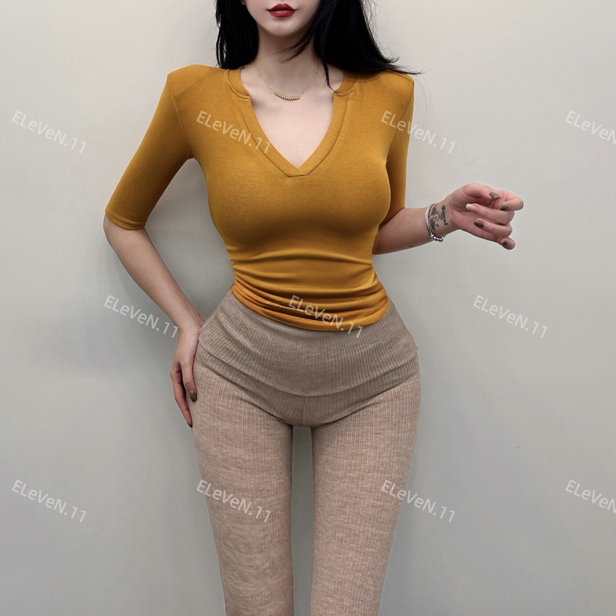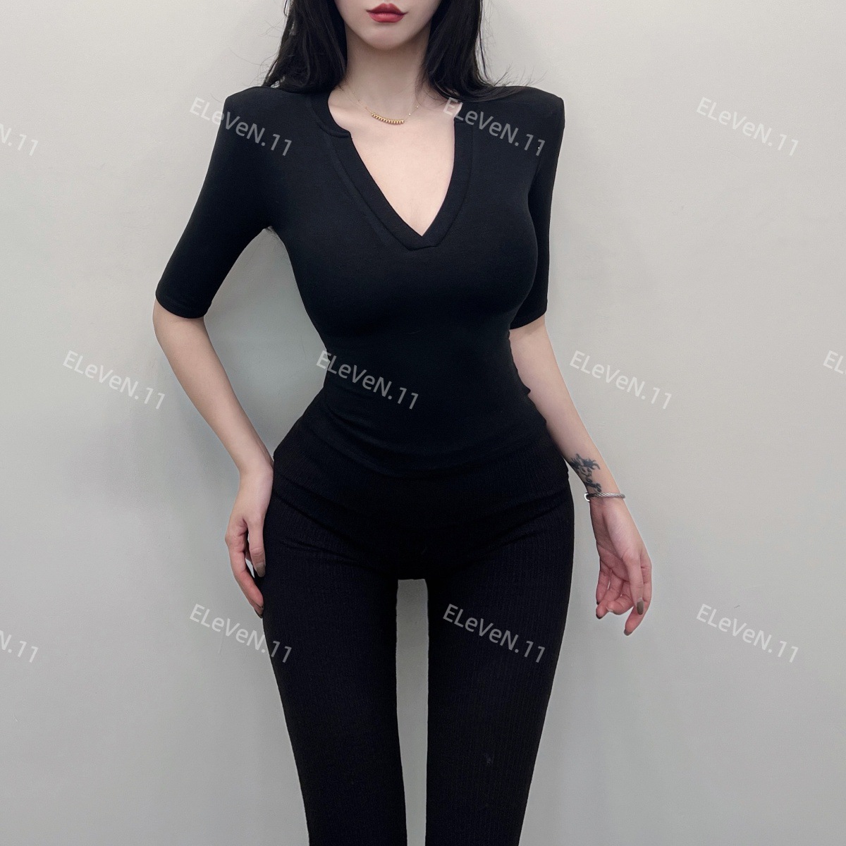 봄과 여름에 허리 꼬집는 작은 섹시 하프 오픈 칼라 반팔 탑 여성용 타이트한 티셔츠 바지 셔츠 입을 좋아하는 사람