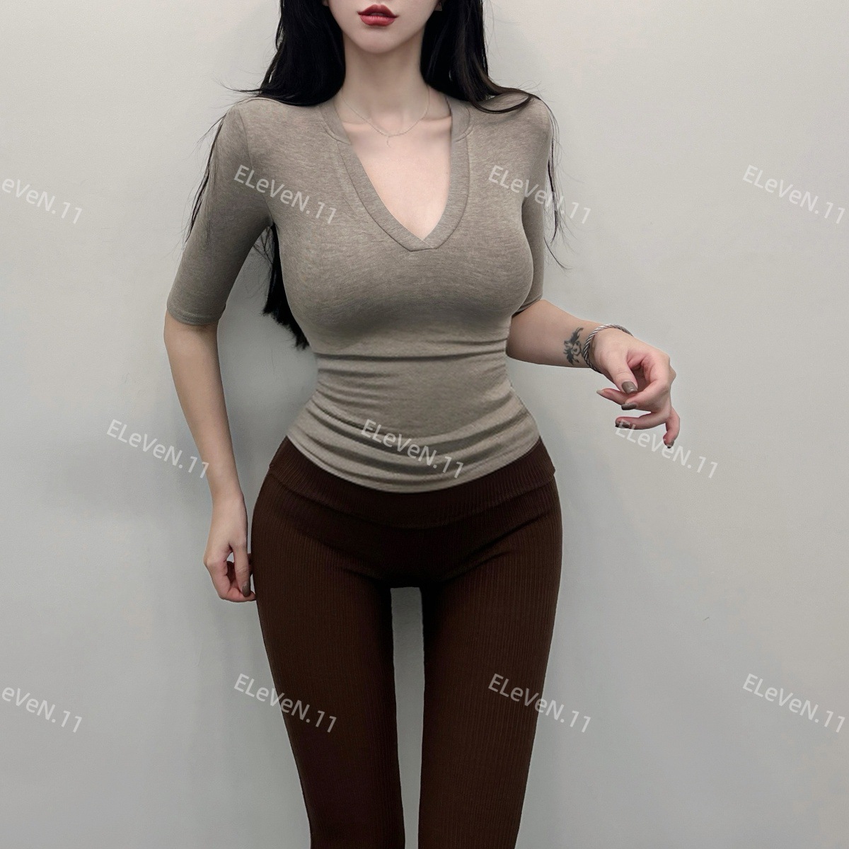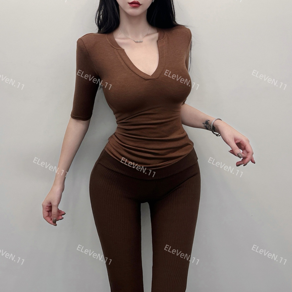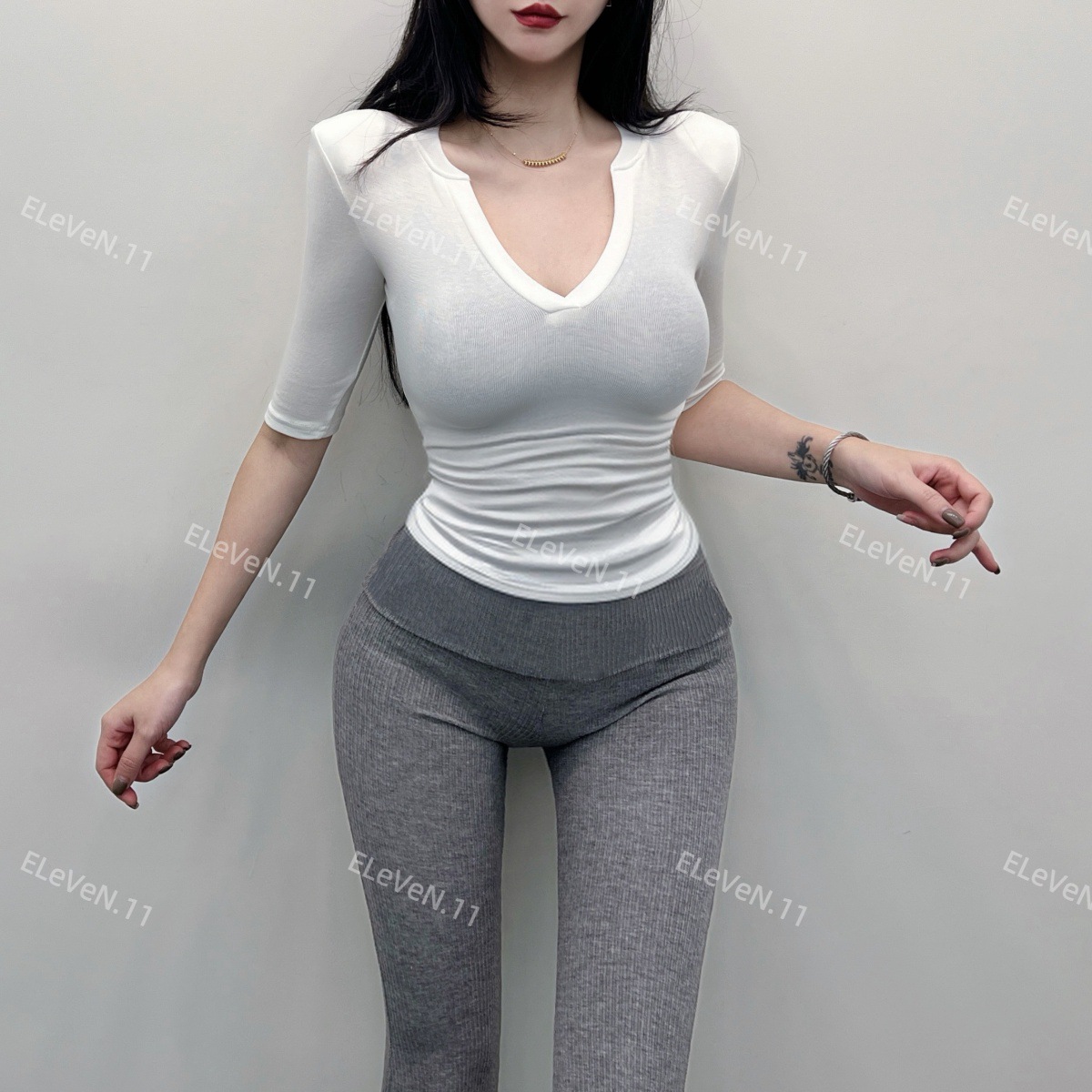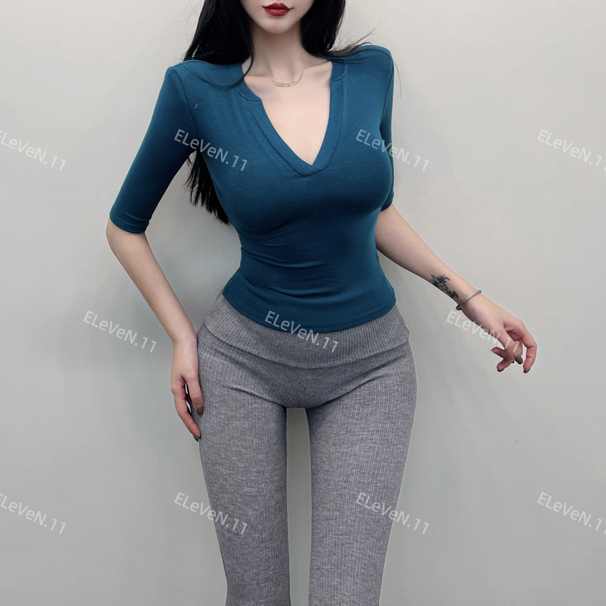 봄과 여름에 허리 꼬집는 작은 섹시 하프 오픈 칼라 반팔 탑 여성용 타이트한 티셔츠 바지 셔츠 입을 좋아하는 사람