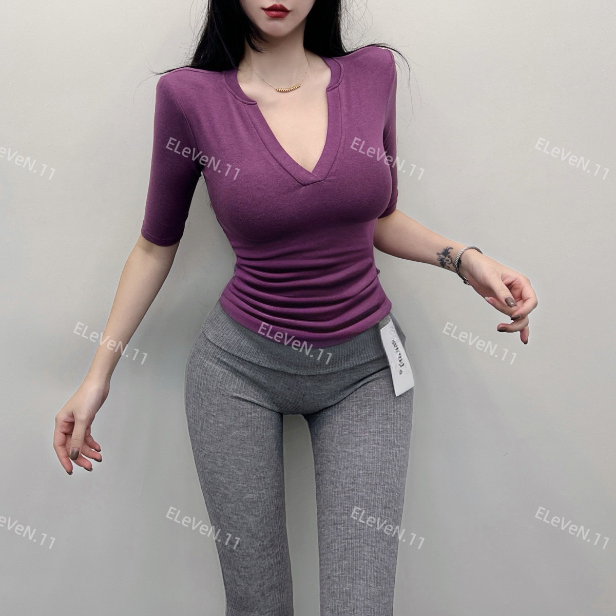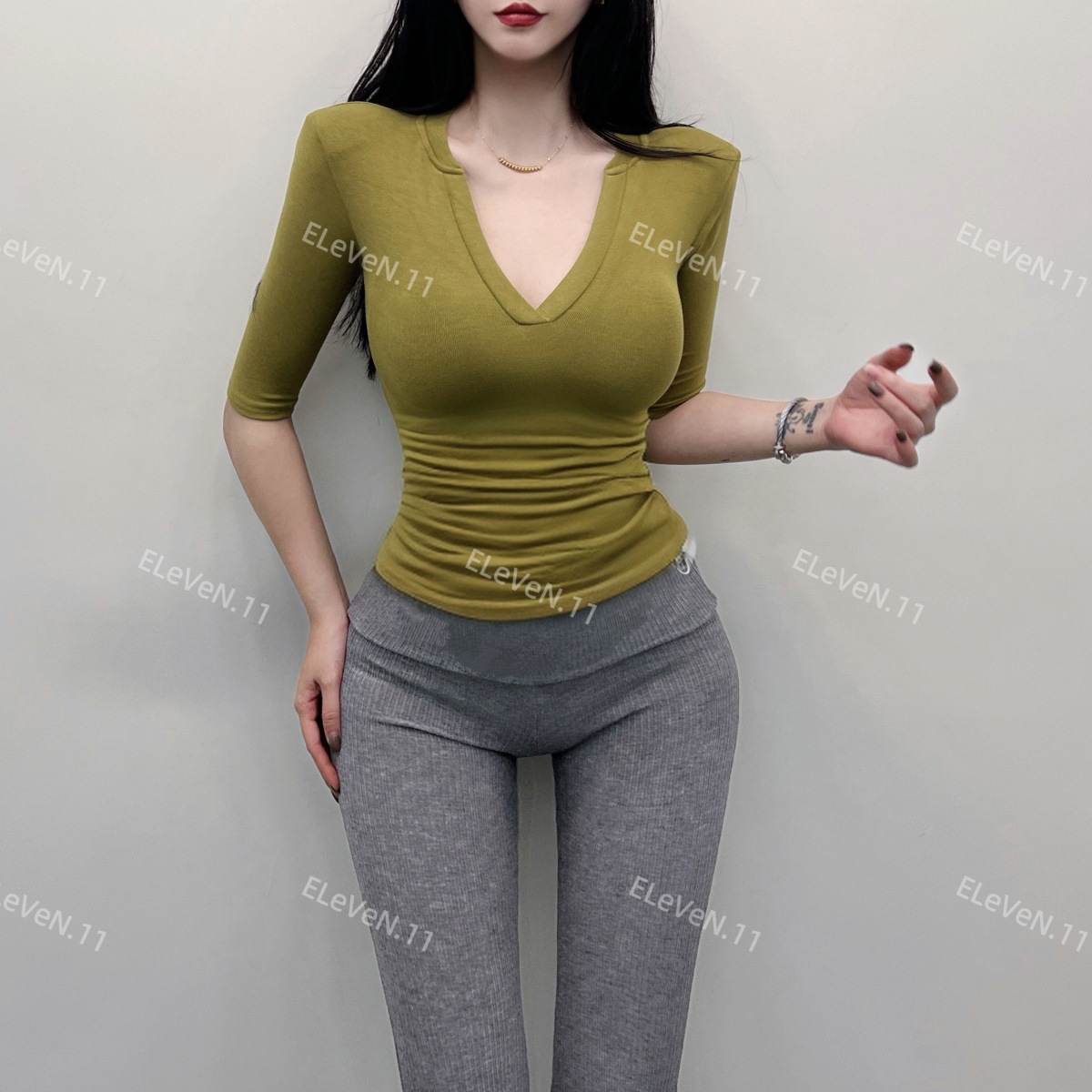 봄과 여름에 허리 꼬집는 작은 섹시 하프 오픈 칼라 반팔 탑 여성용 타이트한 티셔츠 바지 셔츠 입을 좋아하는 사람스토어 가기