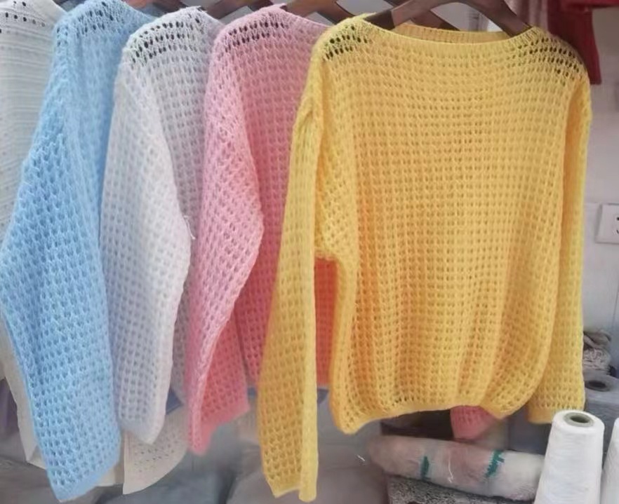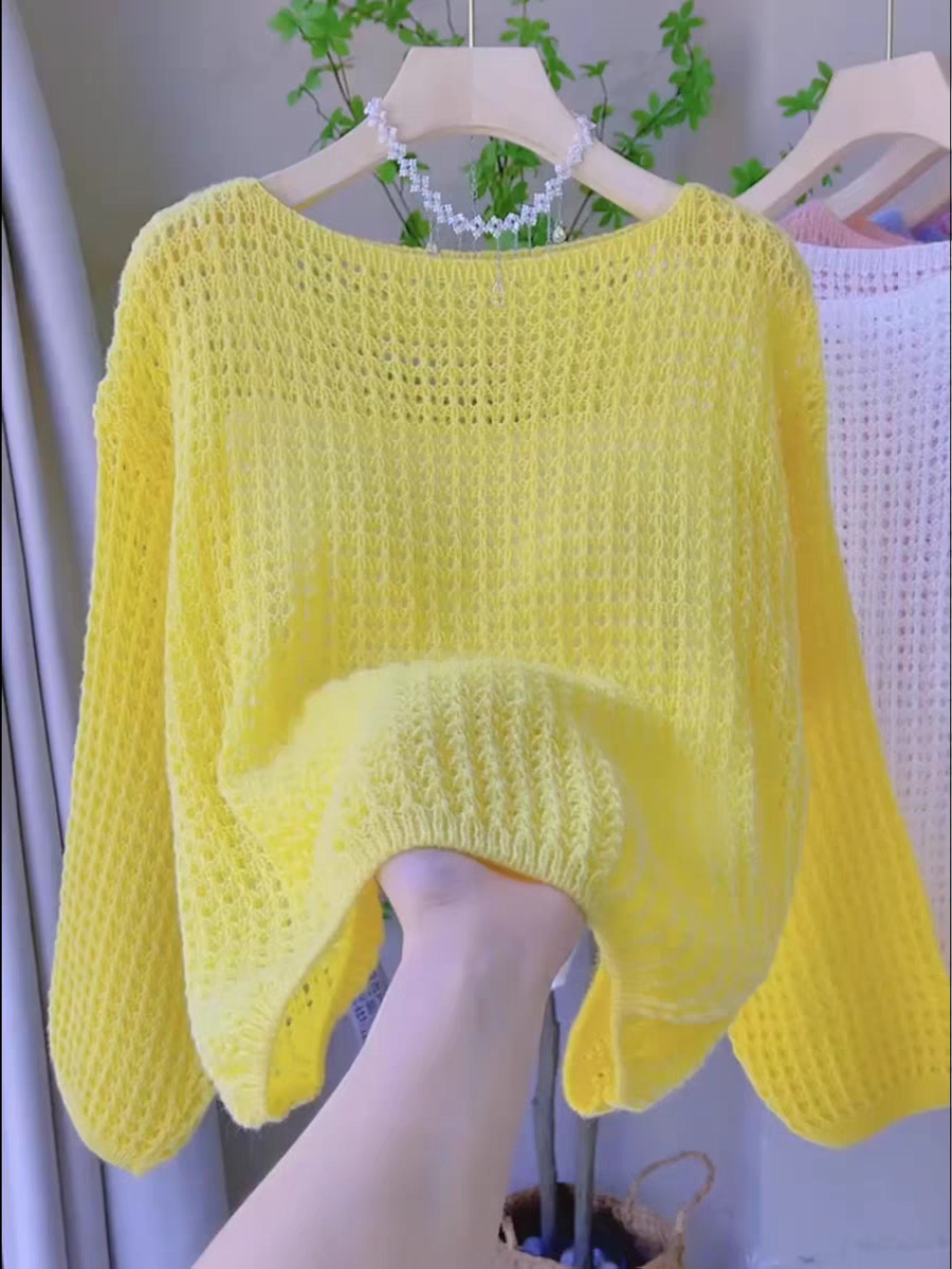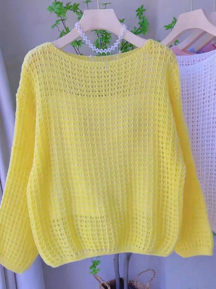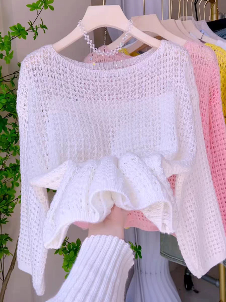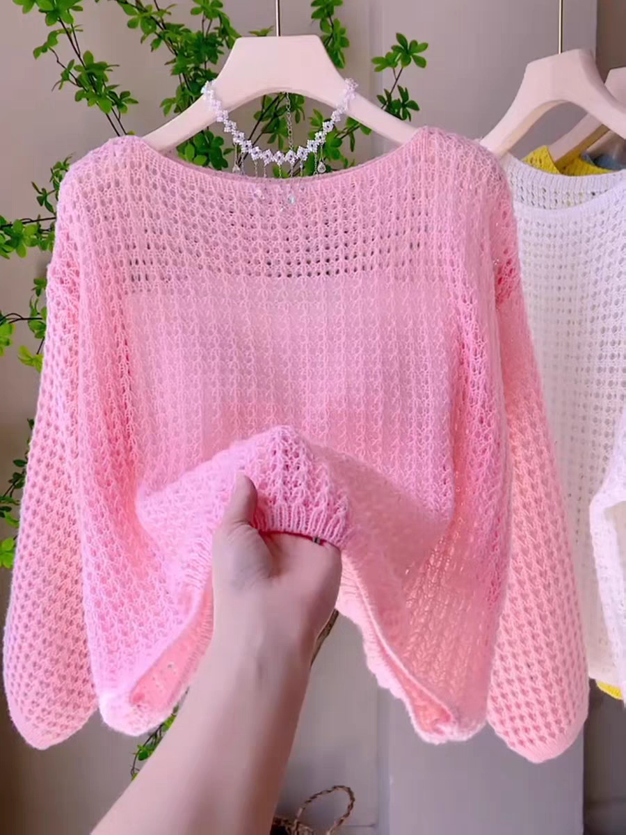봄과 여름 2025 새로운 할로우 얇은 둥근 목 스웨터 탑 느슨한 게으른 스타일 선 스크린 블라우스 풀오버 여성의 트렌디