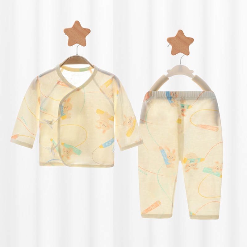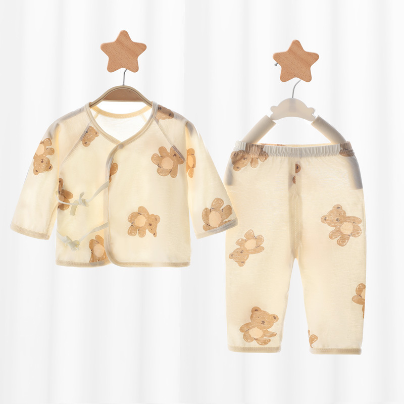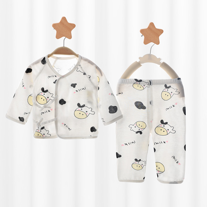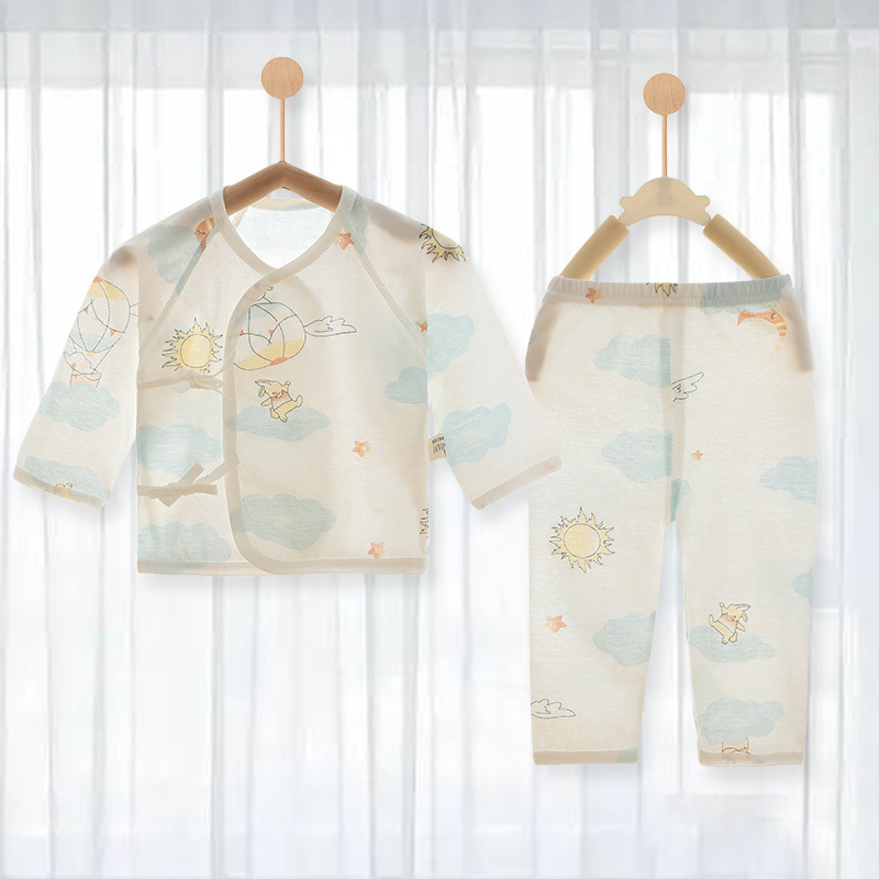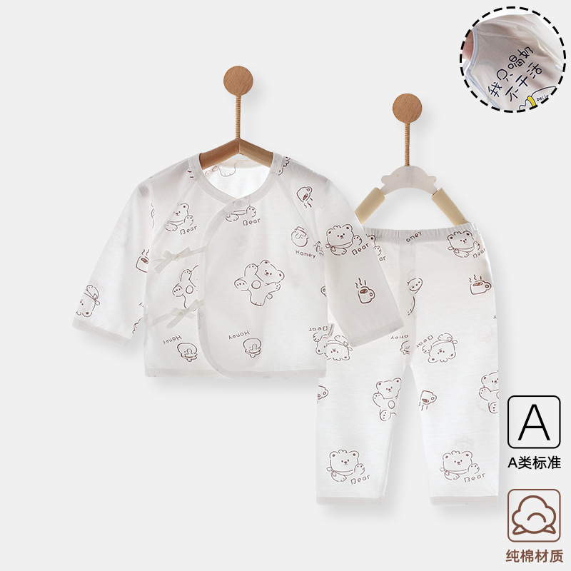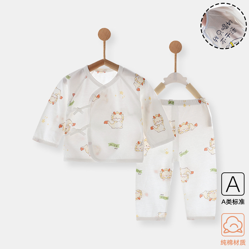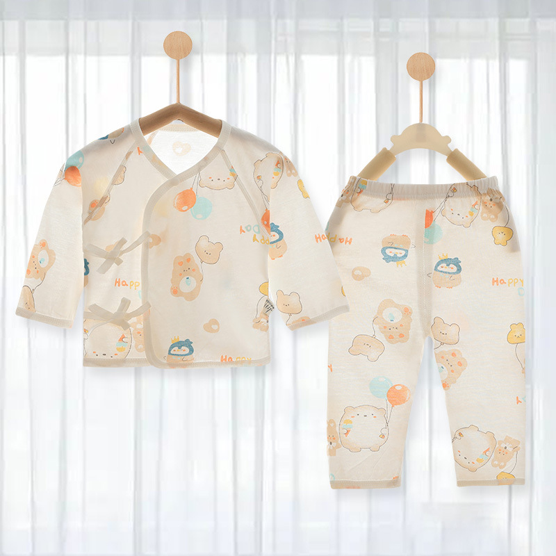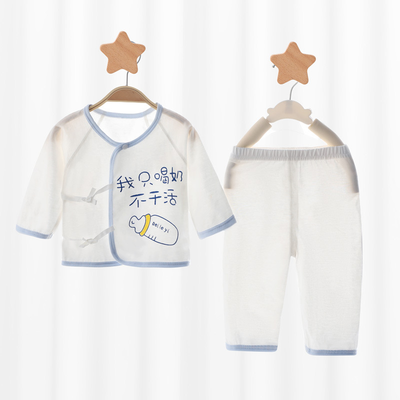 아기 속옷 세트 신생아 여름 얇은 집 옷 슬랜트 플래켓 레이스 업 몽크 옷 순수한면 뼈없는 편안한스토어 가기