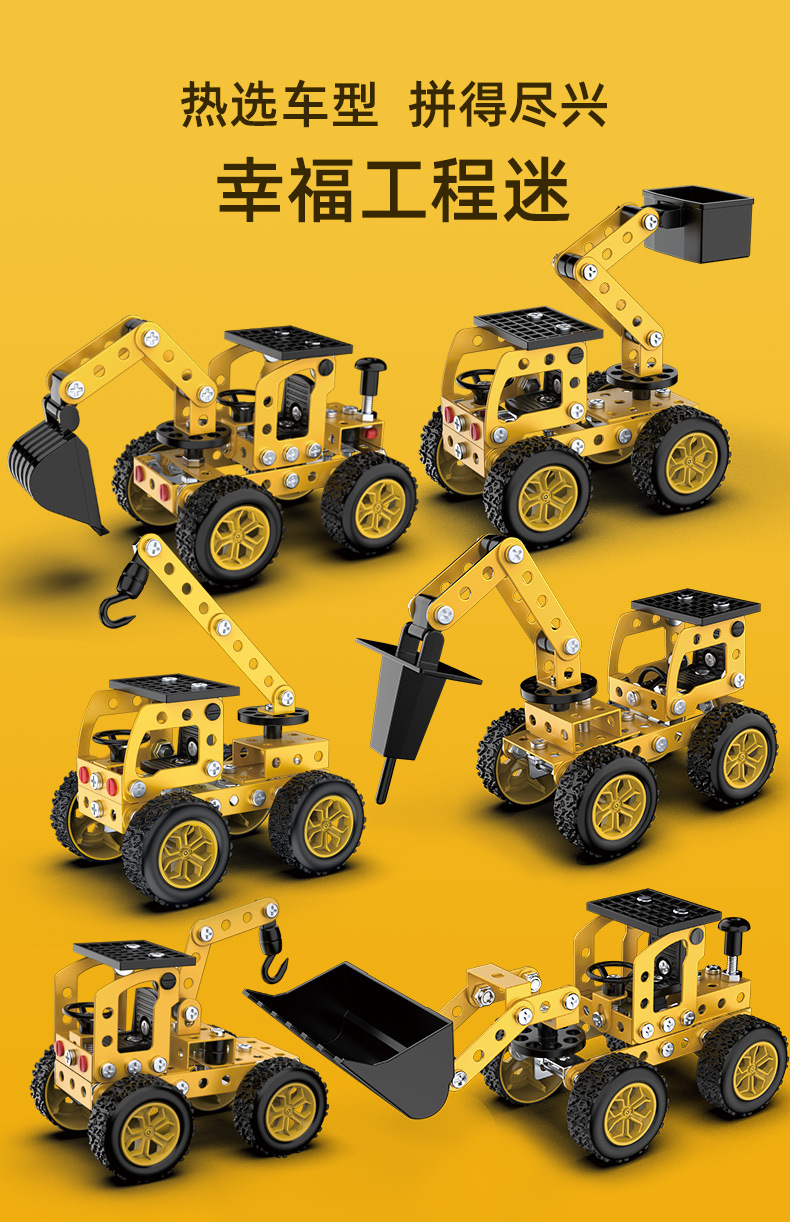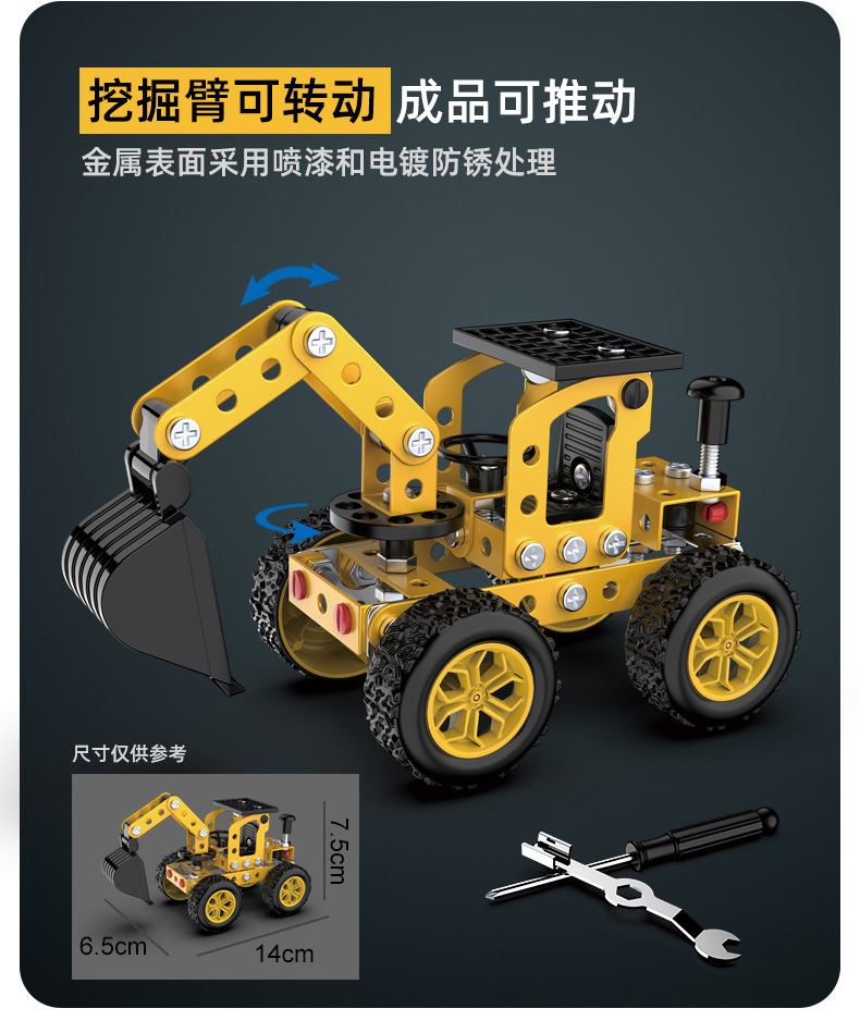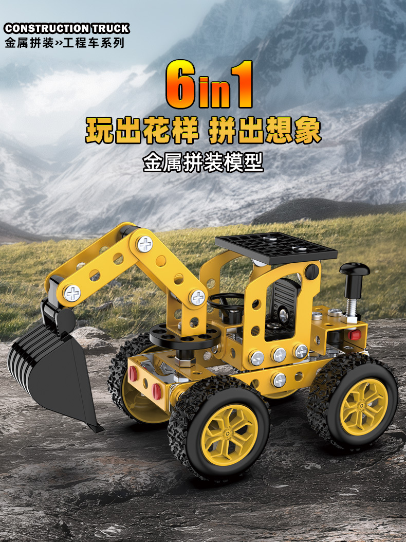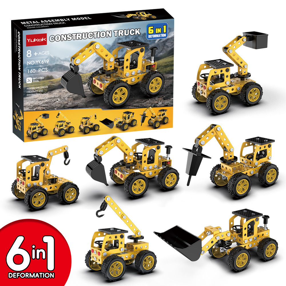 6 in 1 어린이 퍼즐 금속 조립 모델 엔지니어링 자동차 빌딩 블록 굴삭기 조립 장난감 국경 간스토어 가기