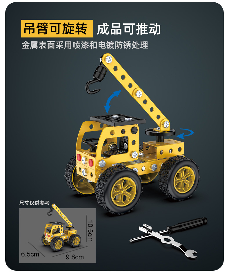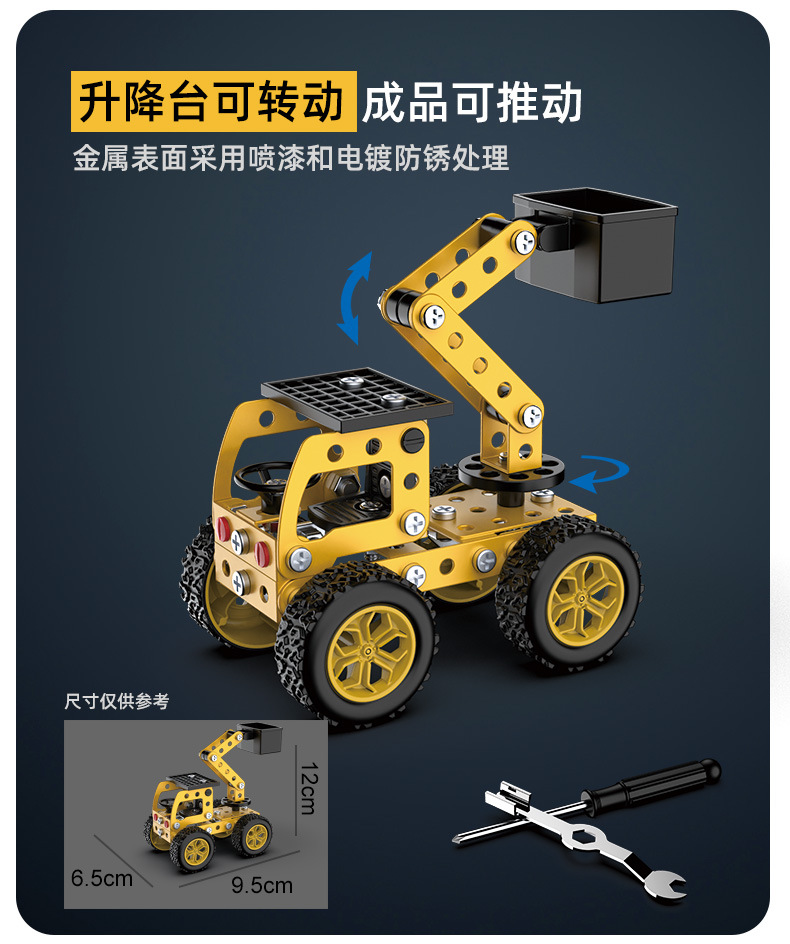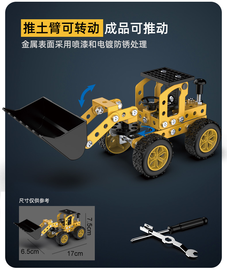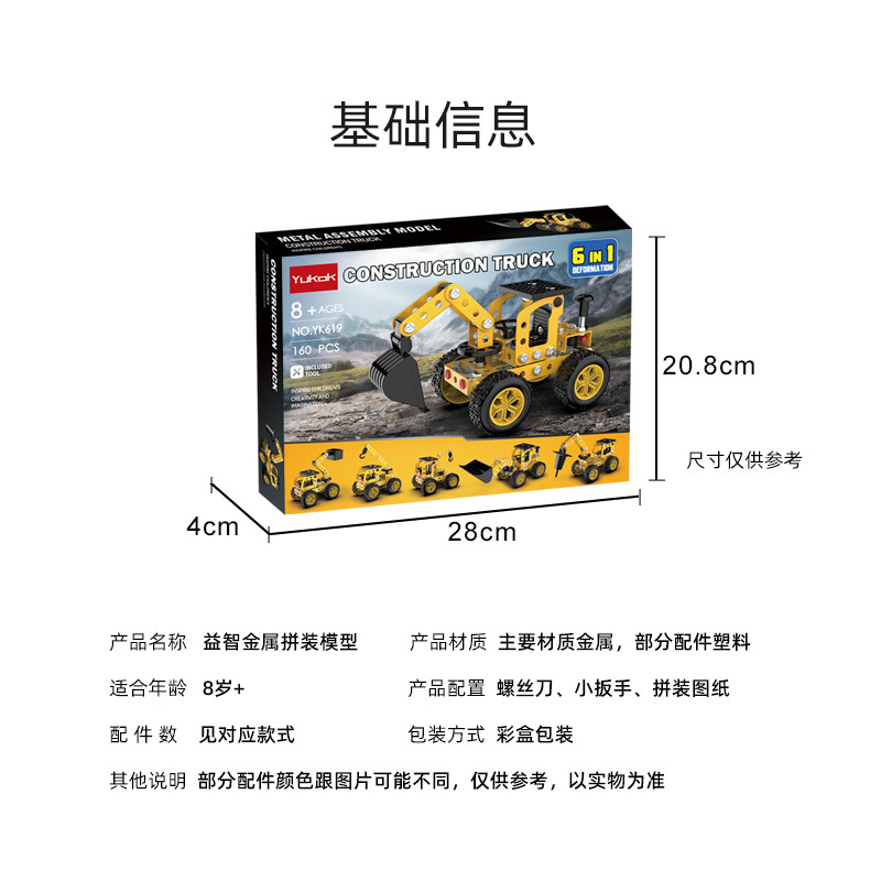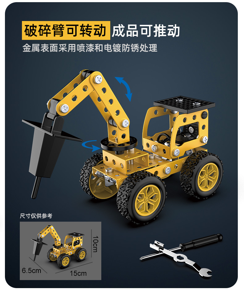 6 in 1 어린이 퍼즐 금속 조립 모델 엔지니어링 자동차 빌딩 블록 굴삭기 조립 장난감 국경 간스토어 가기