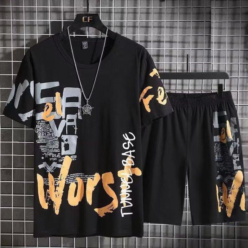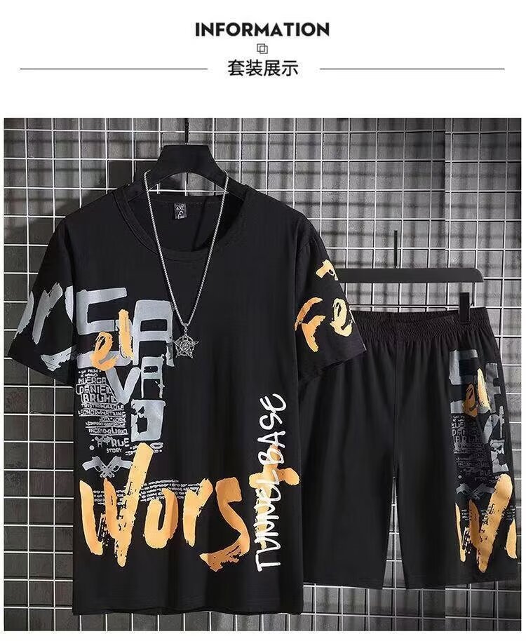 유행 여름 남자 스포츠 반팔 반바지 세트 패션 유행 느슨한 반팔 바지 두 조각 세트 헤어 남성 의류스토어 가기