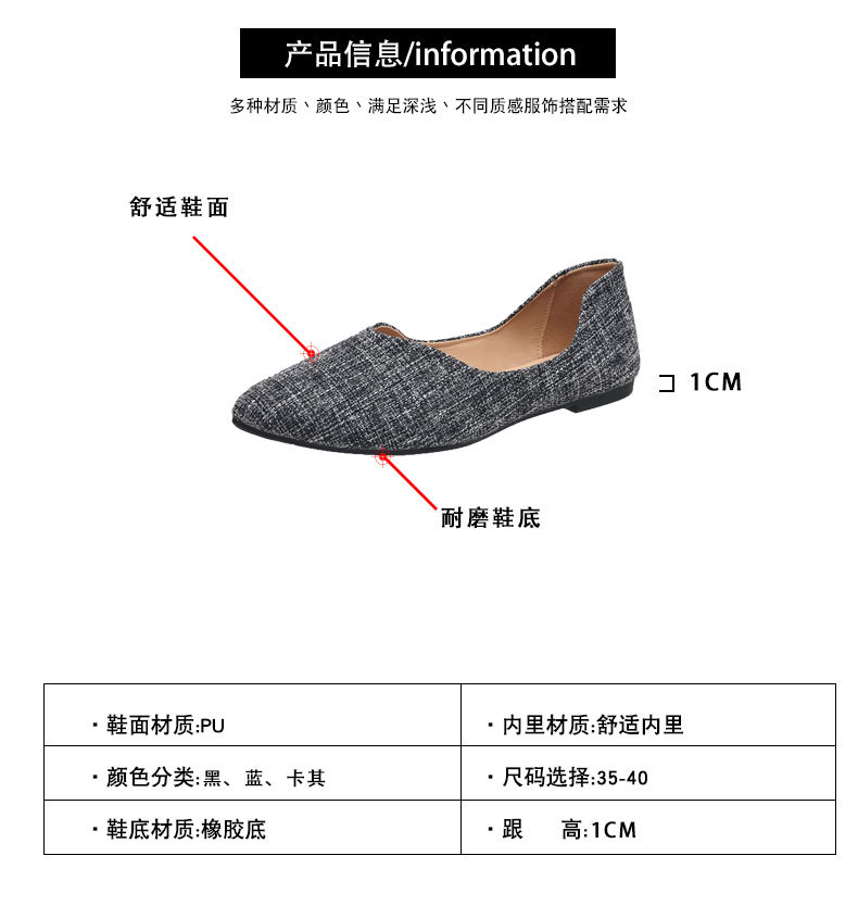 2025 새로운 대외 무역 플러스 사이즈 패션 플랫 여성 신발 포인트 낮은 입 캐주얼 신발 편안한 낮은 발 뒤꿈치 콩 신발스토어 가기
