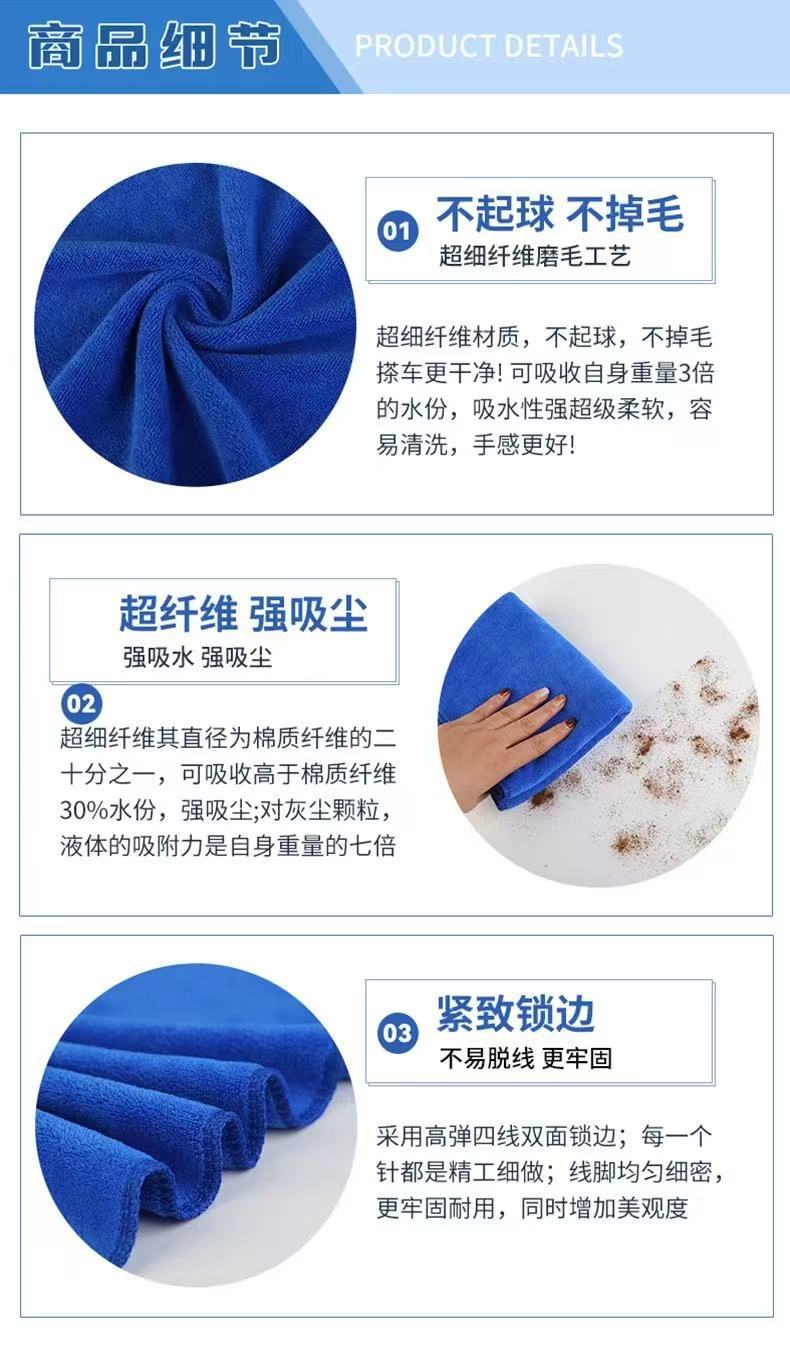 청소 하우스 키핑 넝마 두꺼운 흡수성 가사 청소 유리 세차 수건 원활한 섬유 자동차 타월 도매