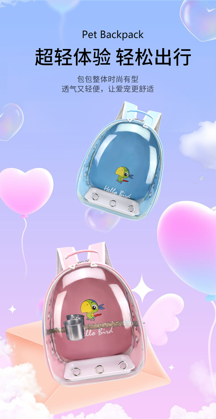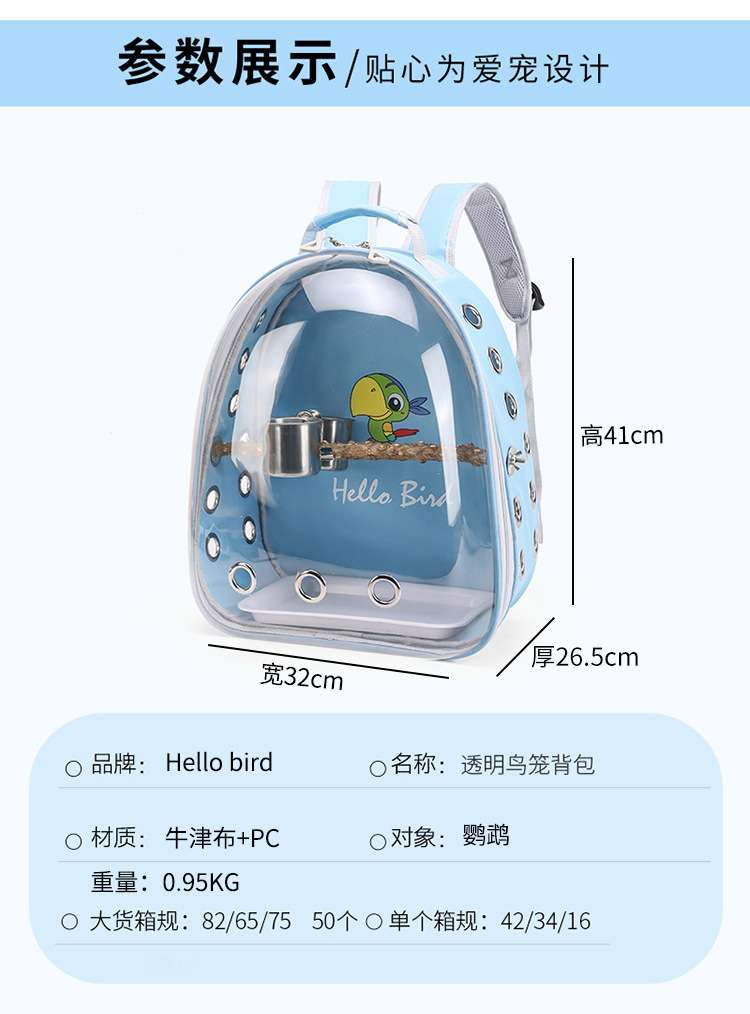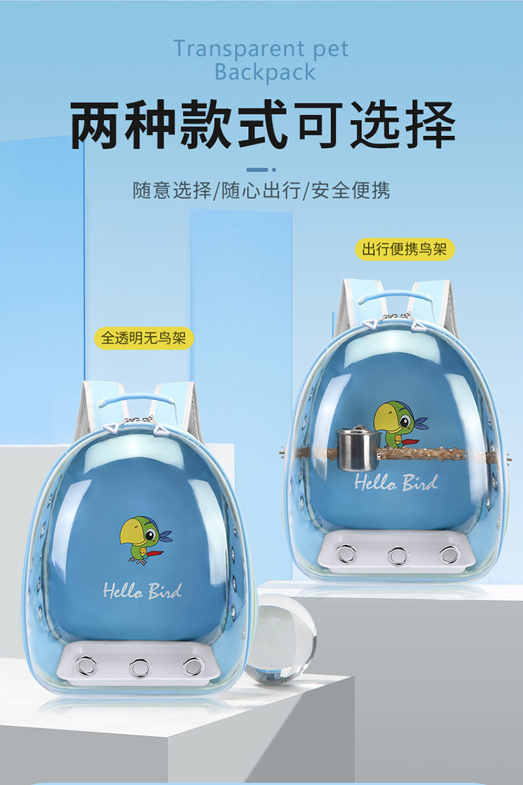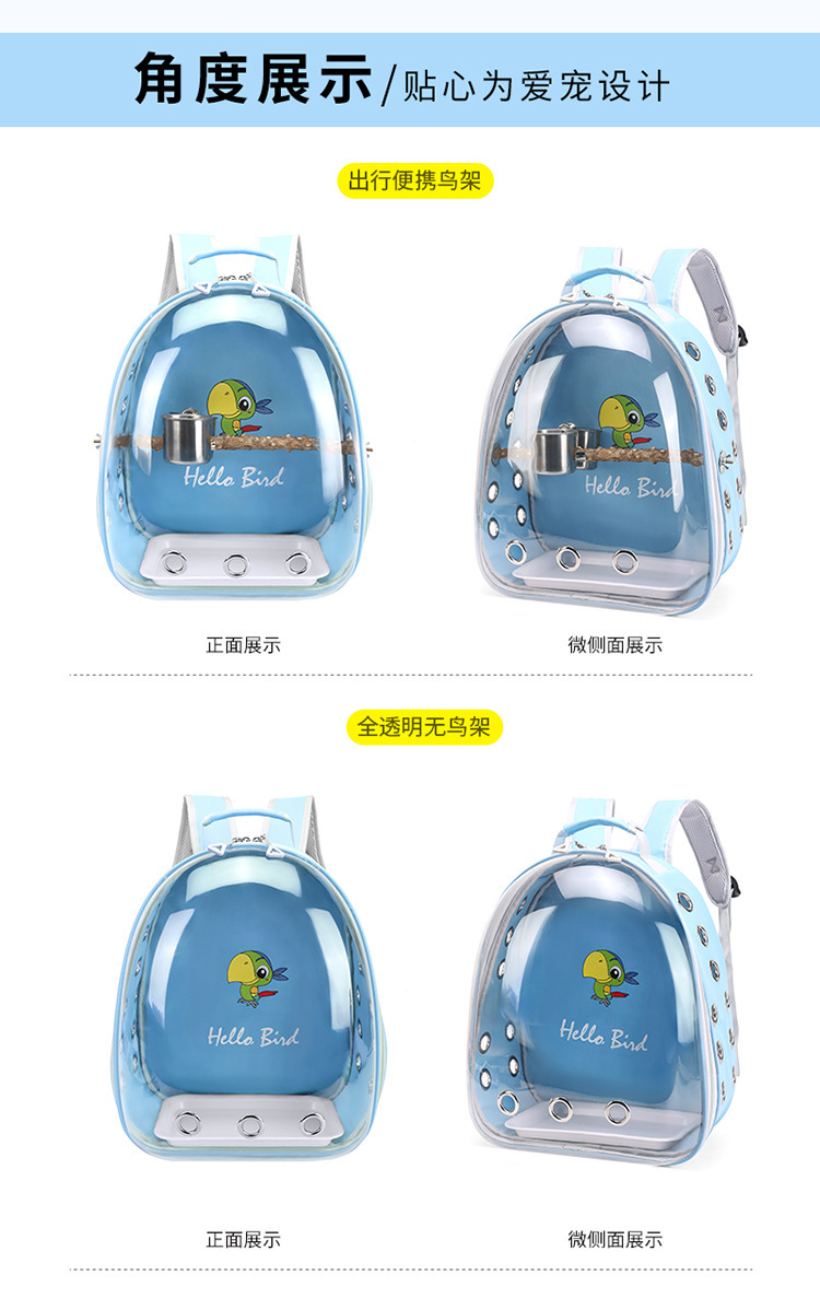 공장 직접 공급 새 가방 앵무새 가방 밖으로 배낭 투명 새장 다공성 휴대용 회색 기계 xuanfeng 호랑이 피부스토어 가기