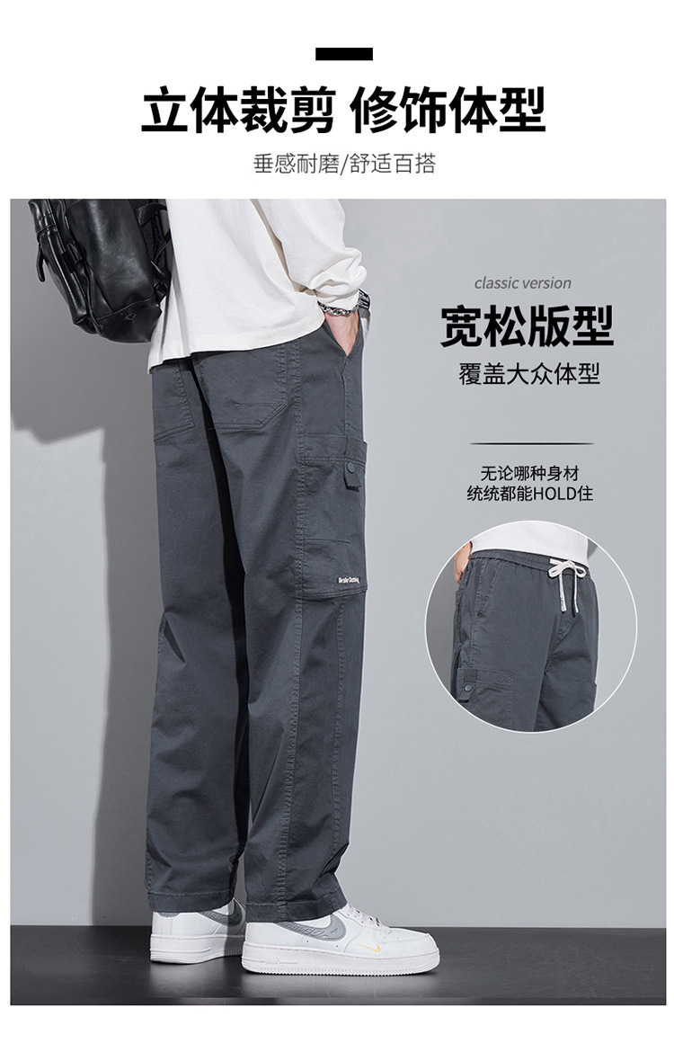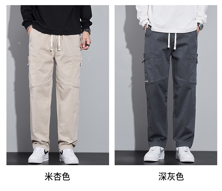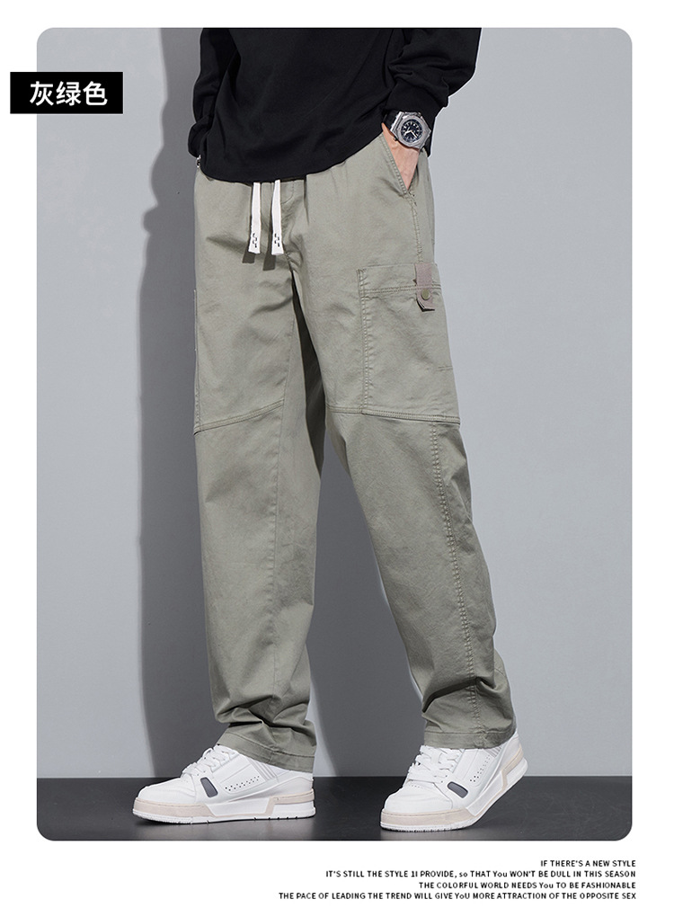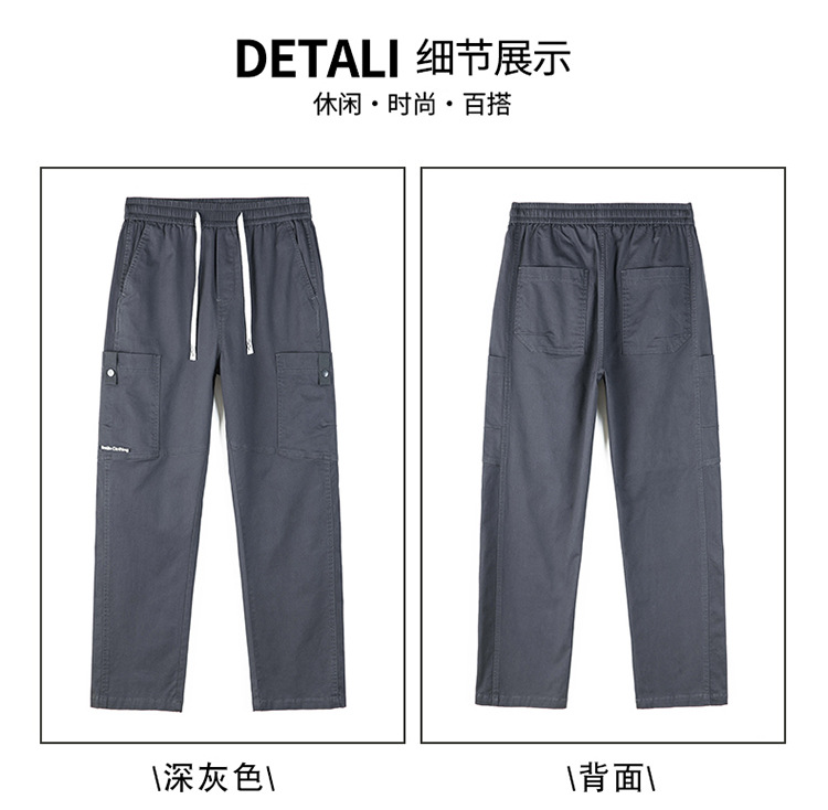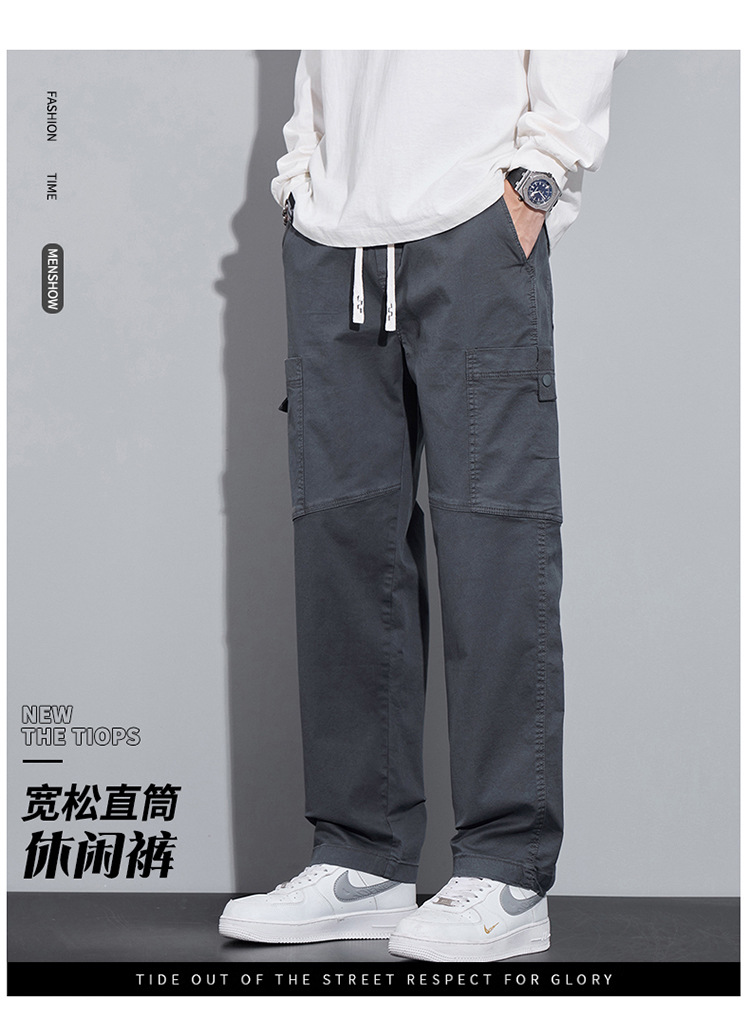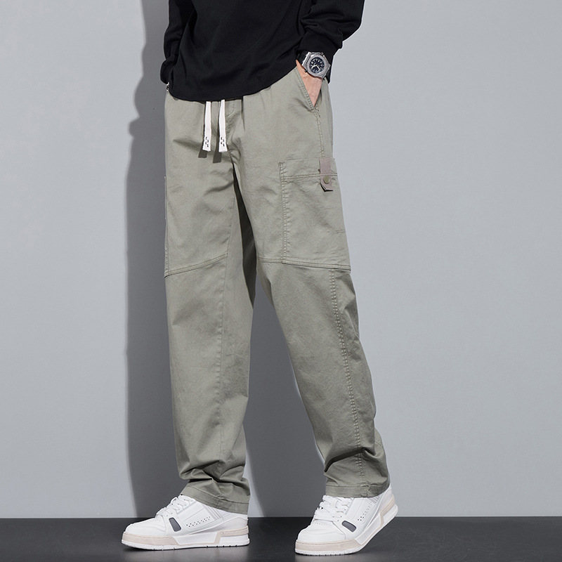 순면 워크웨어 캐주얼 팬츠 남성용 봄 여름 2026 신상 루즈핏 스트레이트 엘라스틱 학생 스포츠 와이드 팬츠 트렌디