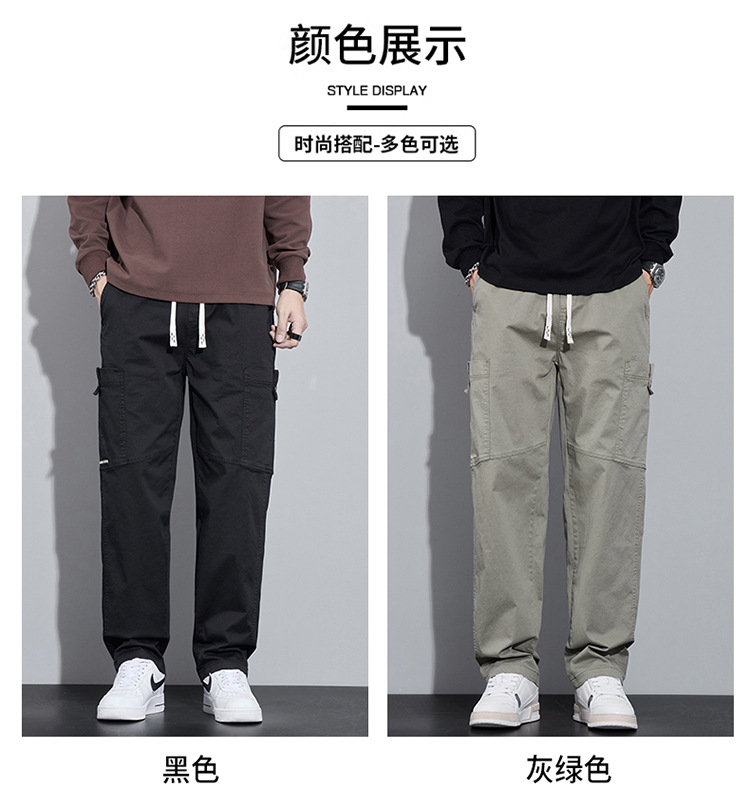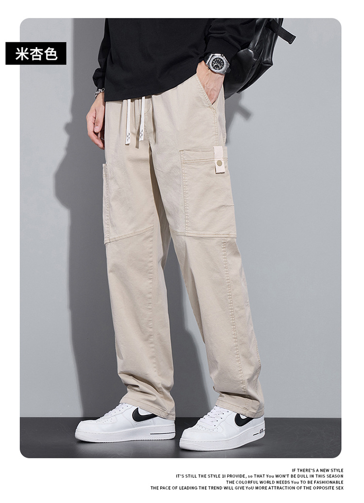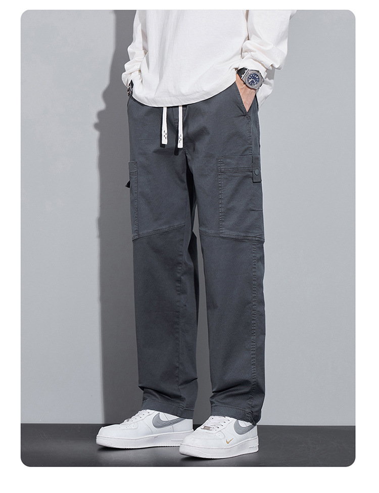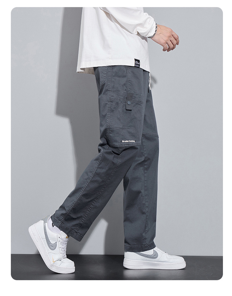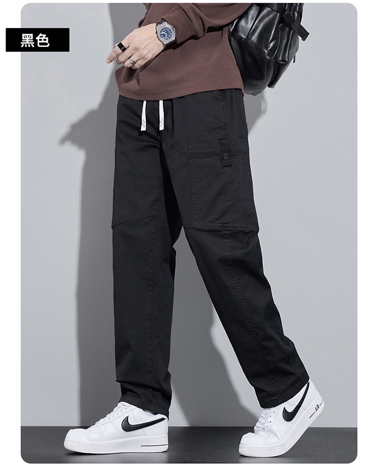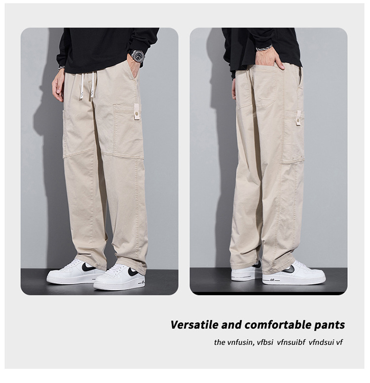 순면 워크웨어 캐주얼 팬츠 남성용 봄 여름 2026 신상 루즈핏 스트레이트 엘라스틱 학생 스포츠 와이드 팬츠 트렌디