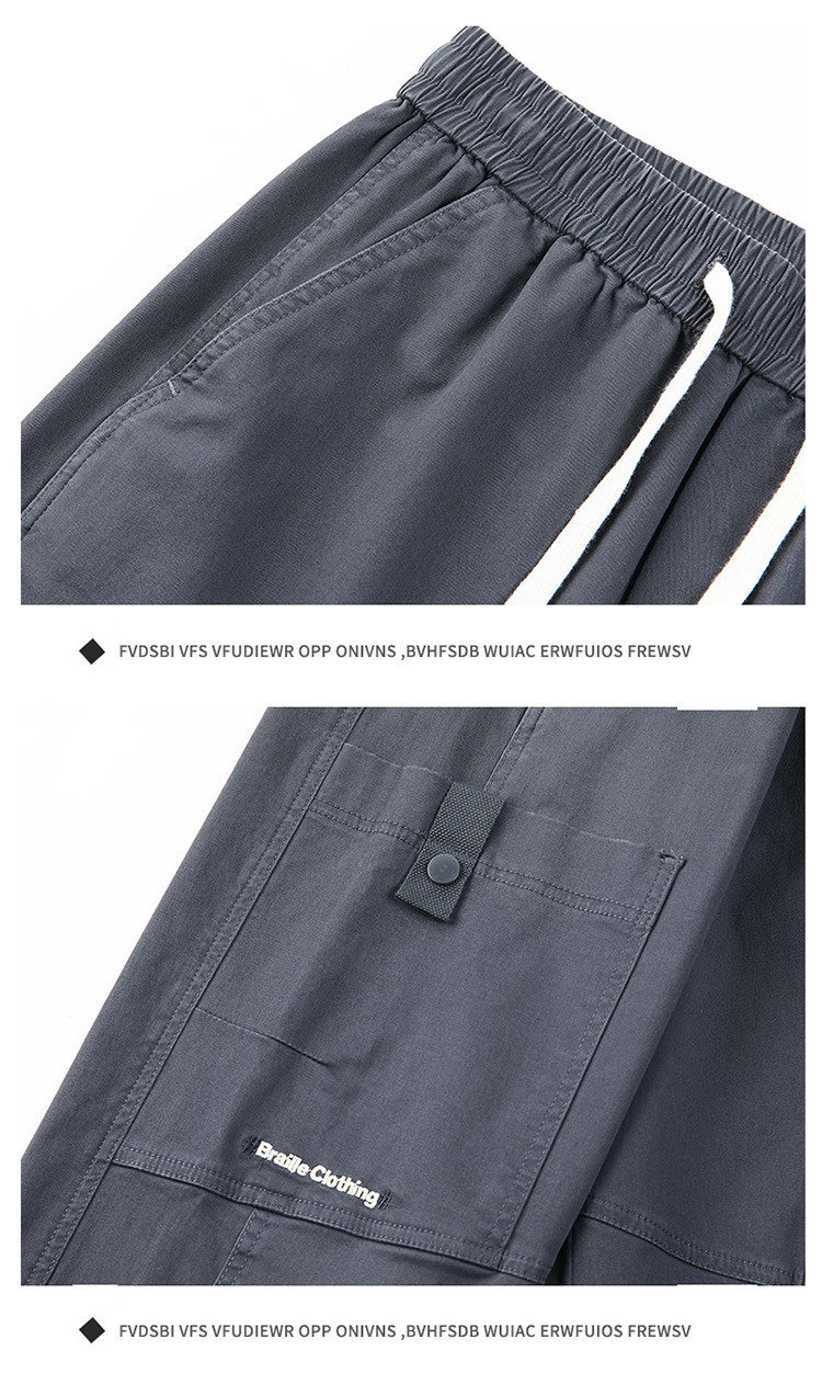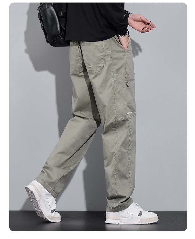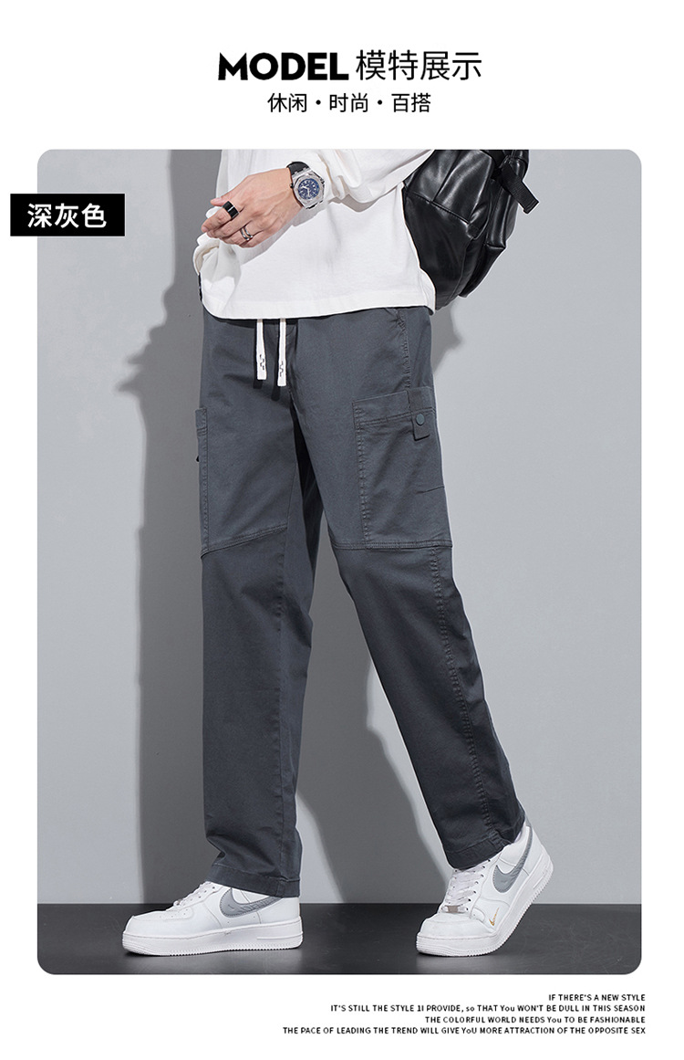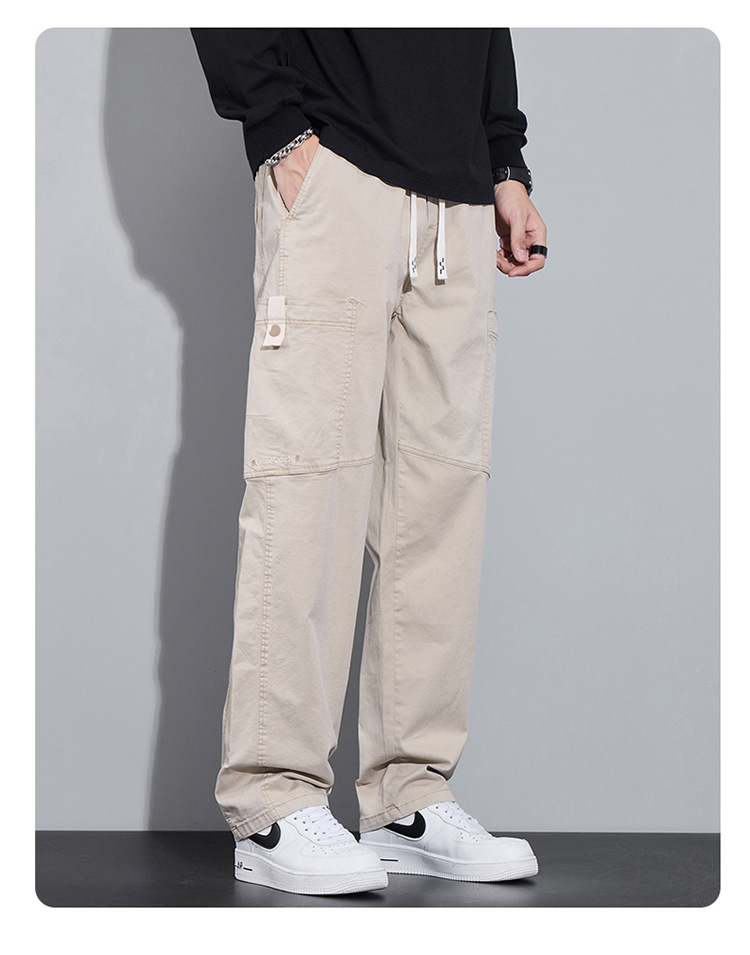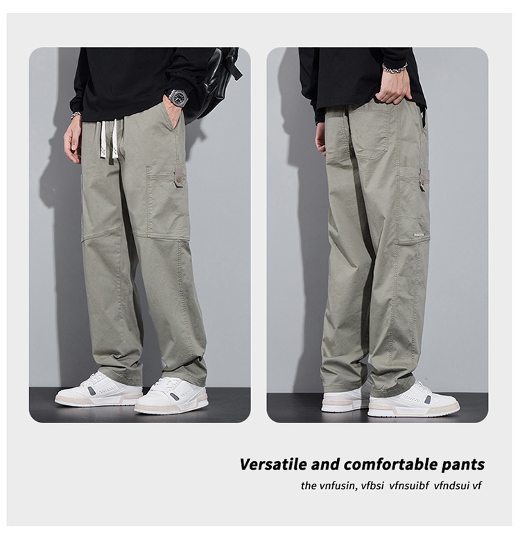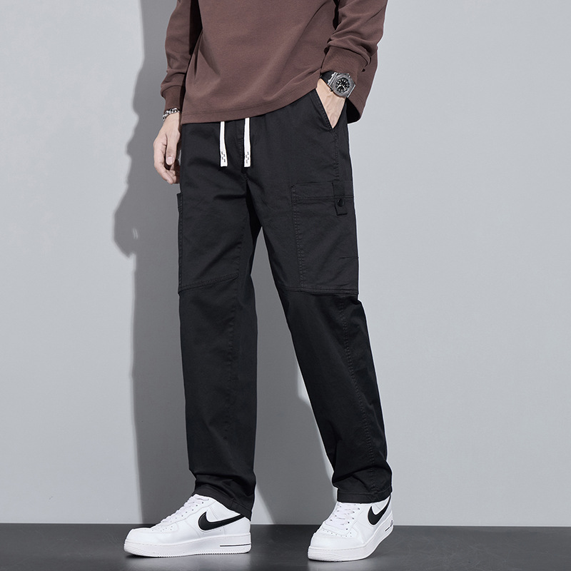 순면 워크웨어 캐주얼 팬츠 남성용 봄 여름 2026 신상 루즈핏 스트레이트 엘라스틱 학생 스포츠 와이드 팬츠 트렌디
