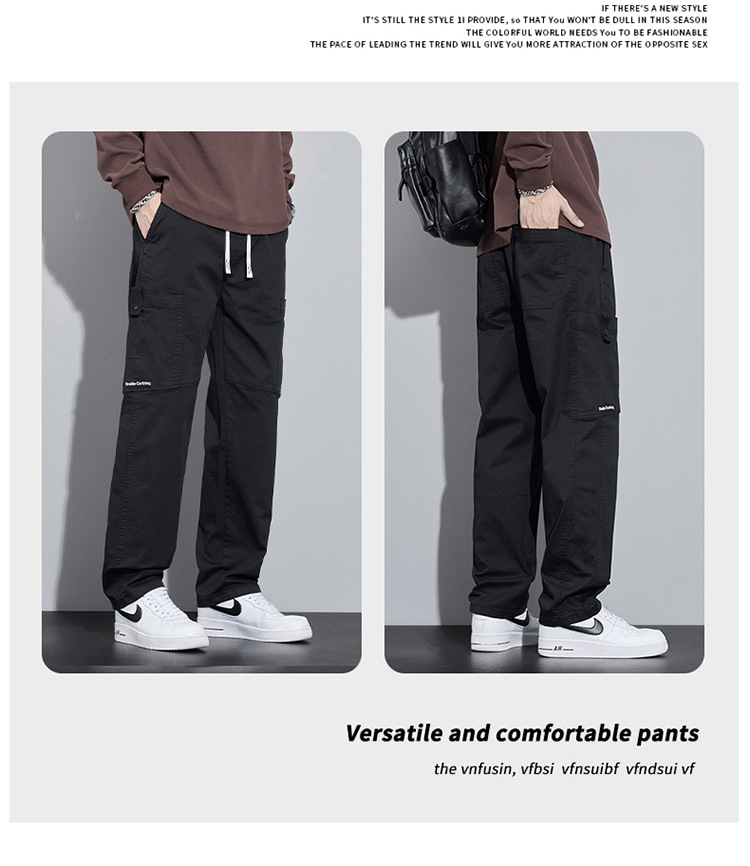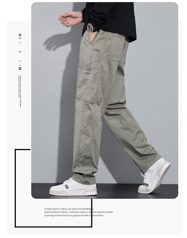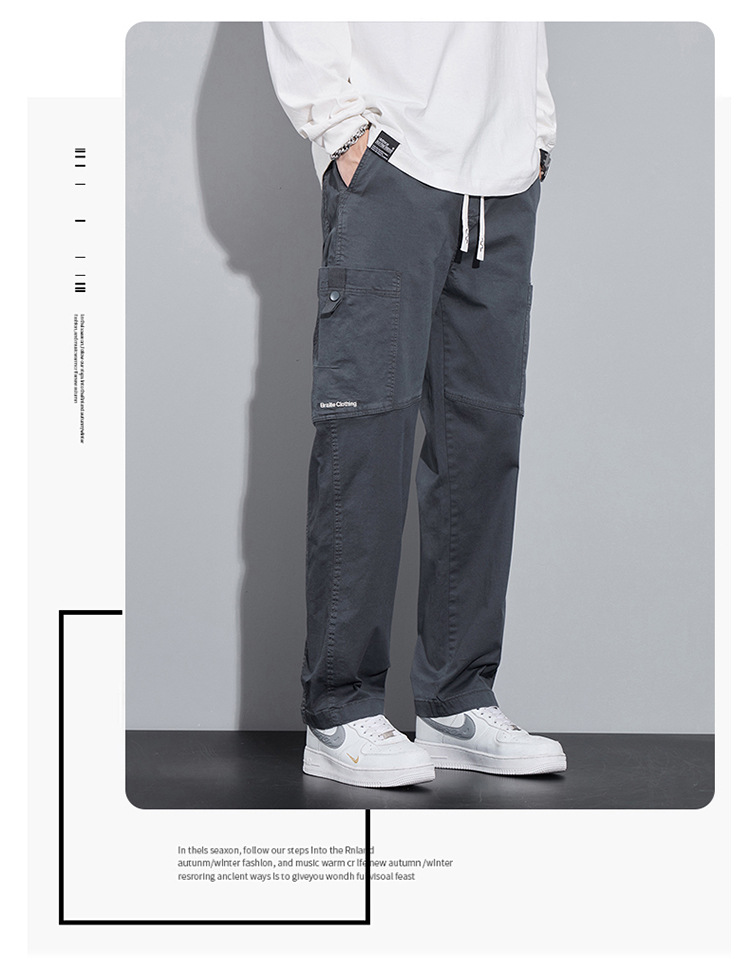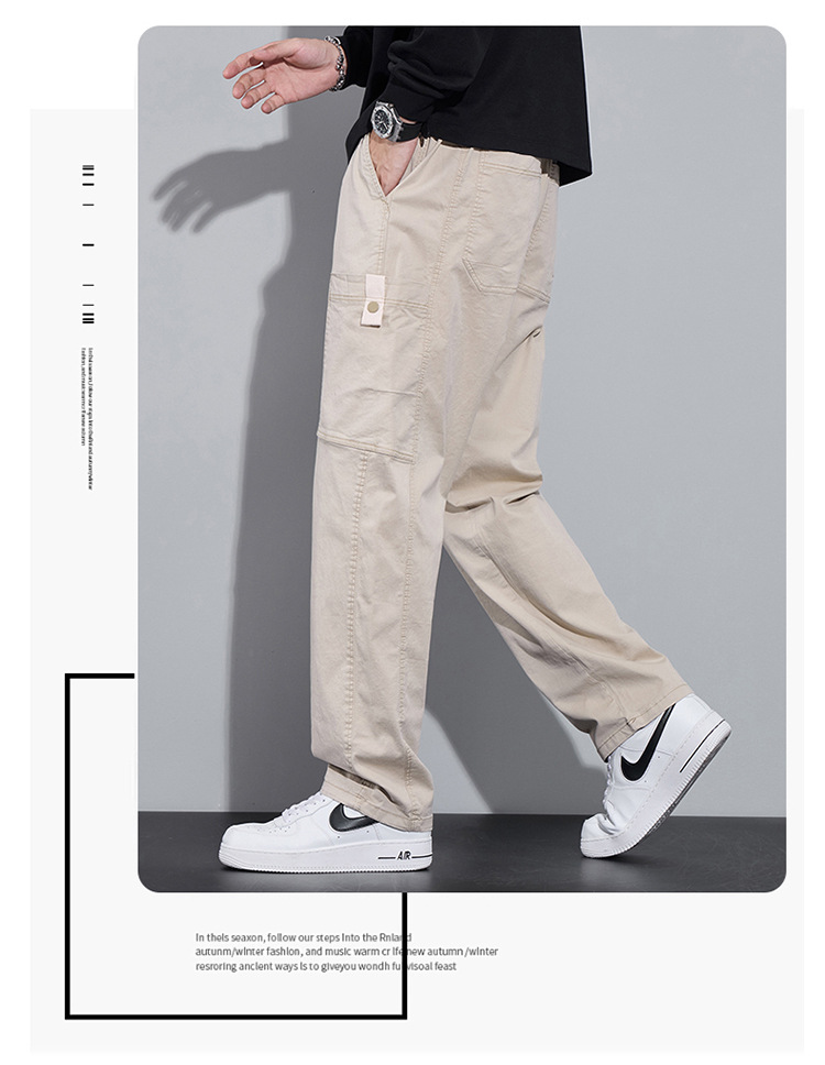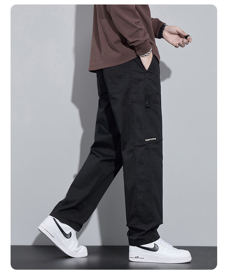 순면 워크웨어 캐주얼 팬츠 남성용 봄 여름 2026 신상 루즈핏 스트레이트 엘라스틱 학생 스포츠 와이드 팬츠 트렌디스토어 가기