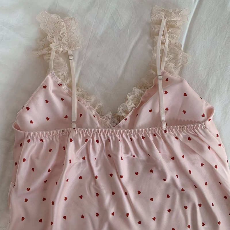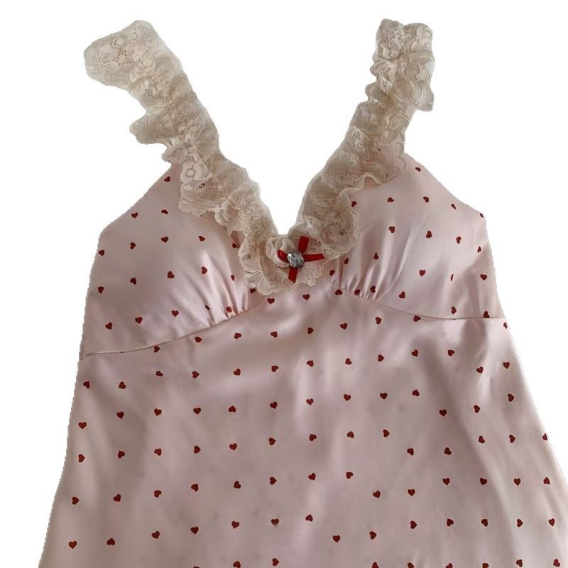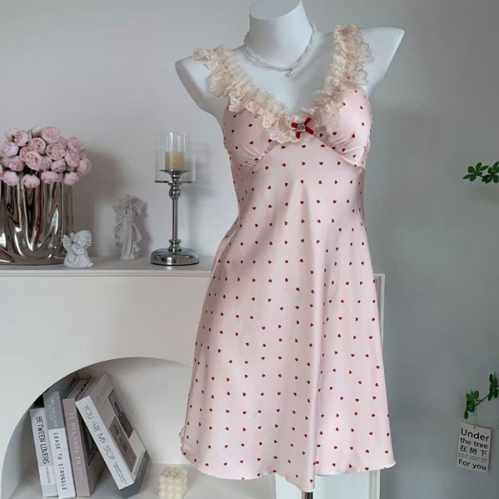 사랑과 사랑 섹시한 작은 가슴 파자마 유니폼 순수한 욕망 바람 웨이브 포인트 슬링 나이트 가운 옷 가슴 패드와 여성 활