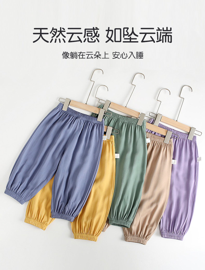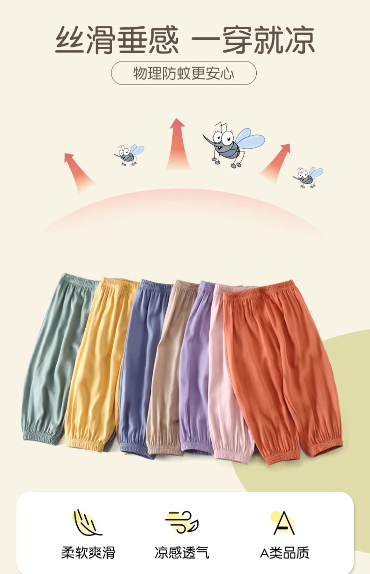 아기 바지 여름 착용 얇은 여자 바지 아이스 실크 시원한 여름 캐주얼 바지 느슨한 어린이 모기 방지 바지 여름