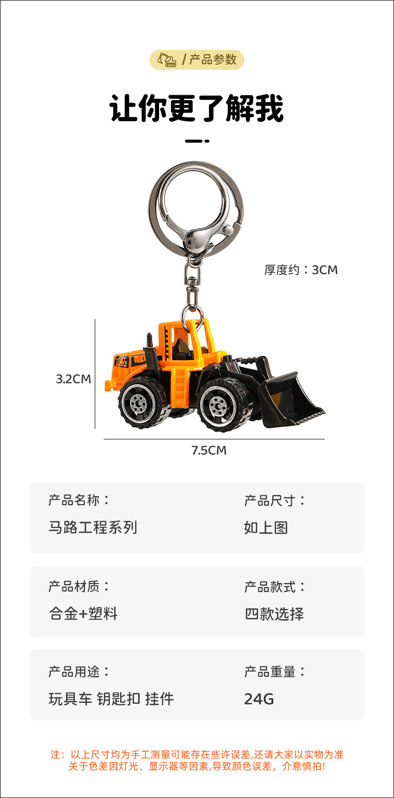 도로 엔지니어링 불도저 시리즈 키 체인 어린이 장난감 자동차 커플 가방 펜던트 작은 선물 도매스토어 가기