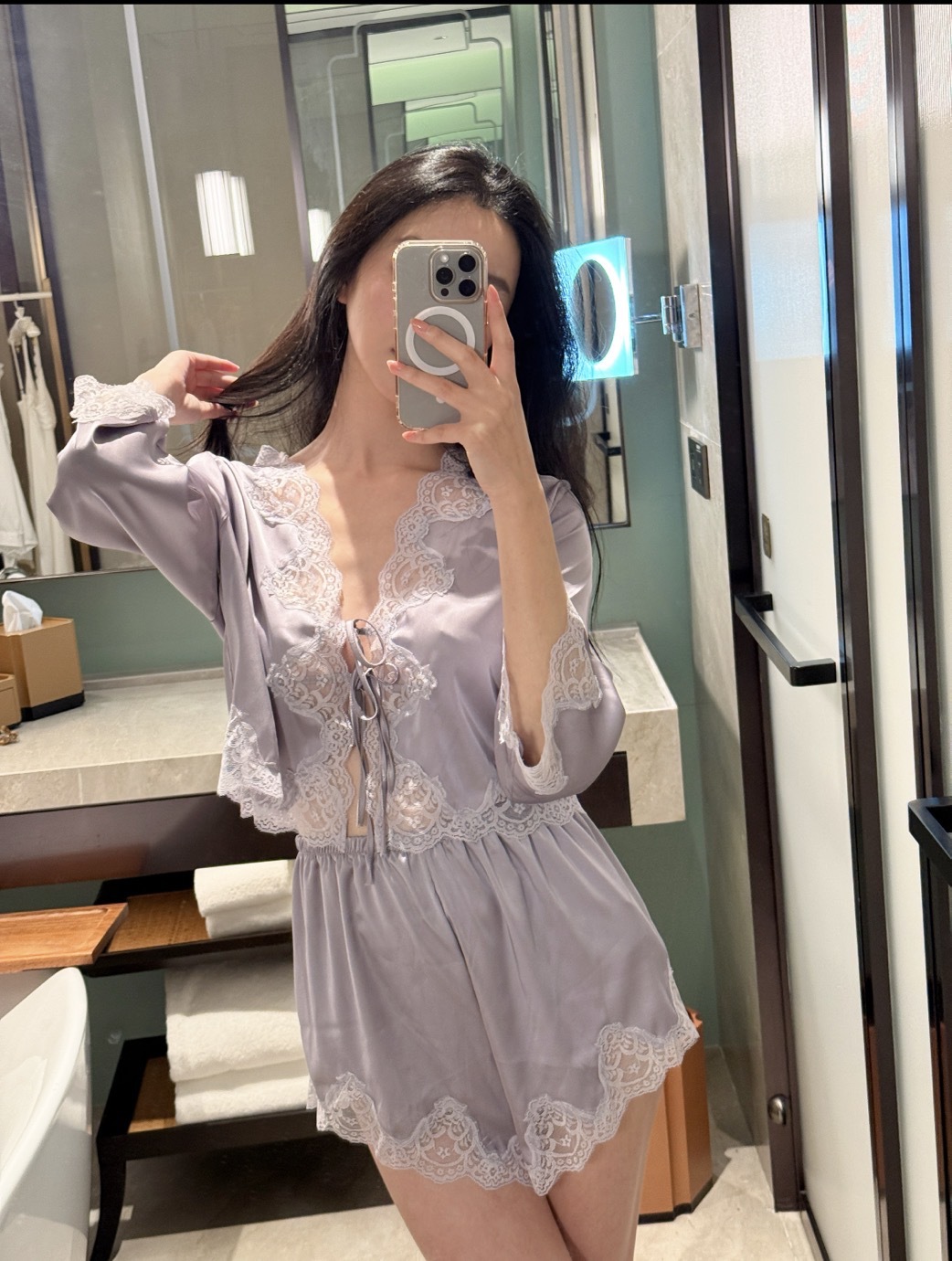 SLEEP LU 부드러운 광채의 드림메이커>여성용 잠옷 봄, 가을, 여름 얇은 순수 섹시풍 레이스 섹시 슬립 홈웨어스토어 가기