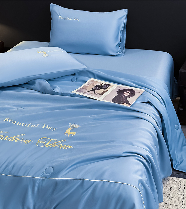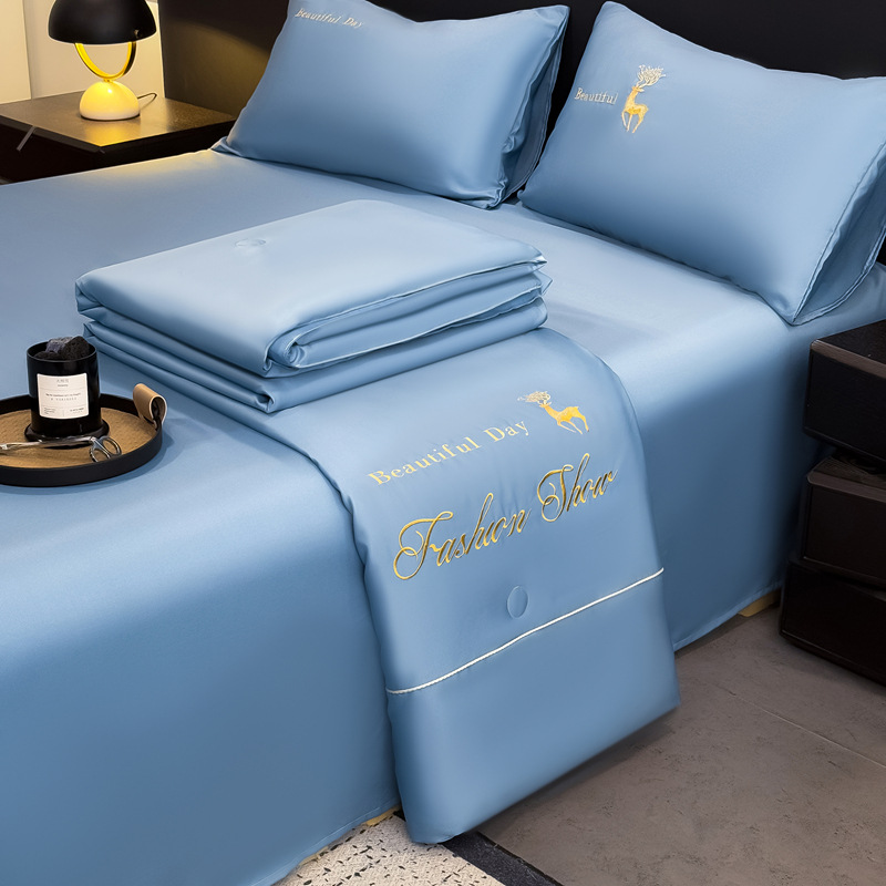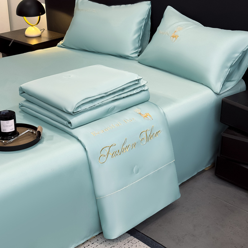 아이스 실크 여름 퀼트 에어 컨디셔닝, 여름에 급속 냉각을 위해 퀼팅 홈 학생 기숙사 여름 퀼트 4 피스 세트