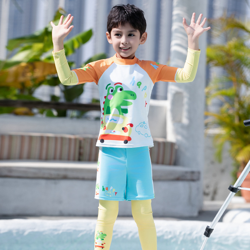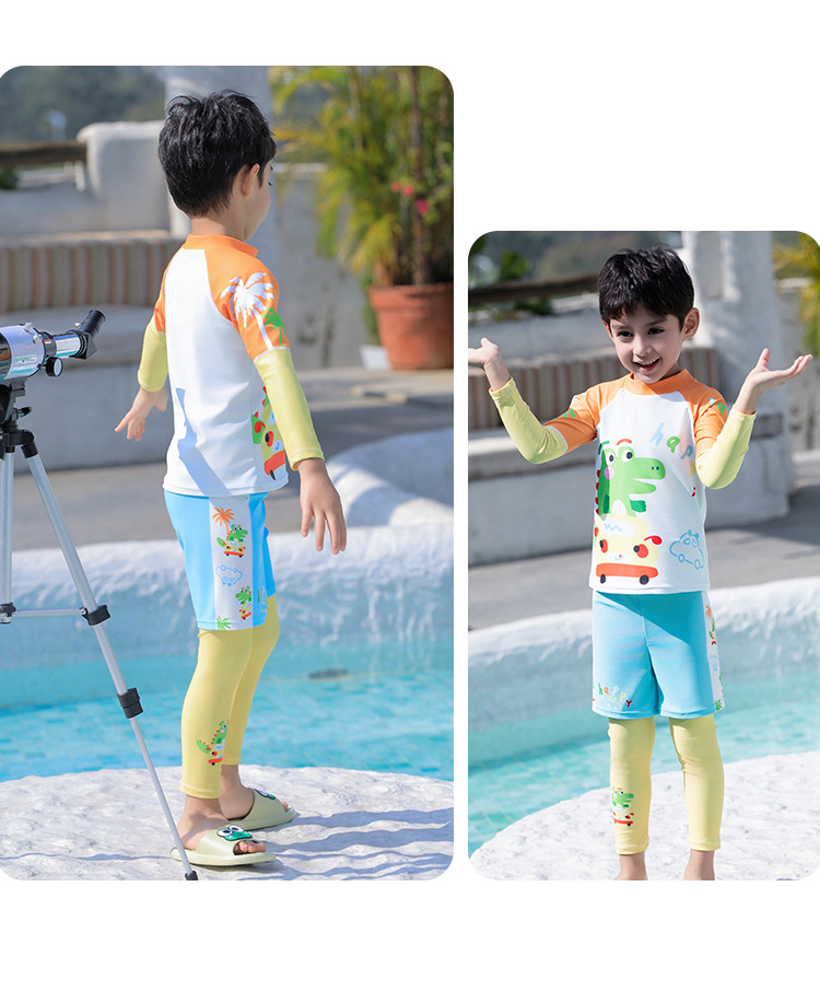 2025 새로운 어린이 수영복 소년 대형, 중소 어린이 분할 수영복 빠른 건조 온천 수영복 세트 트렁크스토어 가기