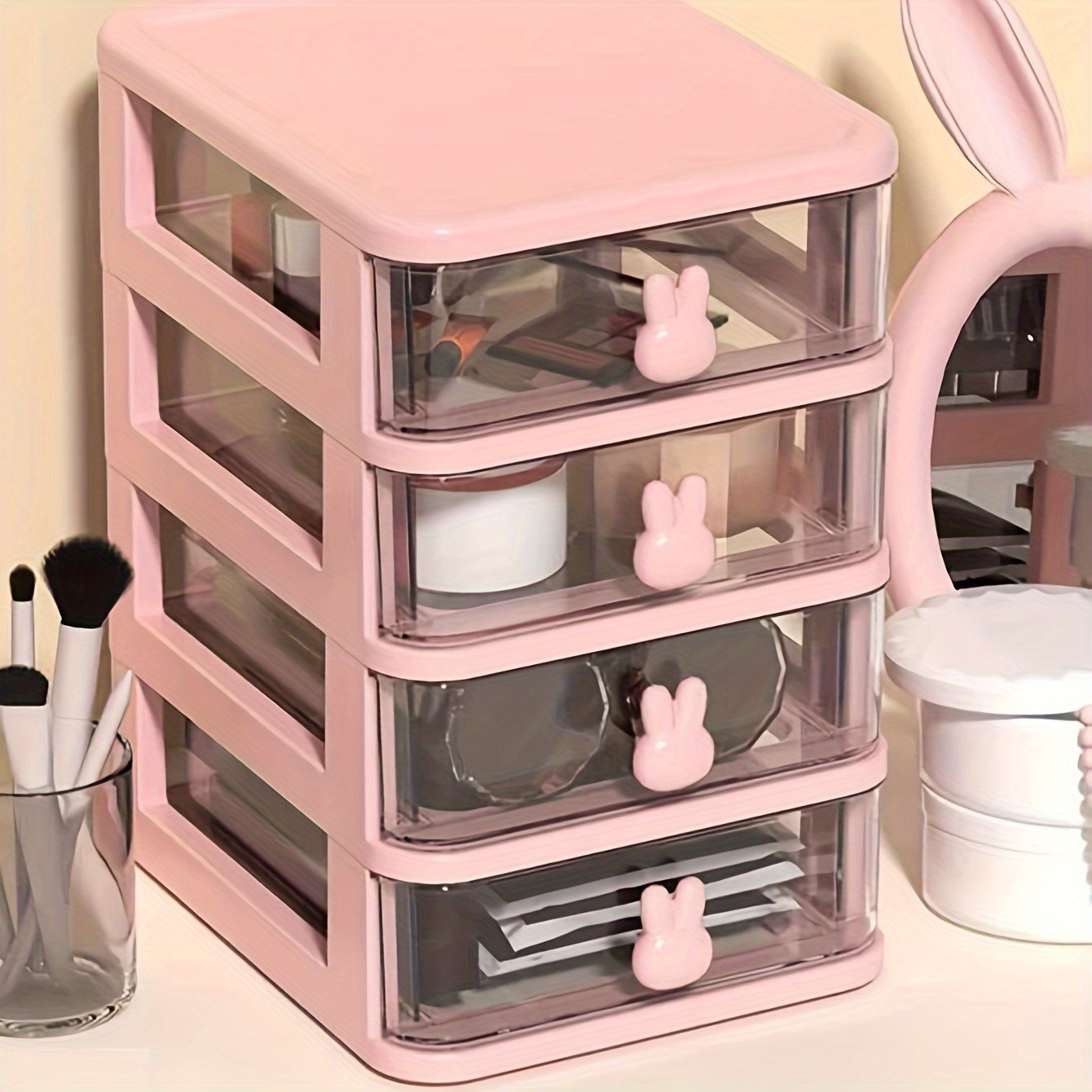 국경 만화 데스크탑 저장 상자 투명한 작은 서랍 책상 플라스틱 미니 저장 상자 문구 보관스토어 가기