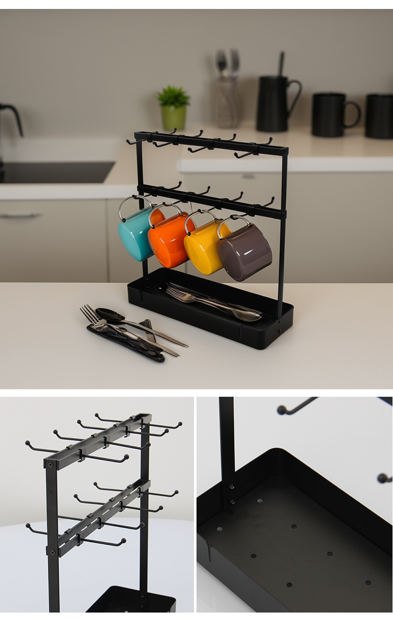 이동식 후크 커피 컵 홀더 가정용 주방 멀티 레이어 비 펀치 머그잔 걸이 잡화 보관 랙스토어 가기