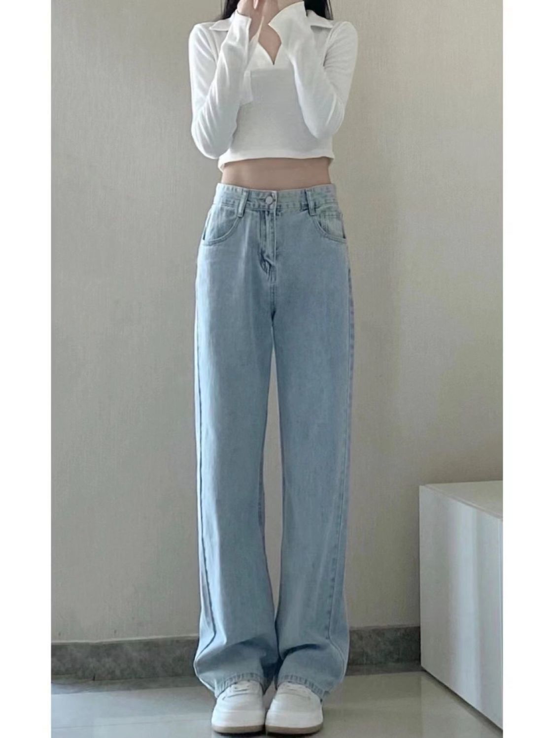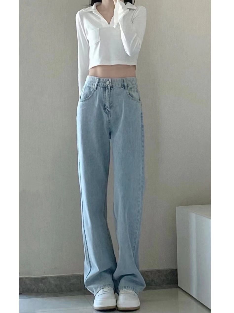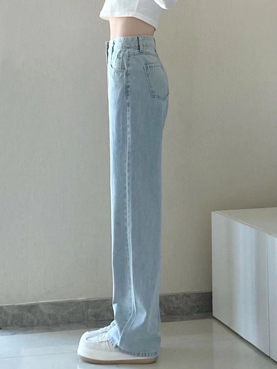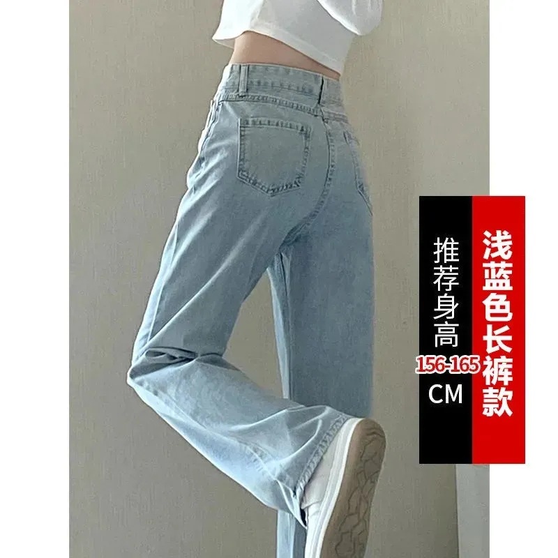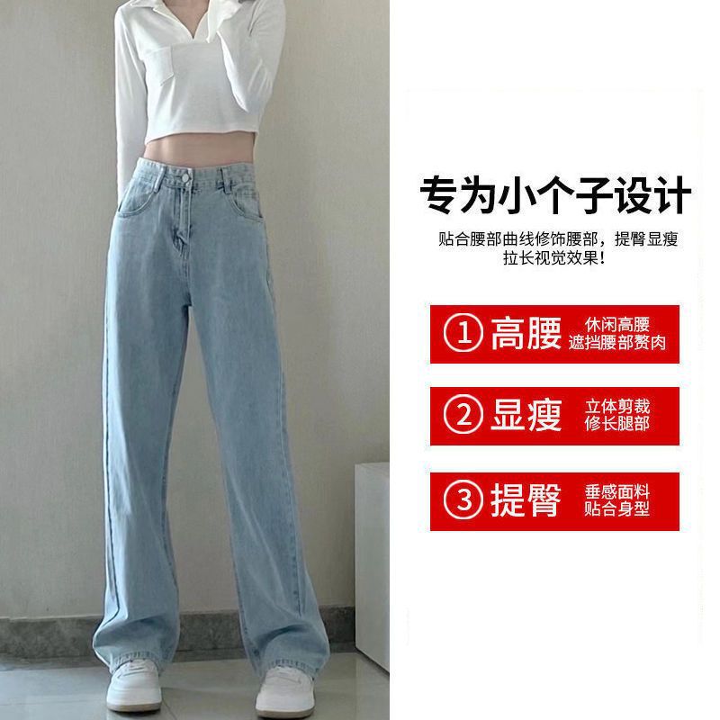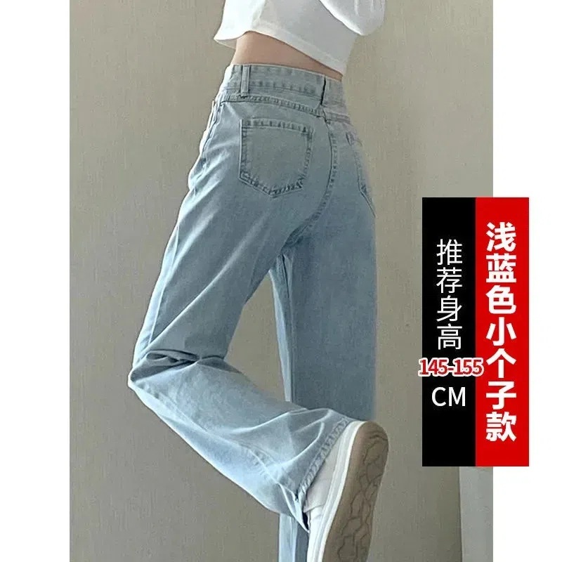 150 작은 짧은 빛 컬러 높은 허리 스트레이트 청바지 여성의 2025 년 봄과 가을 새로운 느슨한 높은 넓은 다리 바지스토어 가기