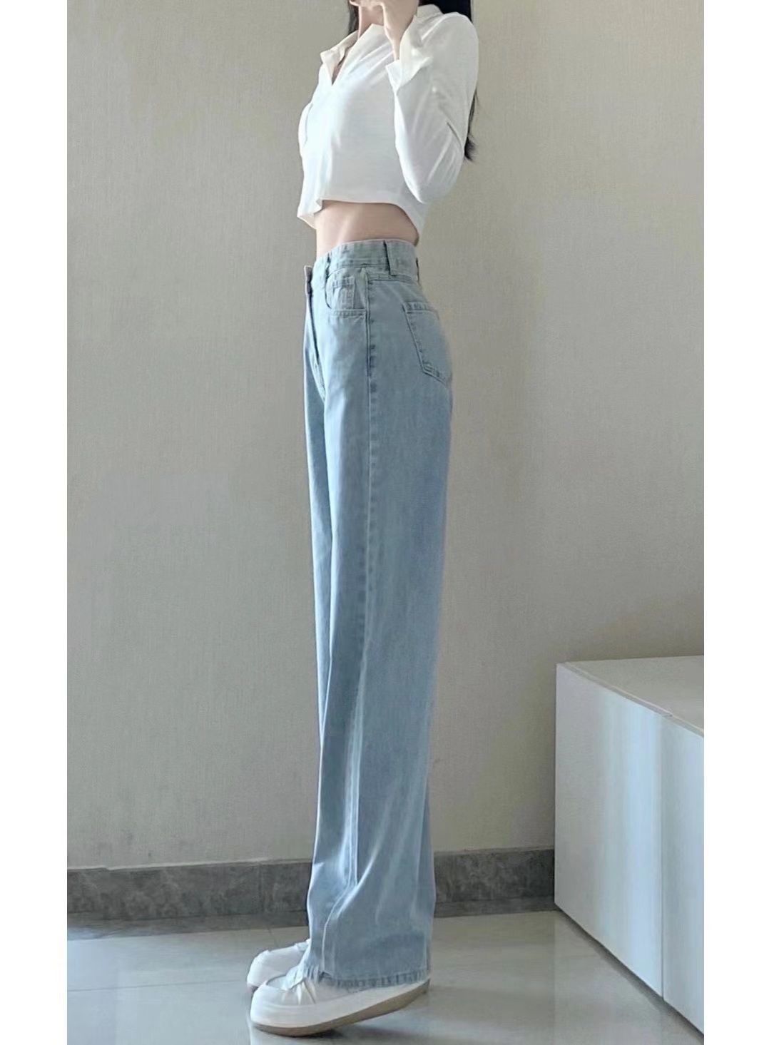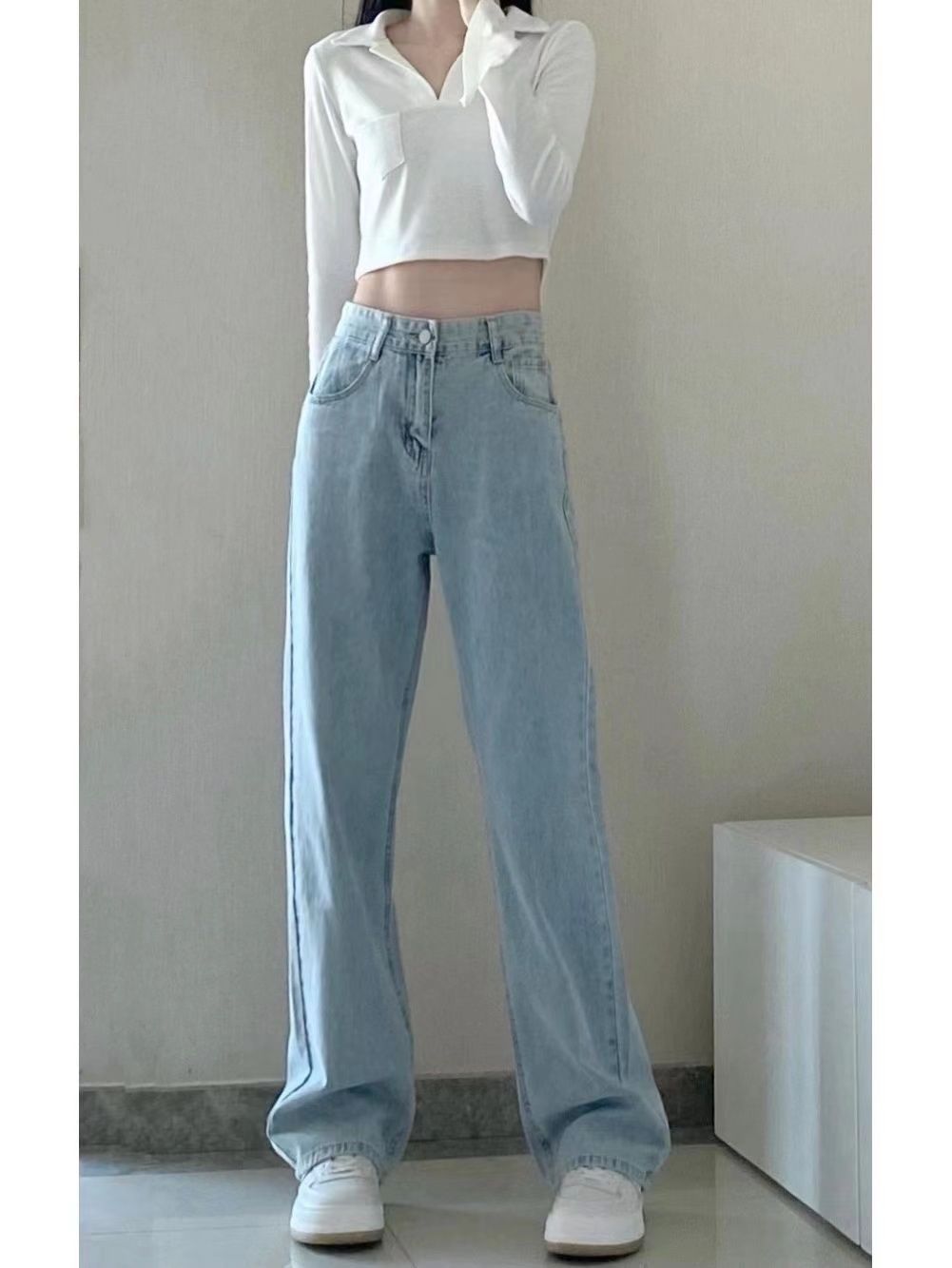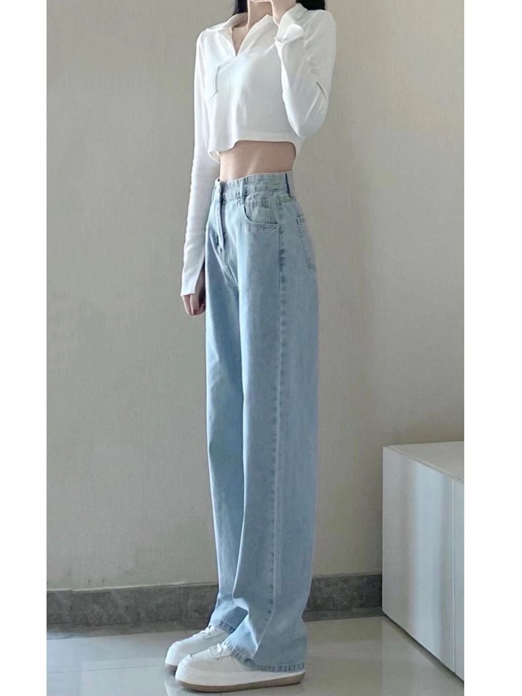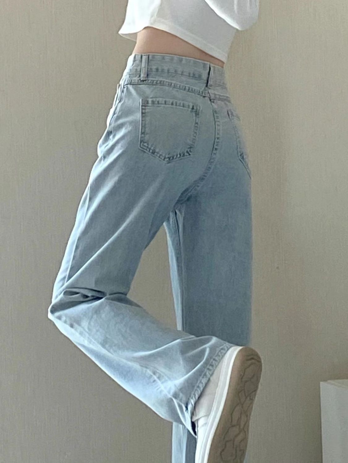 150 작은 짧은 빛 컬러 높은 허리 스트레이트 청바지 여성의 2025 년 봄과 가을 새로운 느슨한 높은 넓은 다리 바지스토어 가기