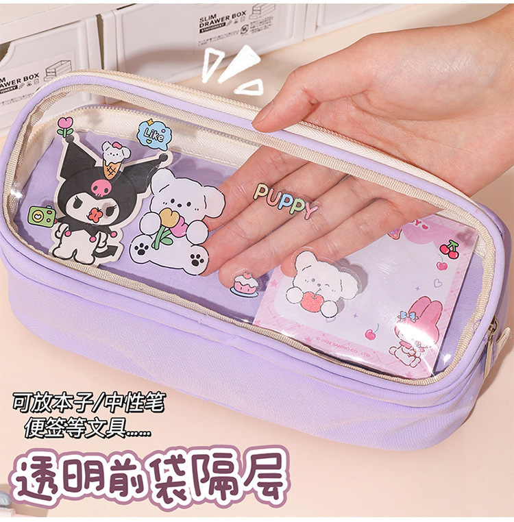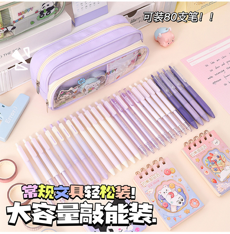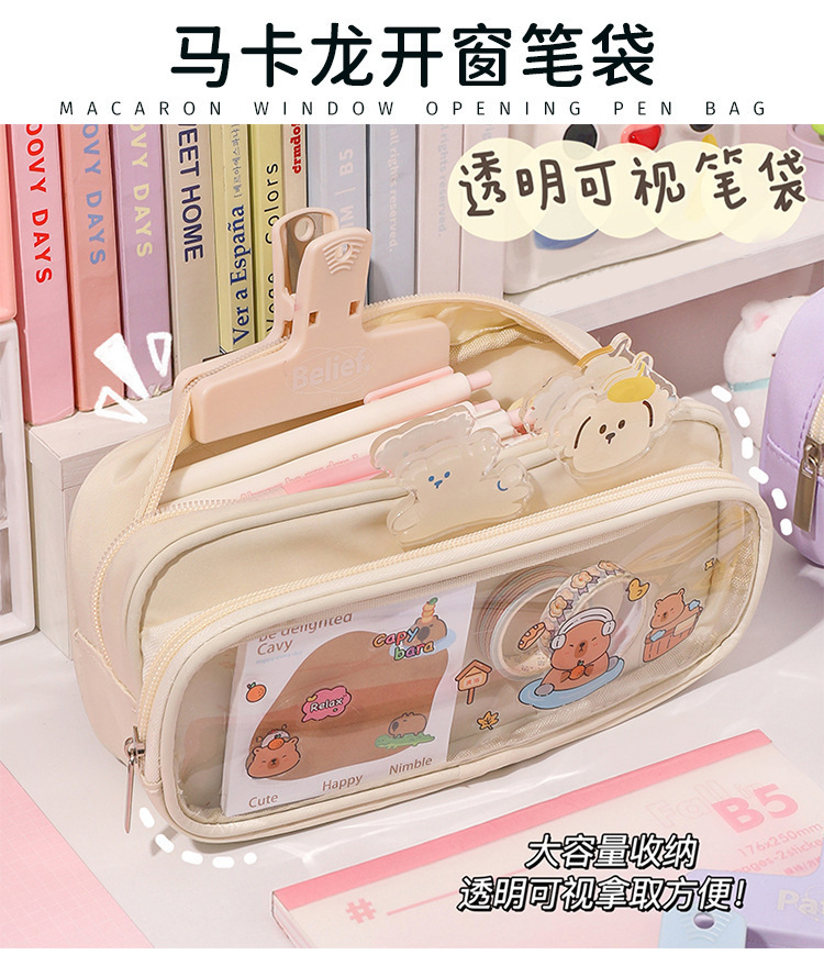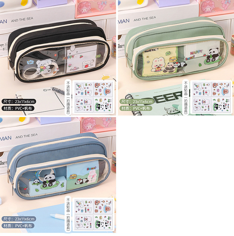 국경 간 직판 대용량 필통, 펜슬 케이스, 투명 이중 필통, 중학생용 수납함, 한국 스타일 트렌드