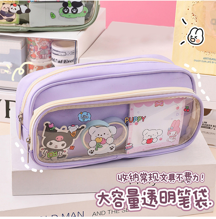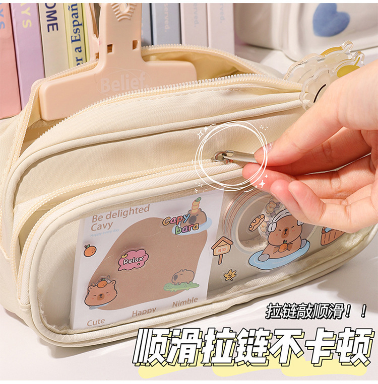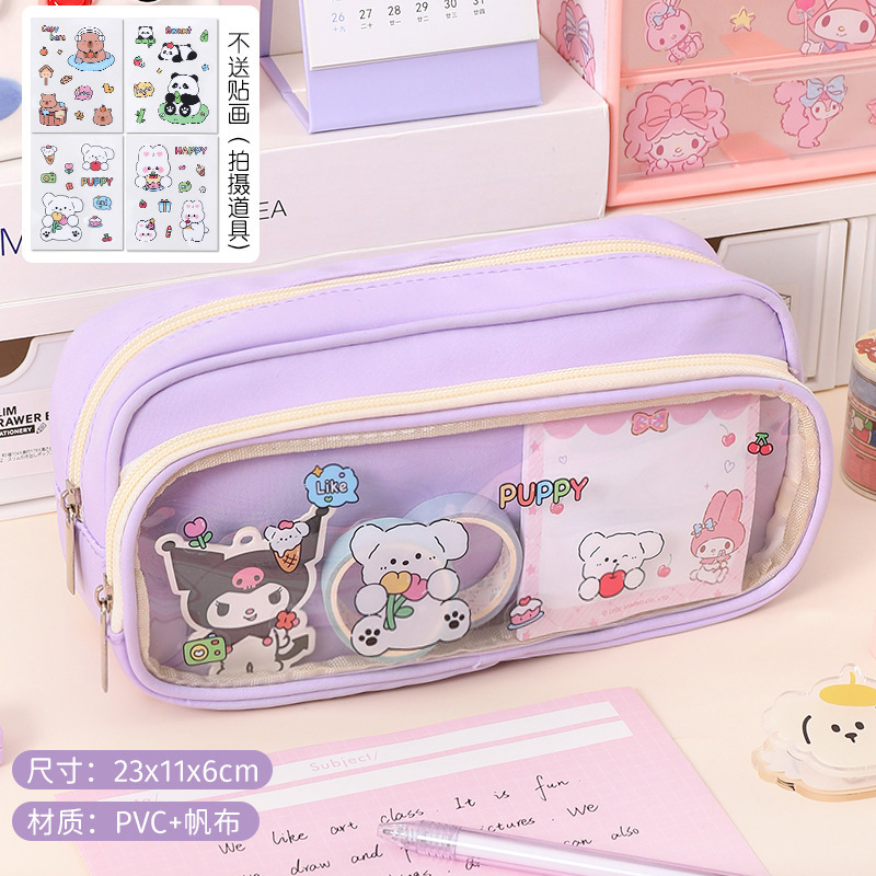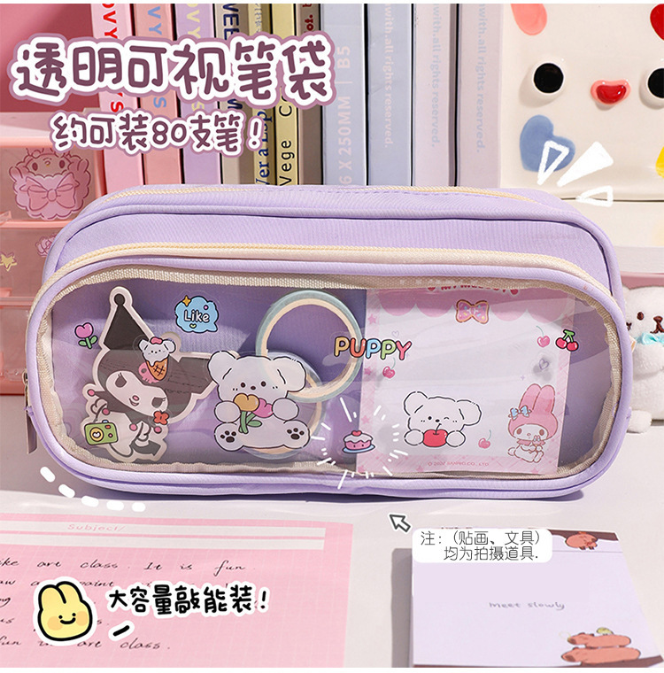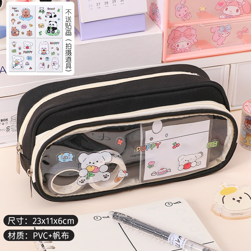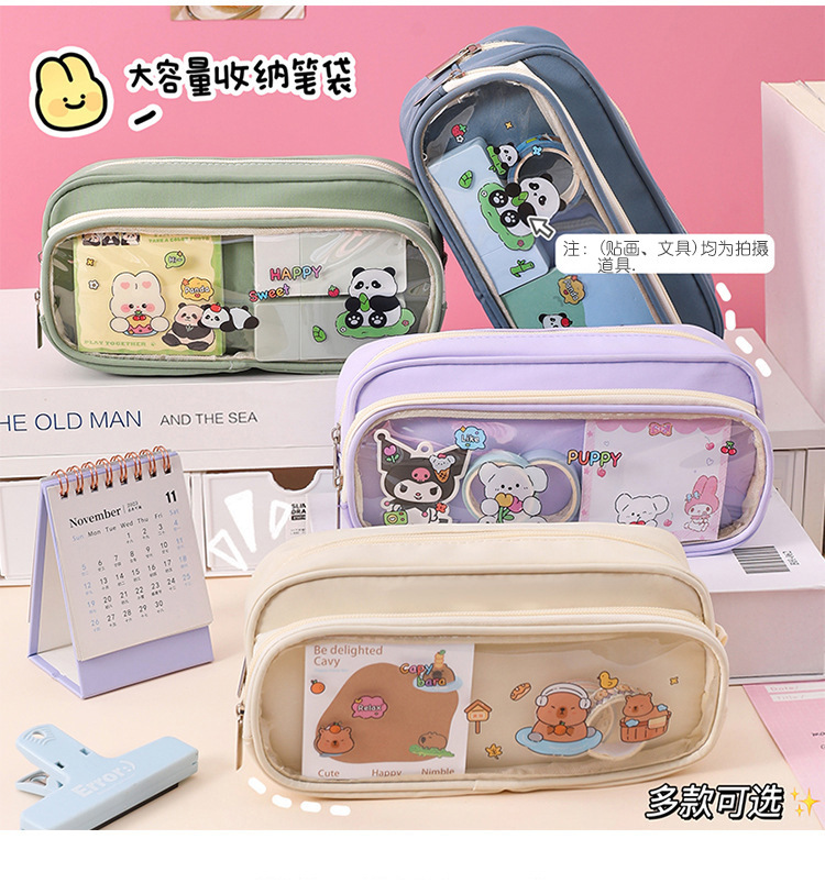 국경 간 직판 대용량 필통, 펜슬 케이스, 투명 이중 필통, 중학생용 수납함, 한국 스타일 트렌드스토어 가기