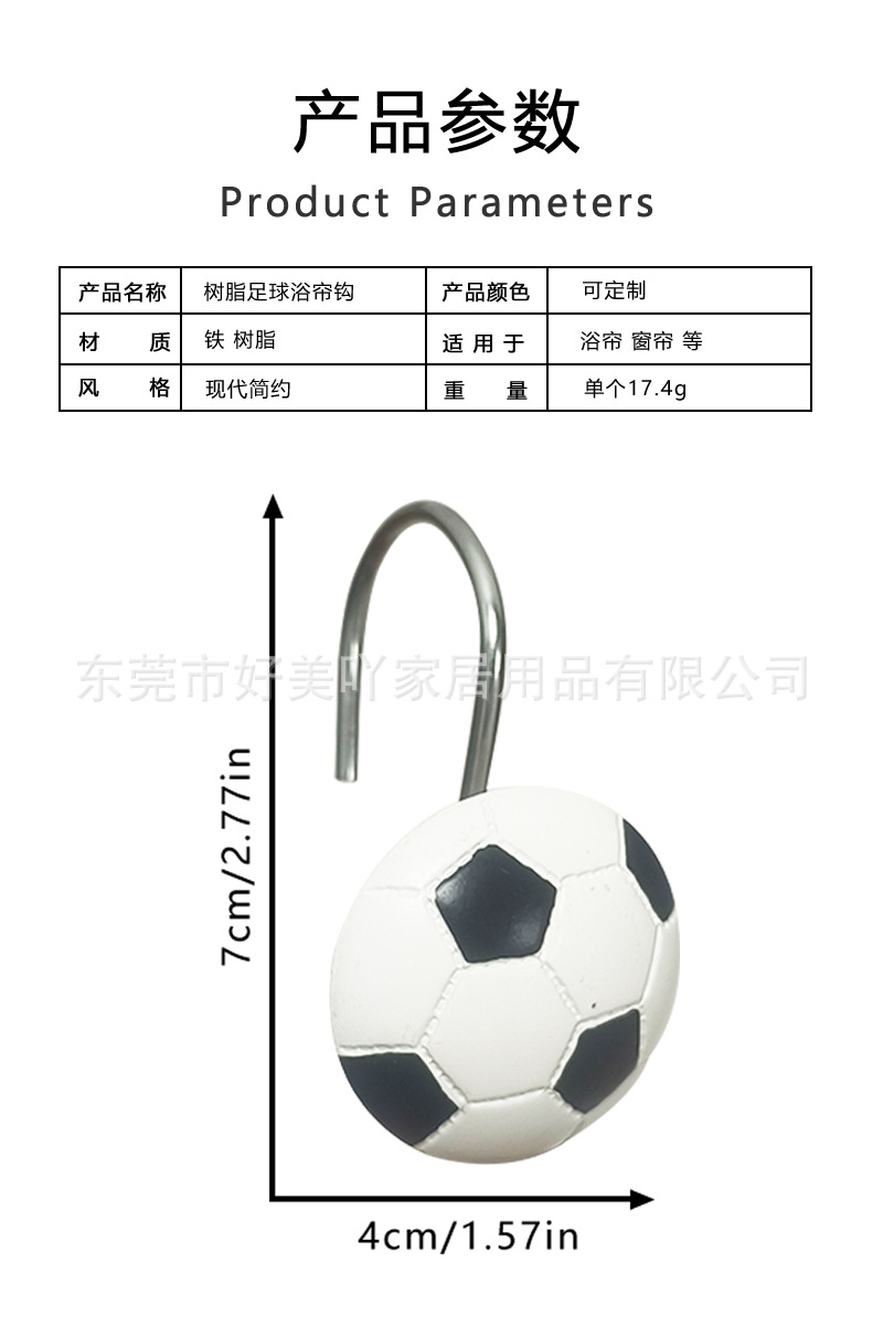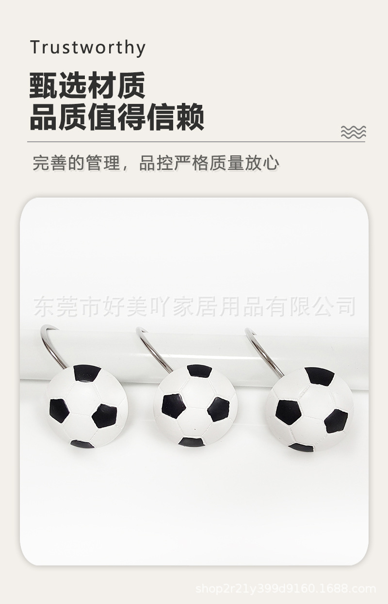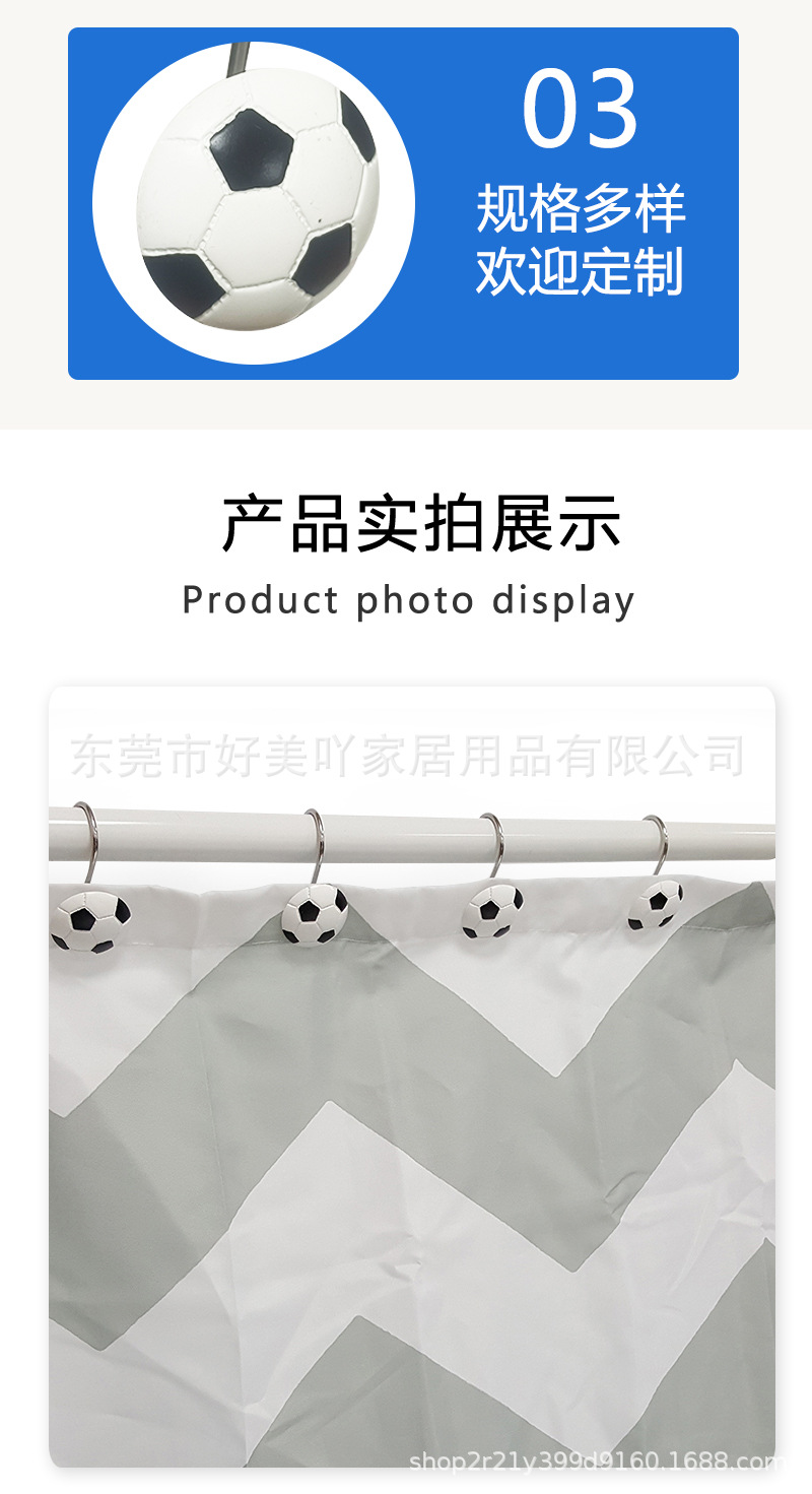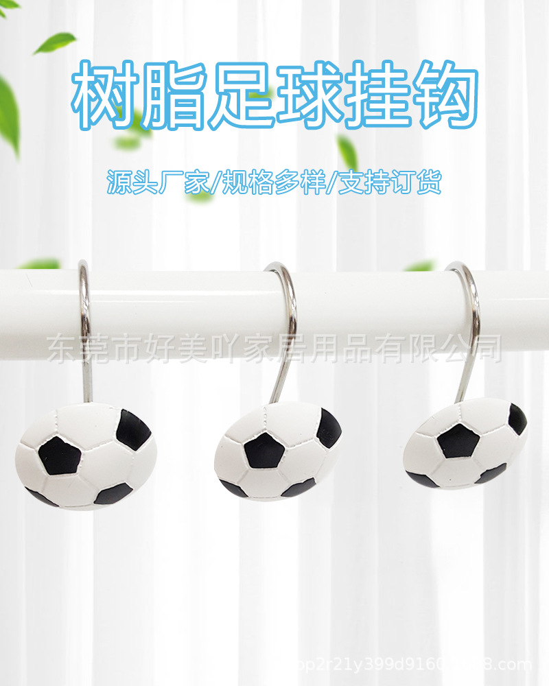 12개입 레진 축구공 샤워커튼 걸이, 커튼 걸이, 샤워커튼 장식, 욕실용품 창의적인 걸이스토어 가기