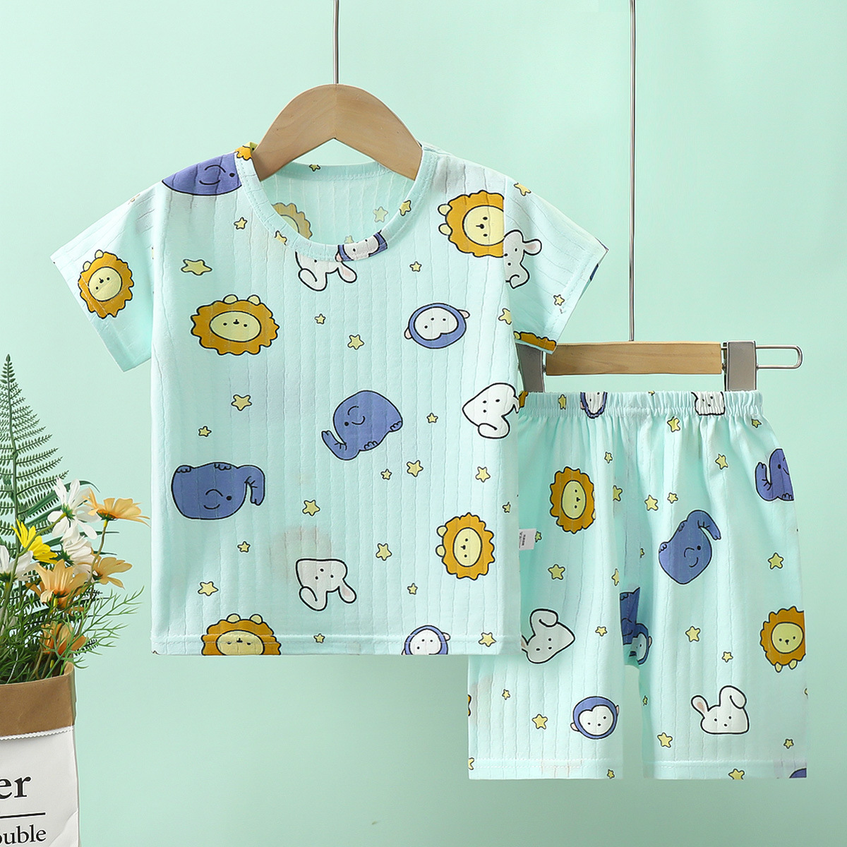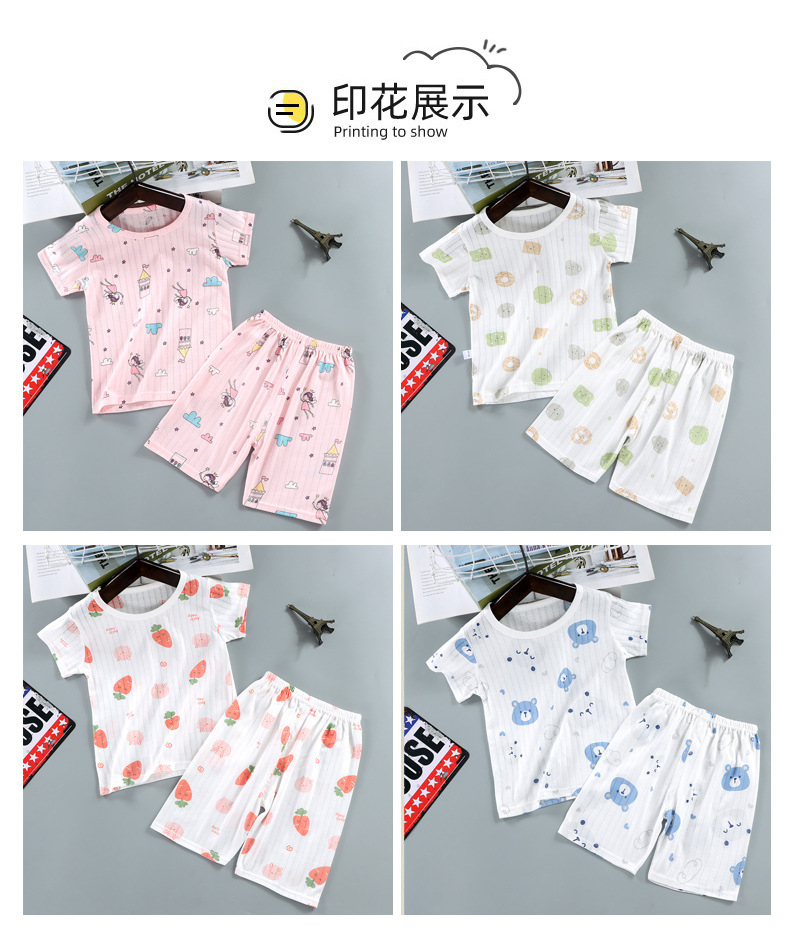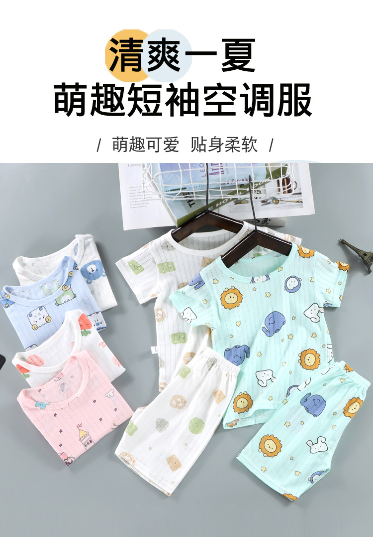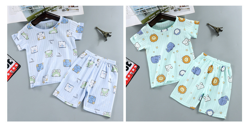 여름 새로운 어린이 면화 세트 소년 얇은 만화 반팔 반바지 소녀 아기의 반소매 홈 옷스토어 가기