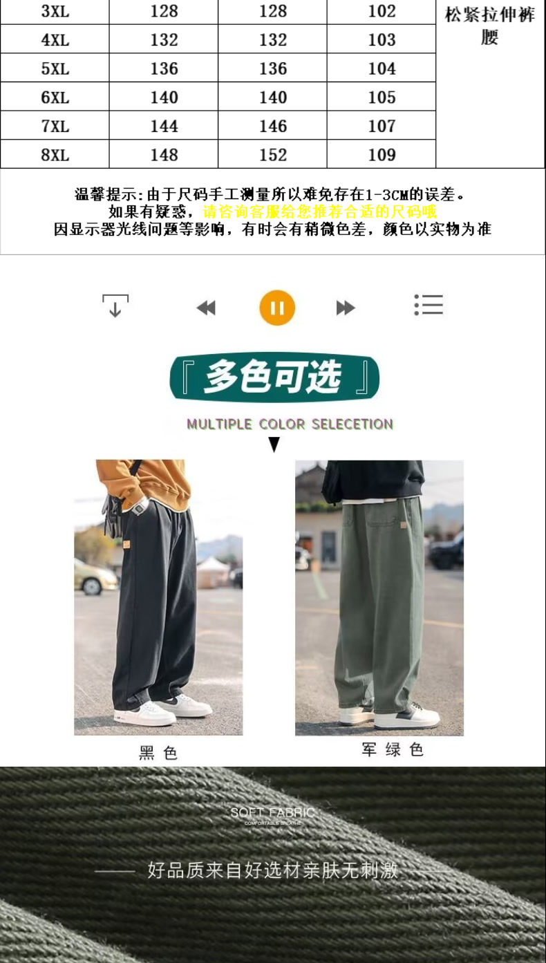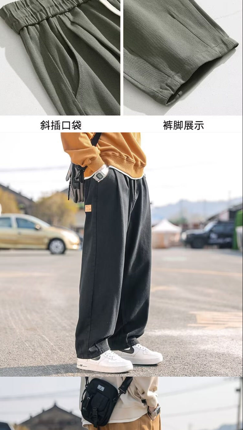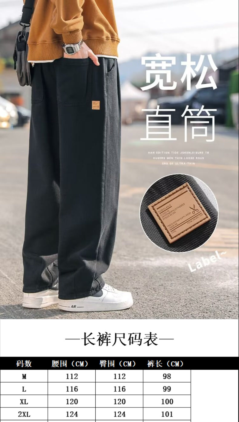 아메리칸 스타일 퓨어 코튼 오버홀 남자 여름 2025 새로운 유행 브랜드 강아지 잘 생긴 스트레이트 루즈 플러스 대형 캐주얼 바지