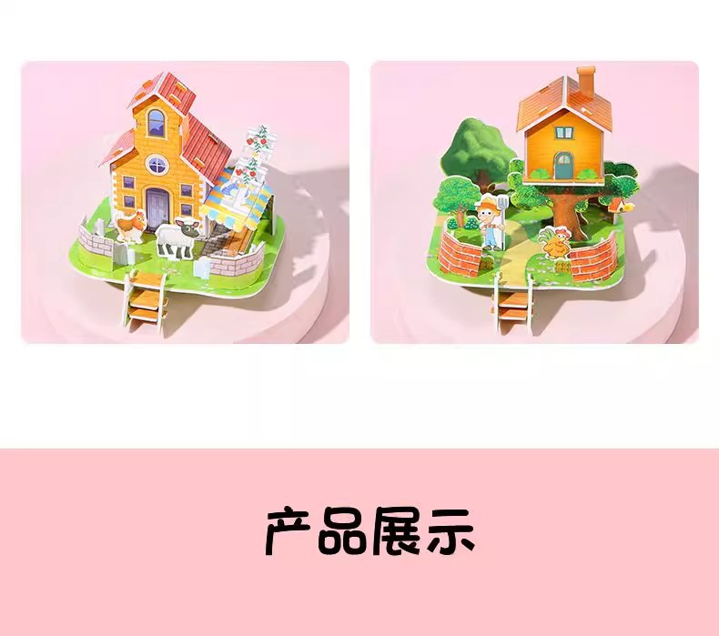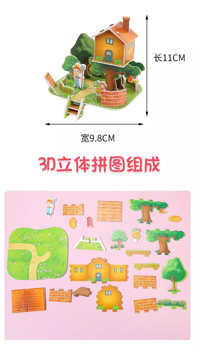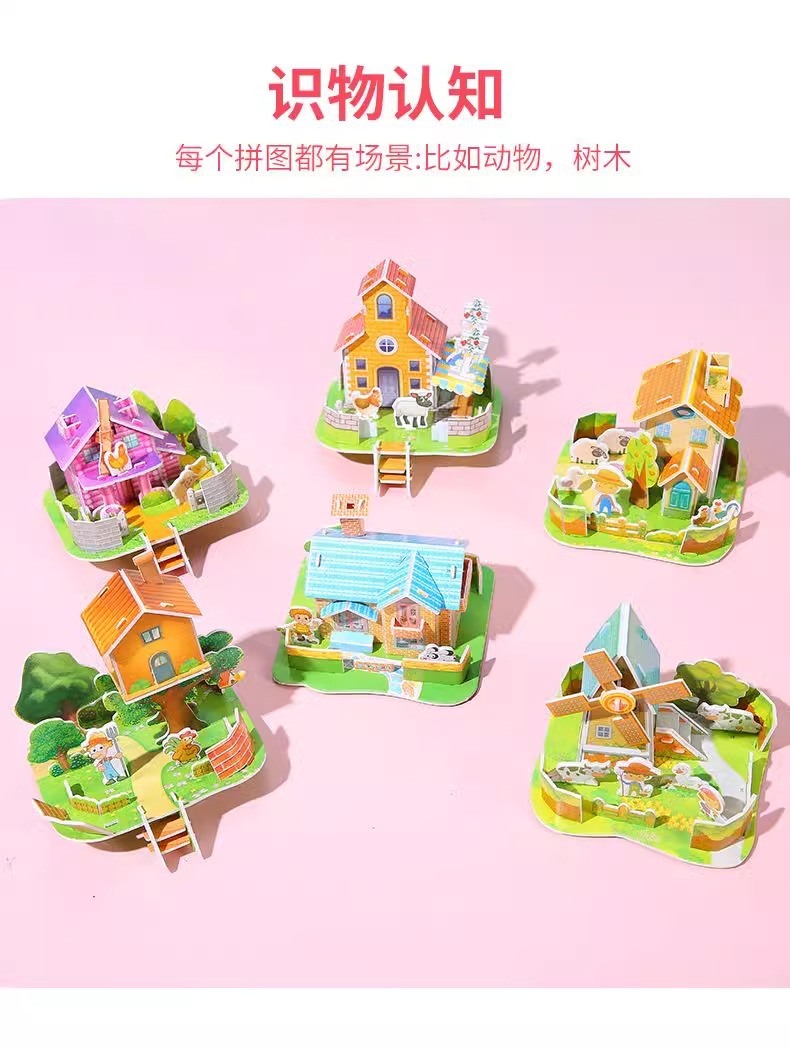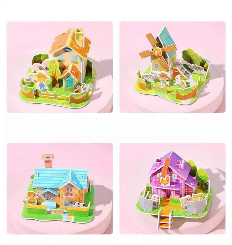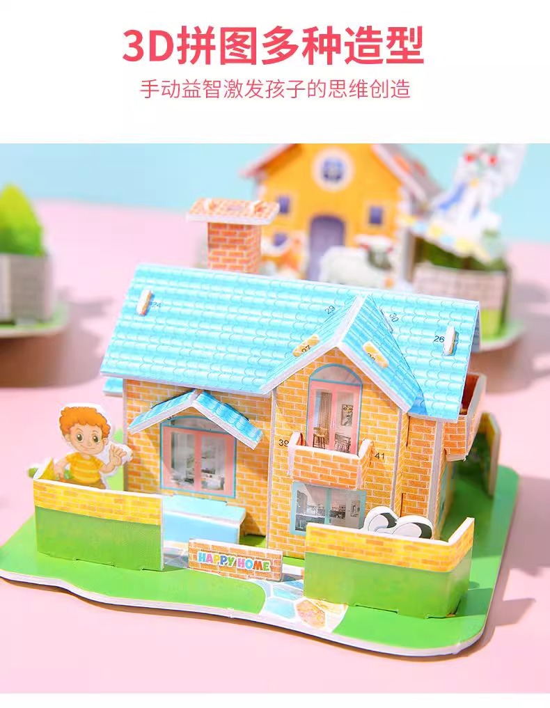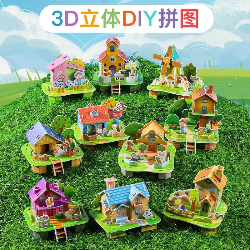 만화 3D 입체 작은 집 퍼즐 3-6 세 어린이 DIY 퍼즐 수제 미니 조립 모델 장난감 도매