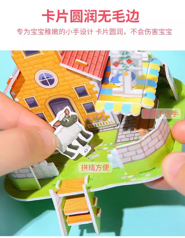 만화 3D 입체 작은 집 퍼즐 3-6 세 어린이 DIY 퍼즐 수제 미니 조립 모델 장난감 도매스토어 가기