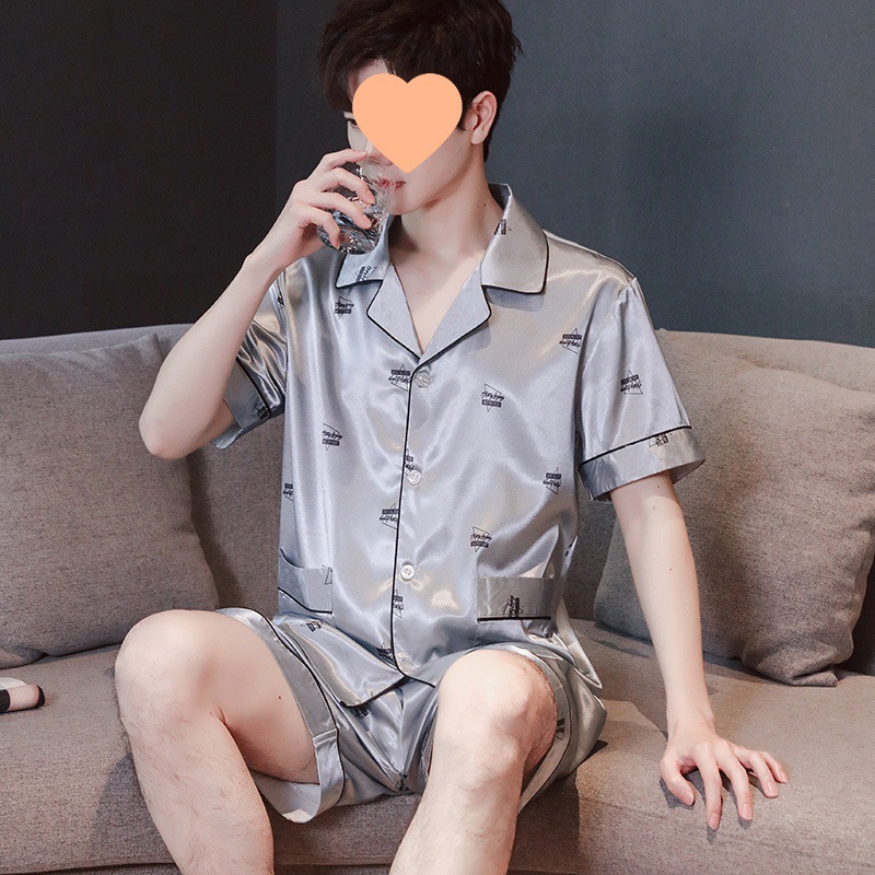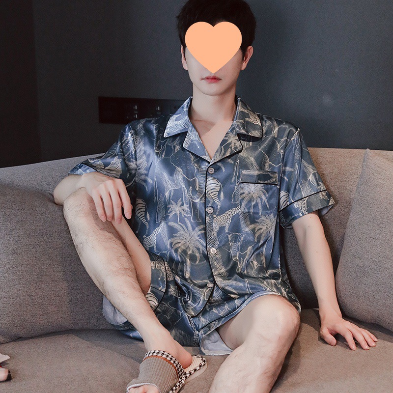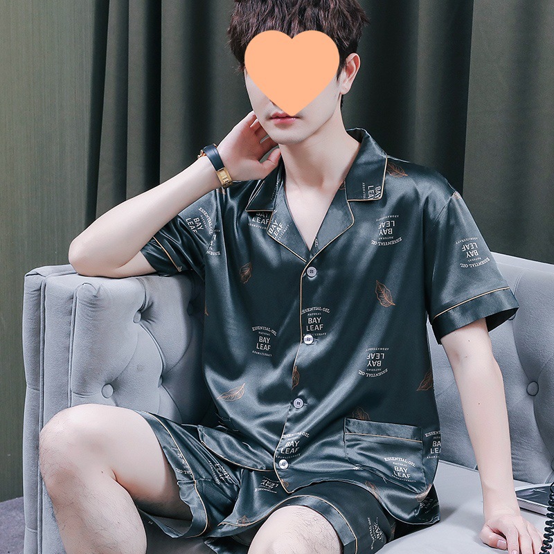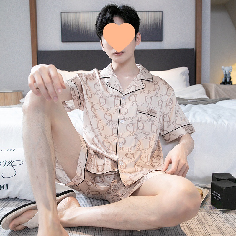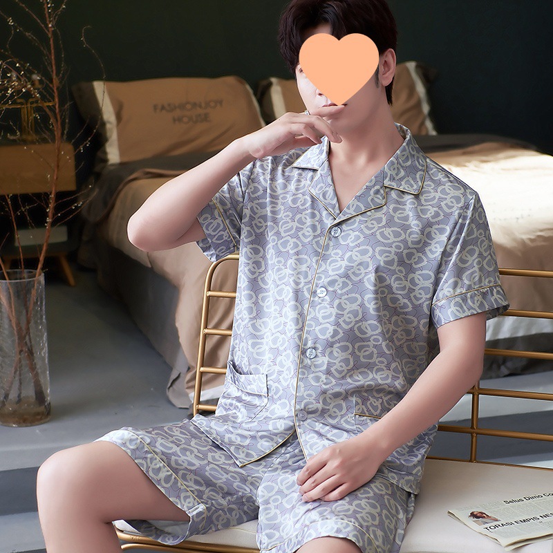 남자 잠옷 여름 여름 여름 실크 아이스 실크 홈 의류 반팔 반바지 여름 의상 남성 플러스 사이즈 세트스토어 가기