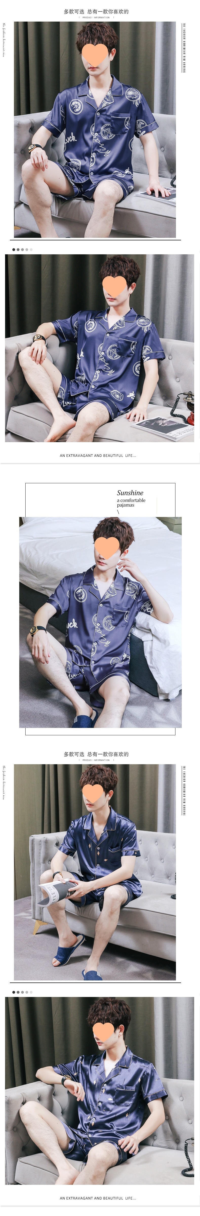 남자 잠옷 여름 여름 여름 실크 아이스 실크 홈 의류 반팔 반바지 여름 의상 남성 플러스 사이즈 세트