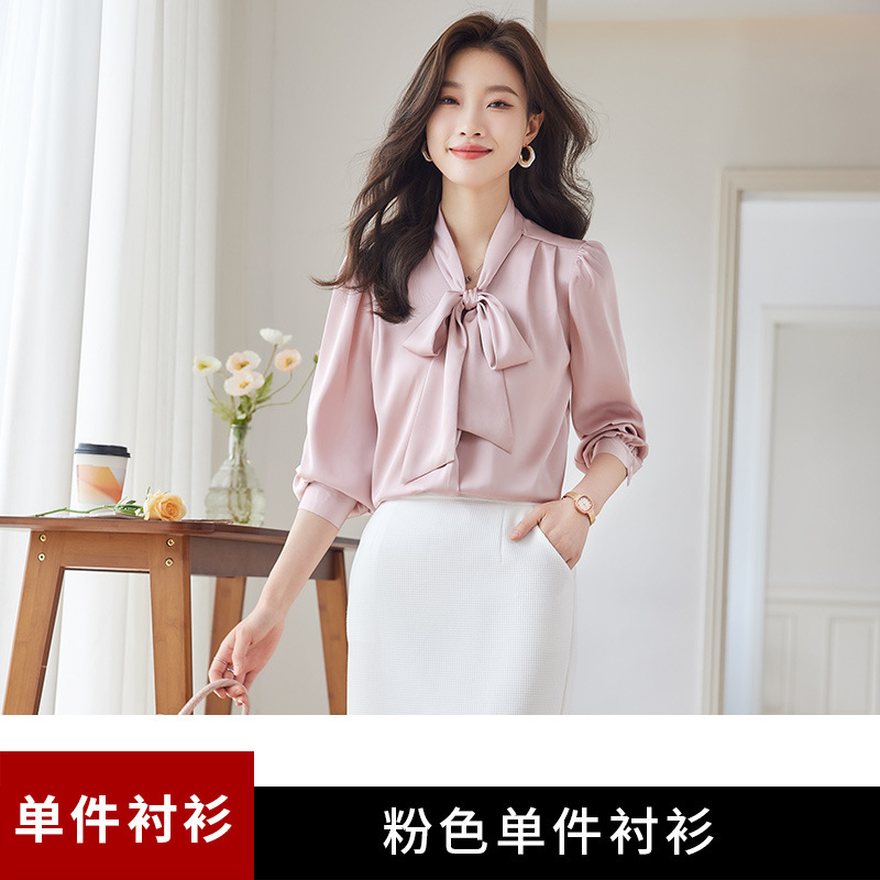 샤넬 스타일 활 OL 스타일 긴팔 플러스 사이즈 여성 한국 스타일 비즈니스 셔츠 여성용 하이 엔드 이너 탑 셔츠