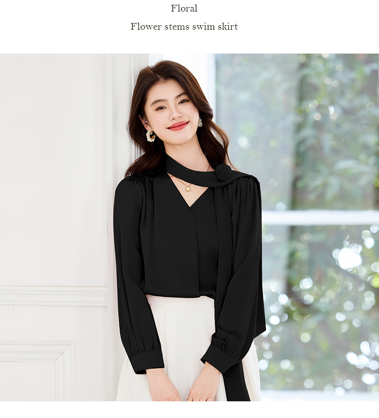 • 블랙 셔츠 + 어깨 꽃