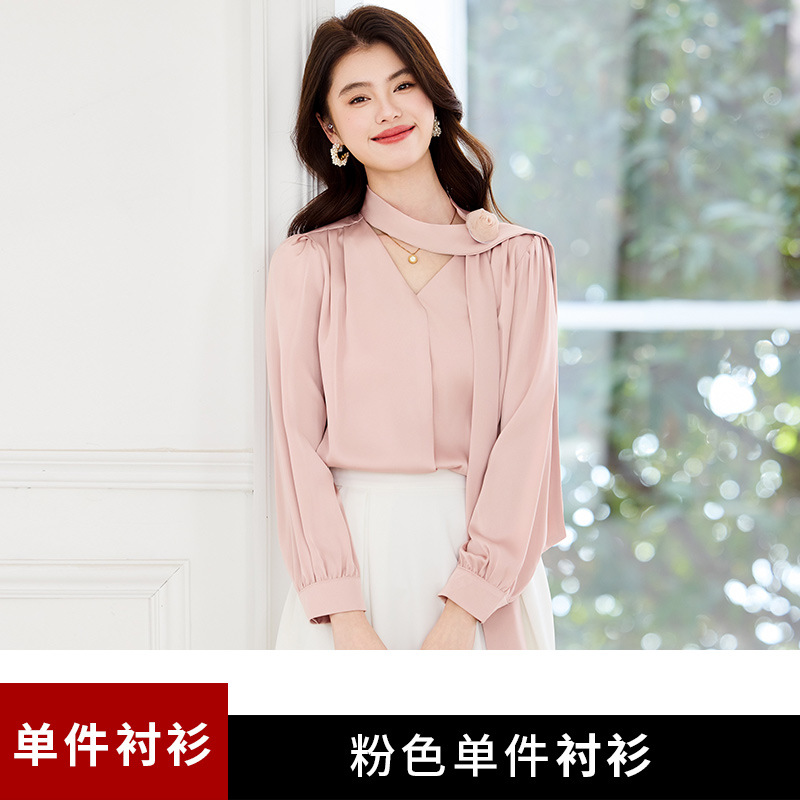샤넬 스타일 활 OL 스타일 긴팔 플러스 사이즈 여성 한국 스타일 비즈니스 셔츠 여성용 하이 엔드 이너 탑 셔츠스토어 가기