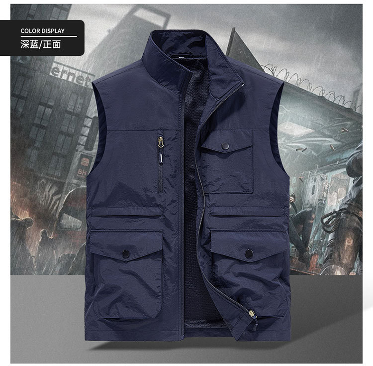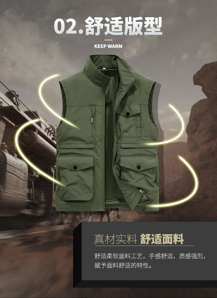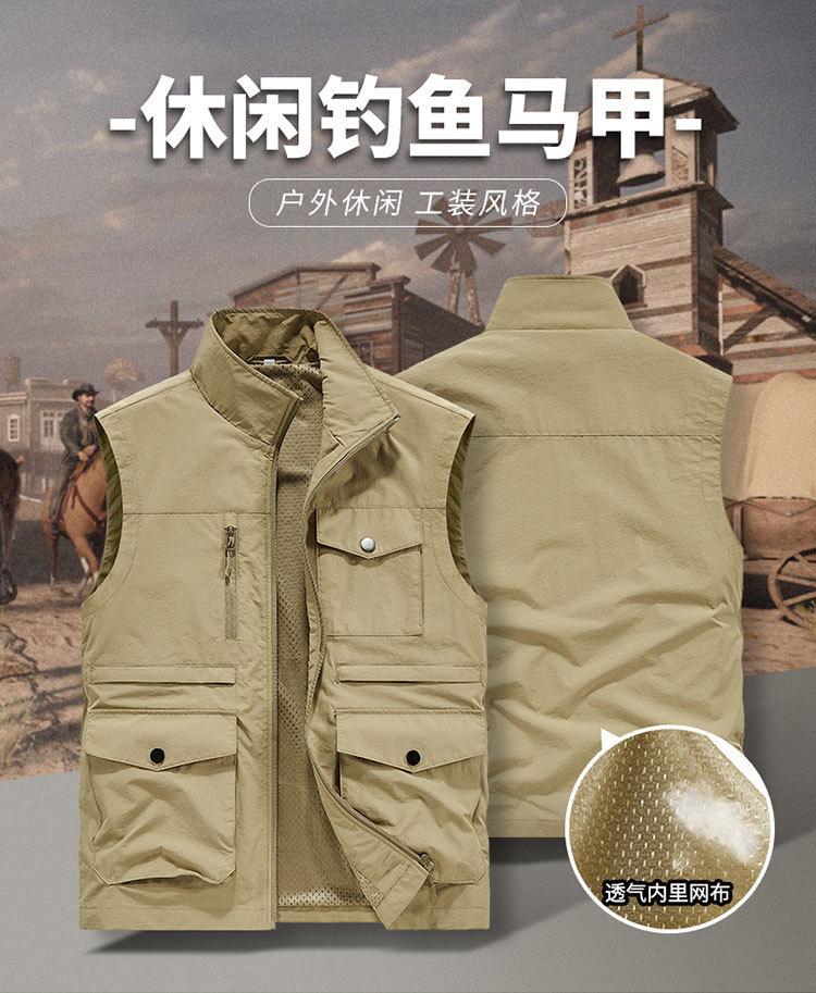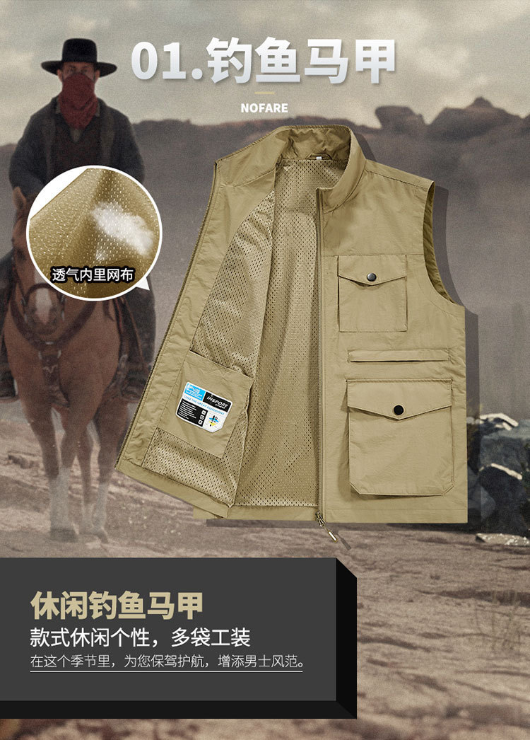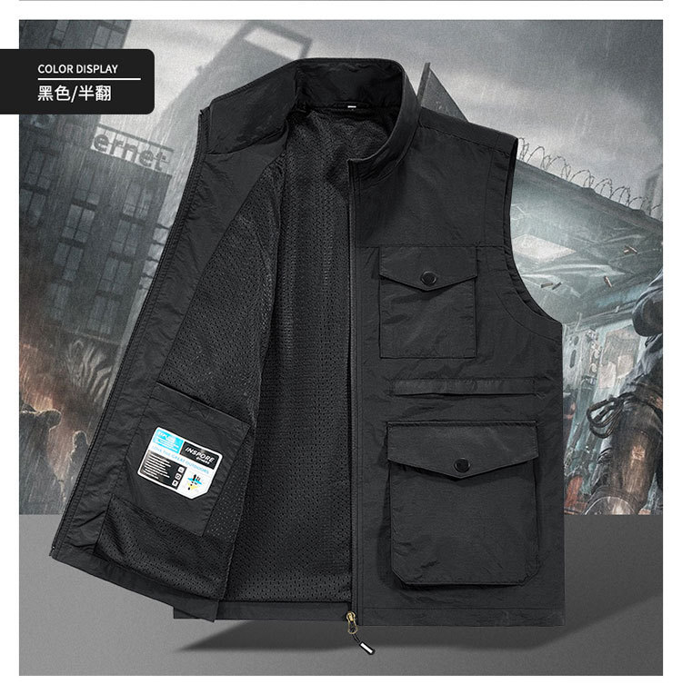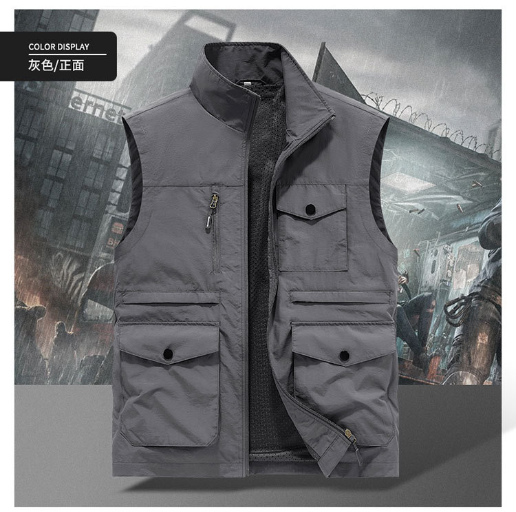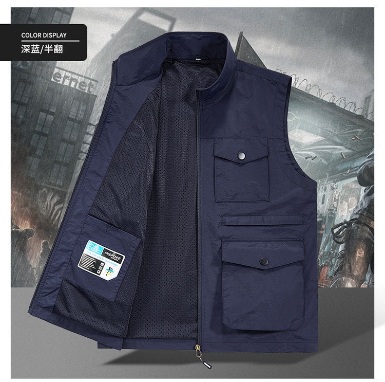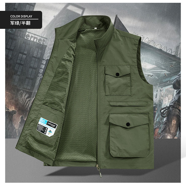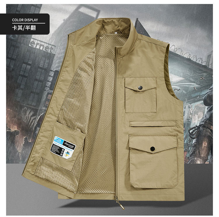 2024 새로운 봄과 가을 남성 레저 조끼 야외 스포츠 양복 조끼 통기성 얇은 코트 패션 낚시 말