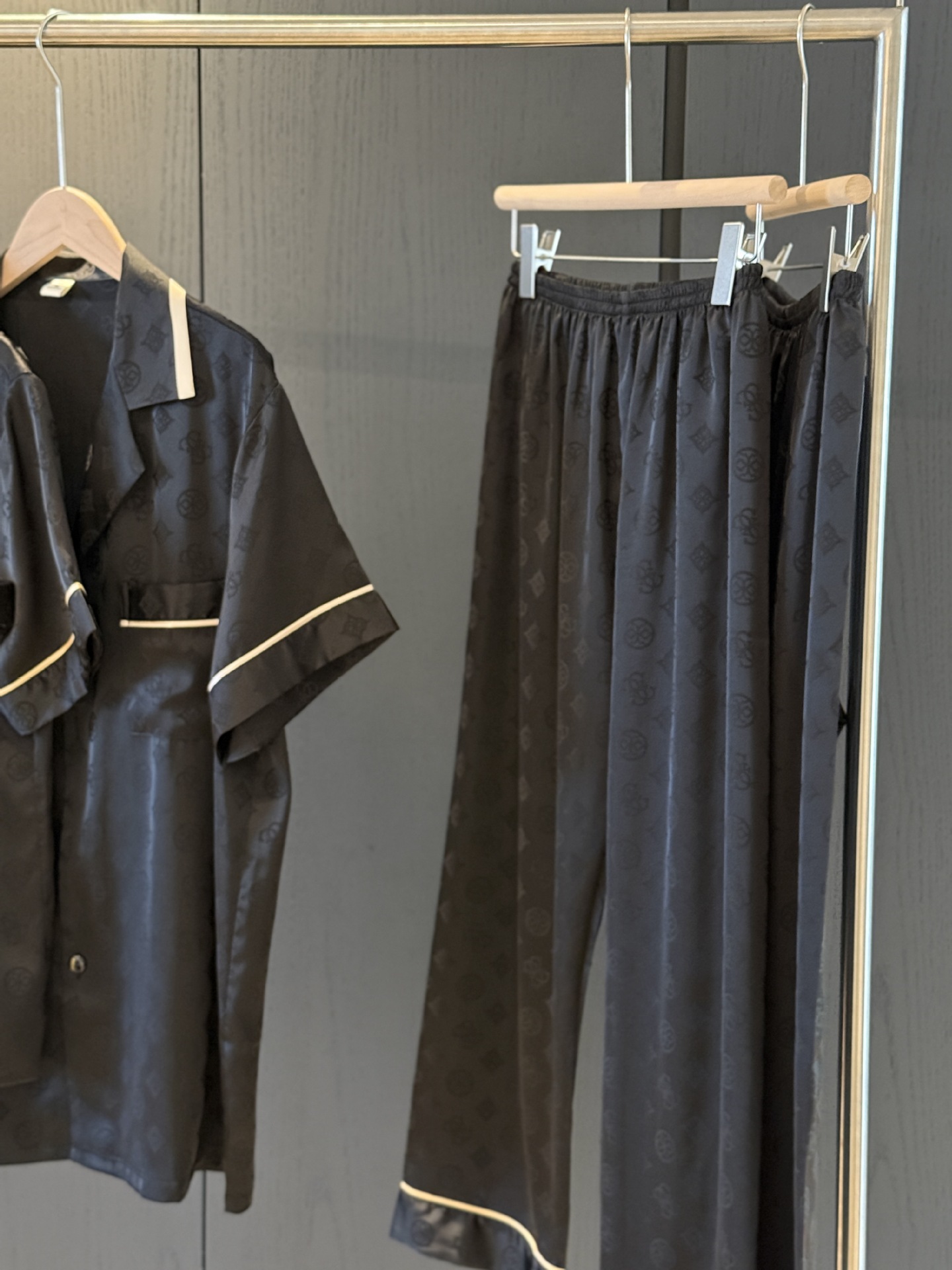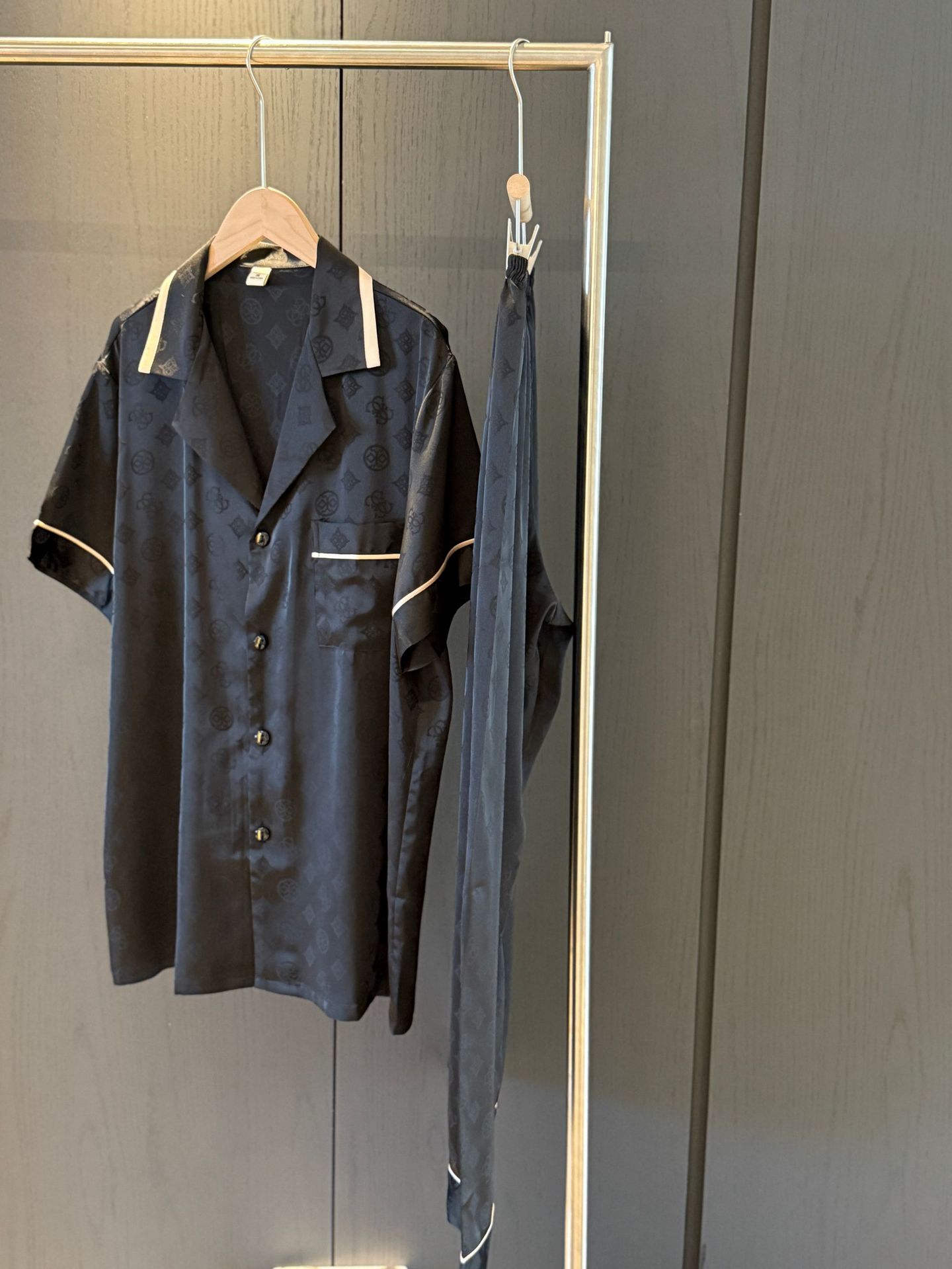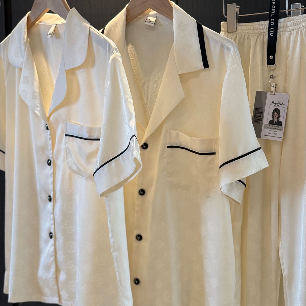 봄과 여름 커플 잠옷 세트 여성 여름 아이스 실크 잠옷 여름 자카드 카디건 반팔 바지 남녀 얇은 홈 옷스토어 가기
