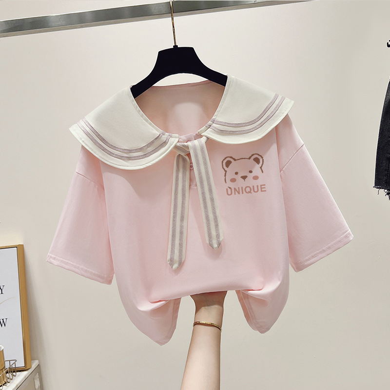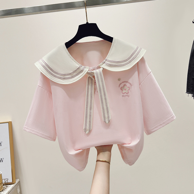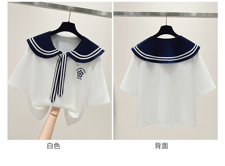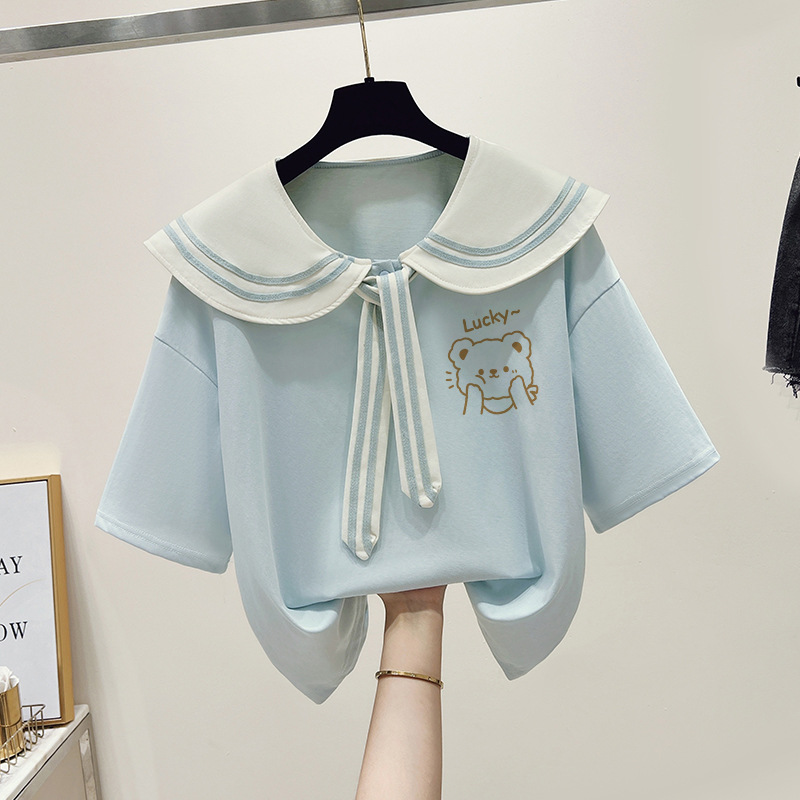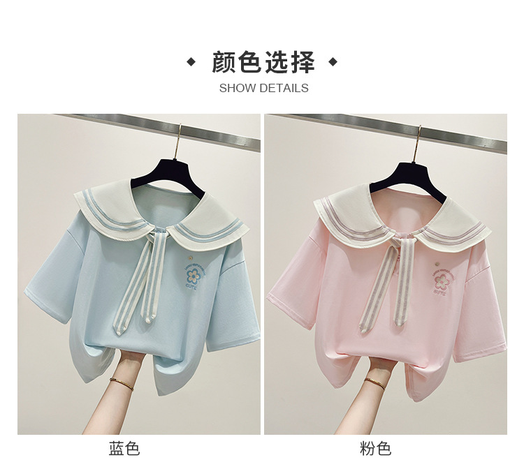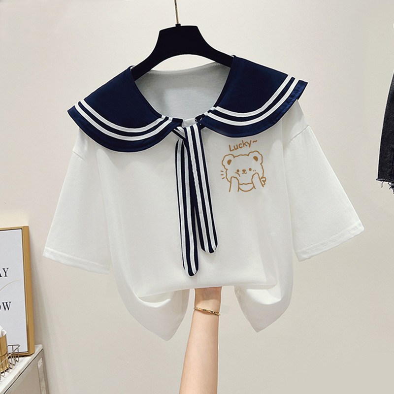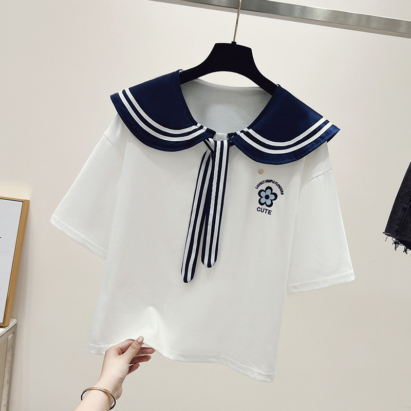 여자 티셔츠 한국 패션 반소매 중학생 여름 해군 바람 13 세 소녀 14 학생 16 명의 짧은 소매 탑
