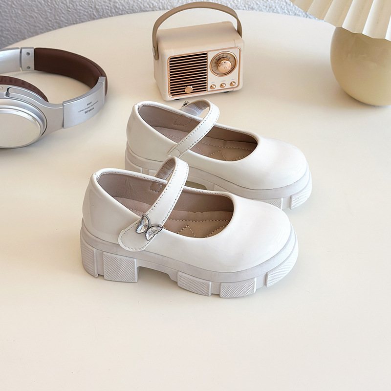 여자 작은 가죽 신발 2025 봄과 가을 새로운 한국 스타일 여성 큰 어린이 나비 공주 신발 어린이 올매치 싱글 레이어 신발