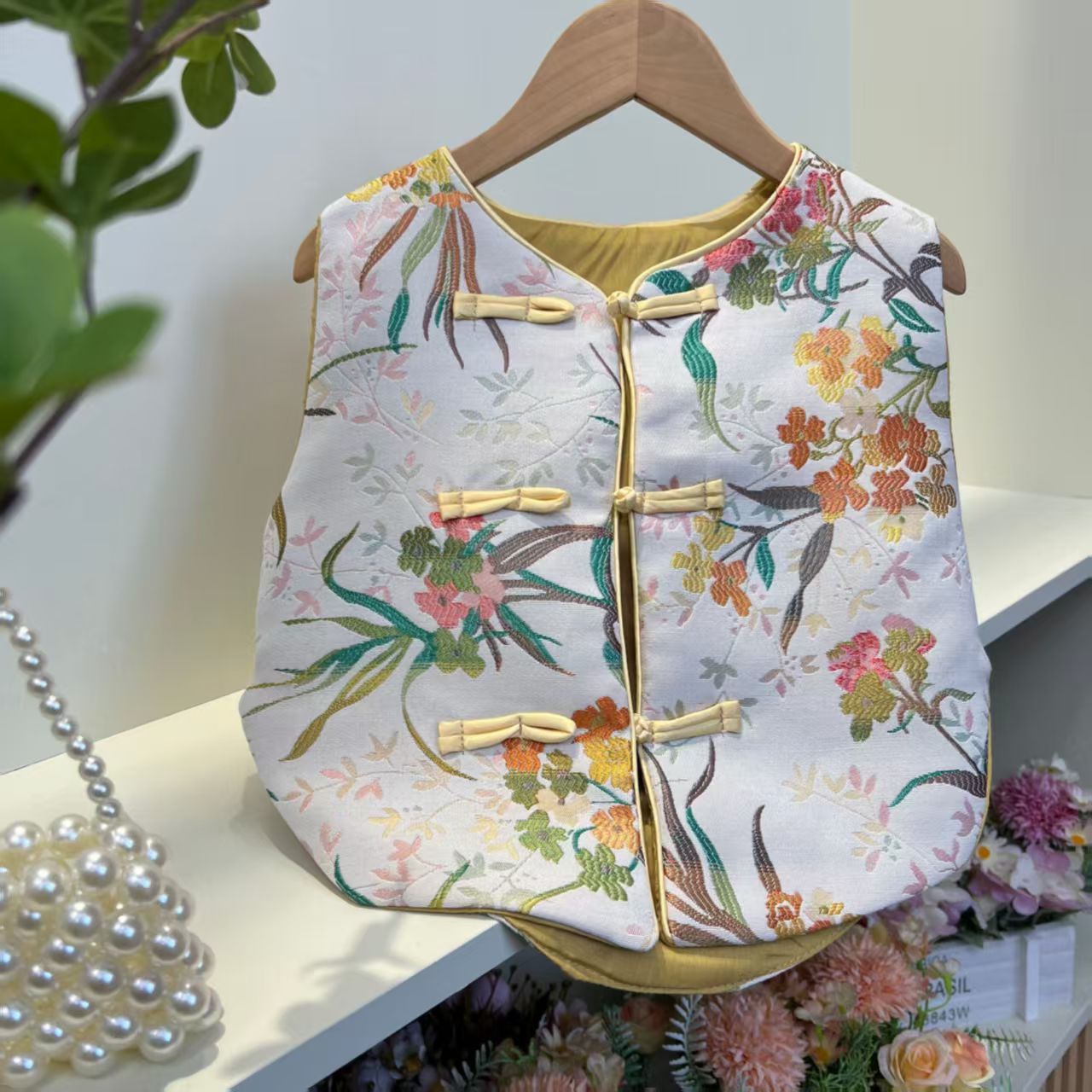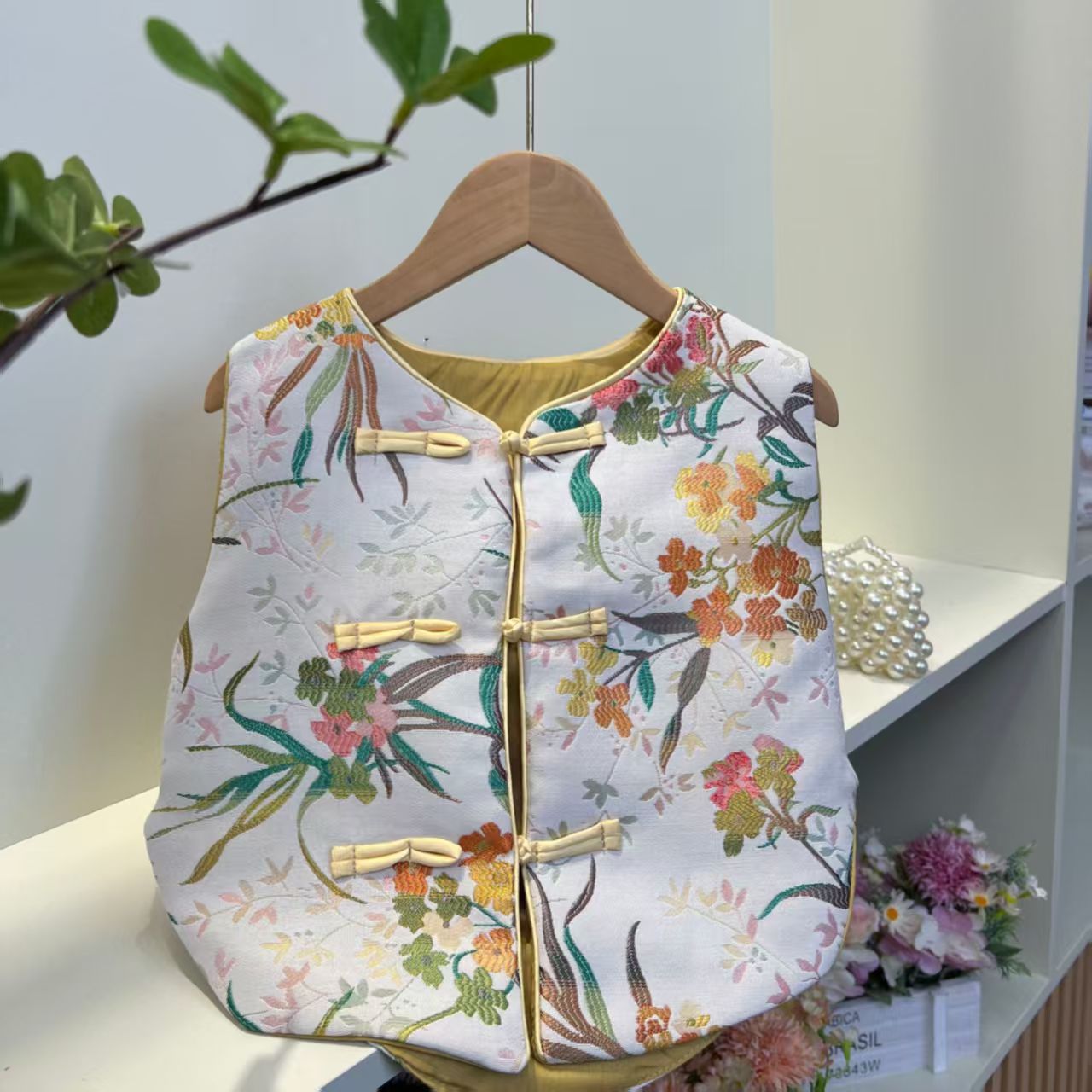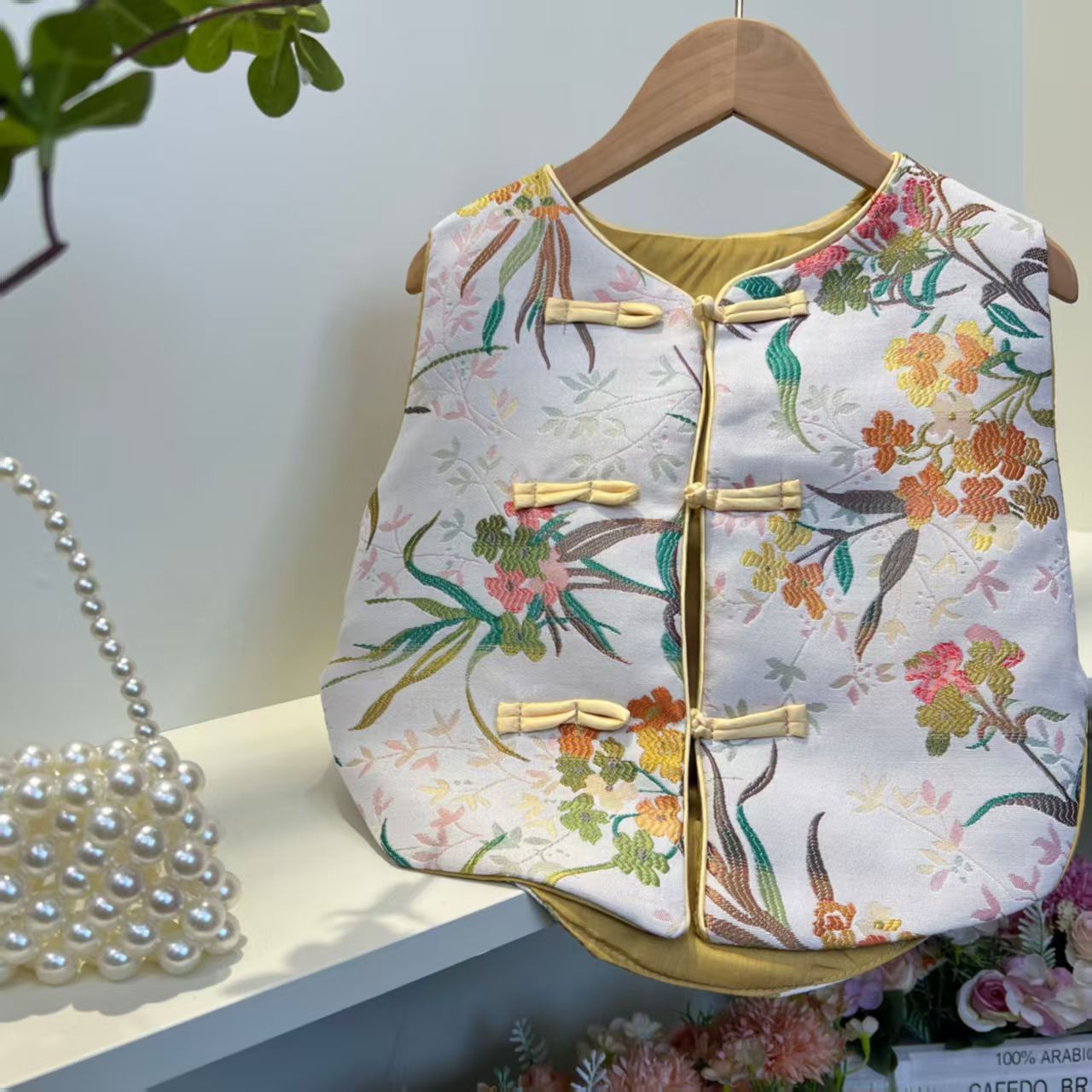 소녀 봄과 가을 외부 조끼 외국 스타일 패션 작은 소녀 Guofeng 자수 조끼 공주 스타일 올 매치 조끼 트렌디스토어 가기